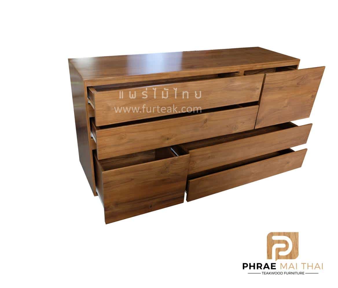 ตู้ เก็บของ 6 ลิ้นชัก ทรงโมเดิร์น สีสักทอง เป็นไม้สักทองอบแห้ง รูปทรงทันสมัย เหมาะสำหรับลูกค้าที่ต้องการตู้เก็บของ หรือใส่เอกสารต่างๆ ซึ่งคุณสมบัติของไม้เป็นไม้เนื้อแข็งอายุตั้งแต่ 30-50 ปีขึ้นไป เราเลือกใช้ไม้สักที่มีคุณภาพและใช้กระบวนการอบไม้ จึงทำให้ไม้มีการคงสภาพ ความชื้นน้อย และโอกาสไม้หดตัวน้อยมาก