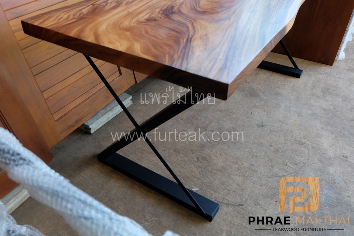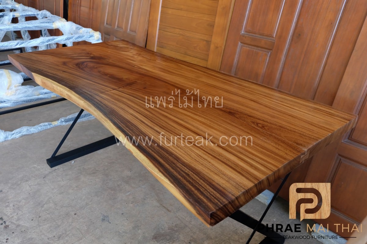 โต๊ะไม้จามจุรี /โต๊ะประชุม ไม้แผ่นเดียวไม้ฉำฉาหรือไม้จามจุรี สีธรรมชาติ ขาเหล็กสีดำทรงคางหมูซึ่งคุณสมบัติของไม้อายุตั้งแต่ 15 ปีขึ้นไป เราเลือกใช้ไม้สักที่มีคุณภาพและใช้กระบวนการอบไม้ จึงทำให้ไม้มีการคงสภาพ ความชื้นน้อย โอกาสแตกน้อยมาก