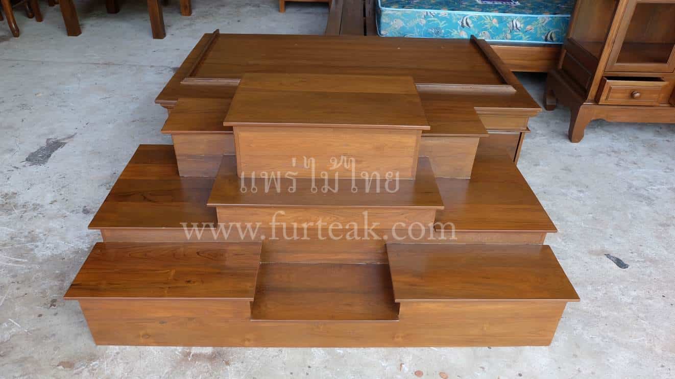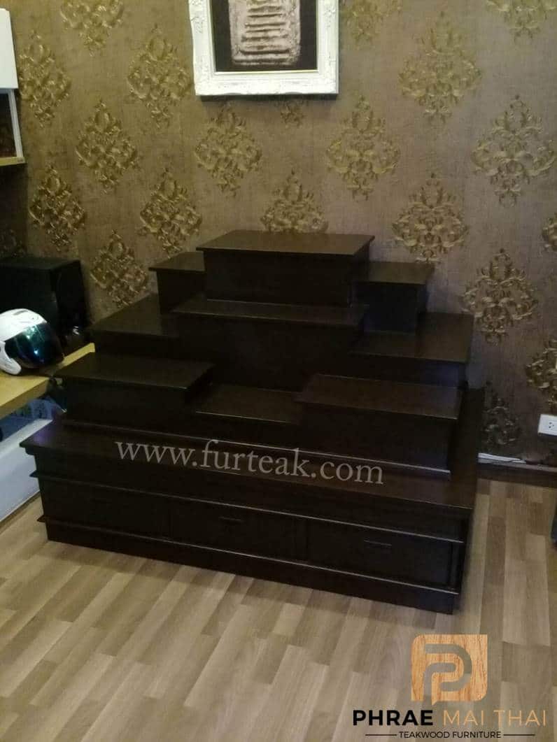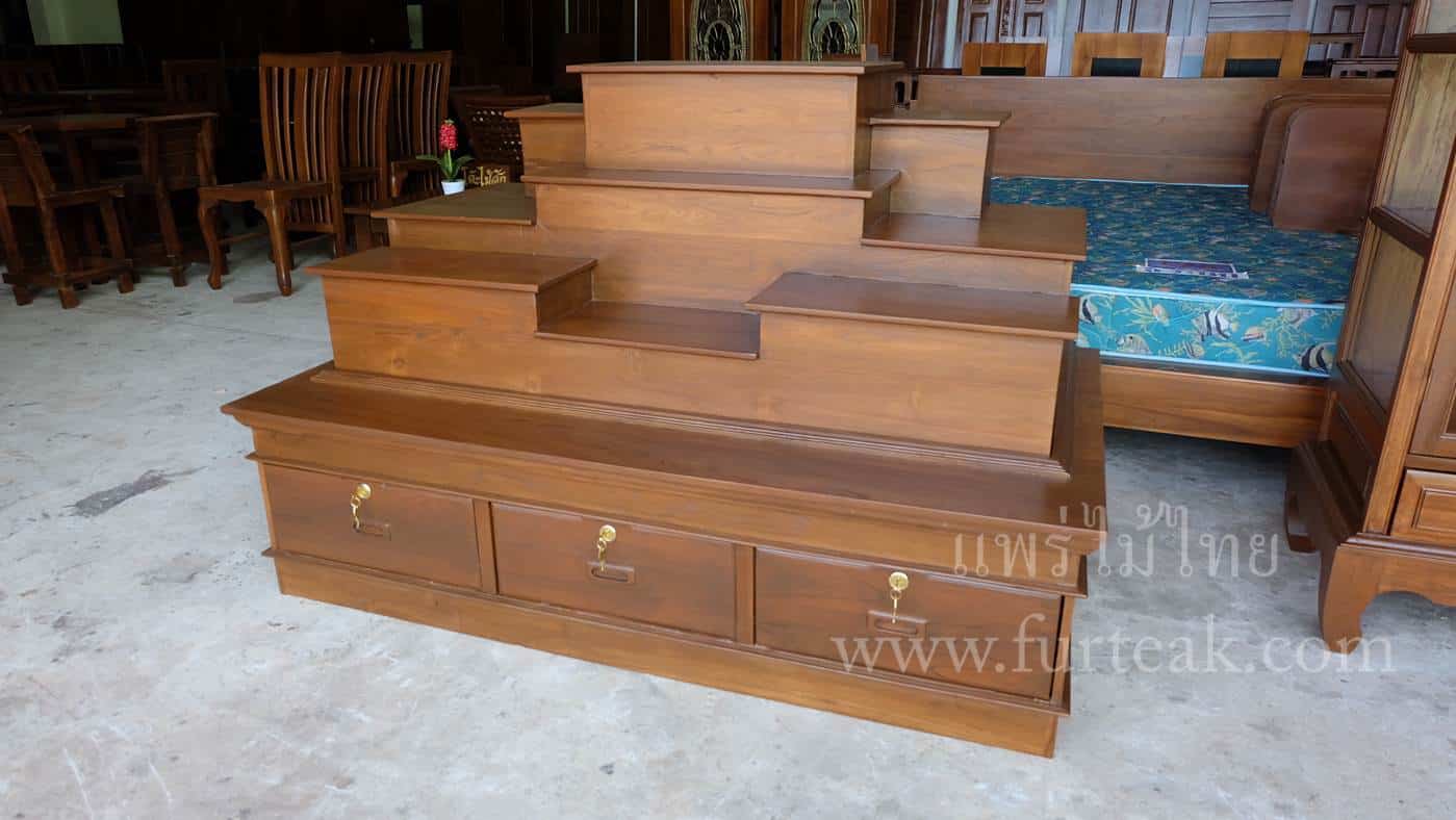 โต๊ะหมู่บูชาโมเดิร์นเรียบ ท่อนบนที่วางพระประธาน กว้าง 38*ยาว 60 ซม. และฐานล่างประกอบไปด้วย 3 ลิ้นชัก (มีกุญแจ) เป็นไม้สักทองอบแห้งสีสักเข้ม (ถอดประกอบได้ ฐานล่าง 1 ตัวและท่อนบน 1ตัว ) ซึ่งเหมาะสำหรับท่านที่กำลังมองหาที่วางพระขนาดใหญ่แต่มีพื้นที่จำกัด