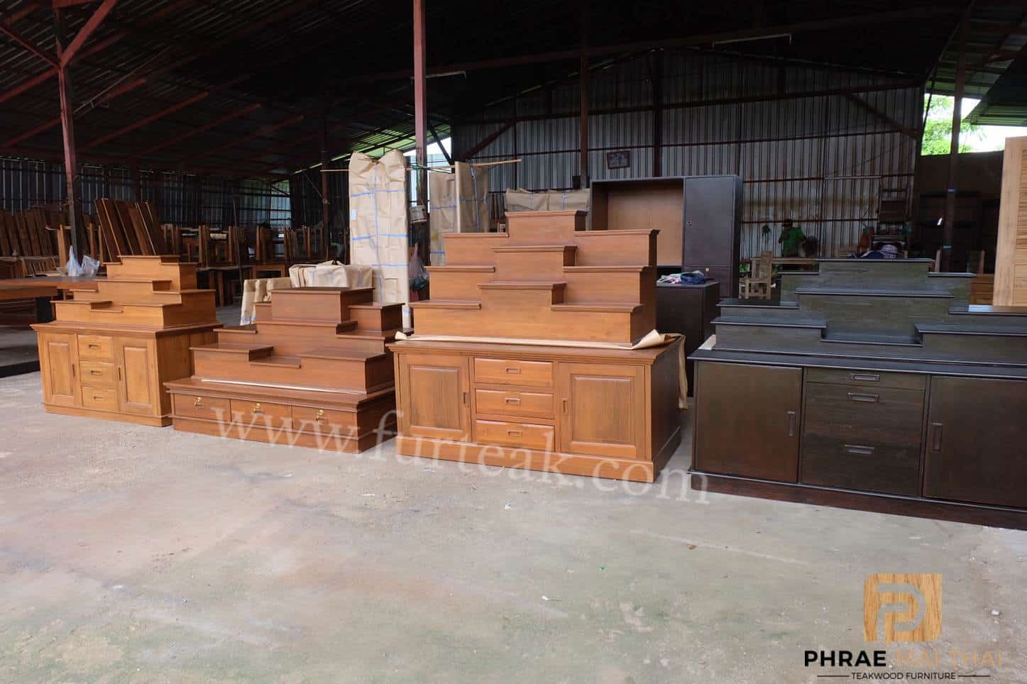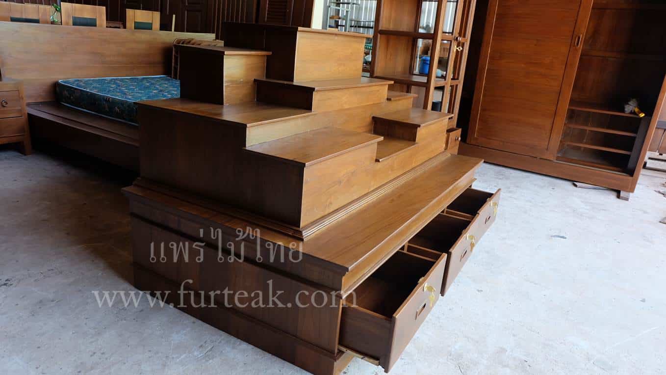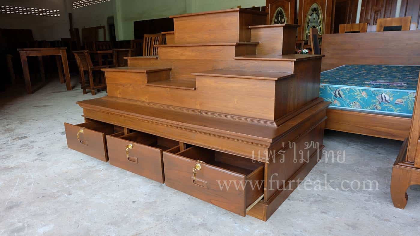 โต๊ะหมู่บูชาโมเดิร์นเรียบ ท่อนบนที่วางพระประธาน กว้าง 38*ยาว 60 ซม. และฐานล่างประกอบไปด้วย 3 ลิ้นชัก (มีกุญแจ) เป็นไม้สักทองอบแห้งสีสักเข้ม (ถอดประกอบได้ ฐานล่าง 1 ตัวและท่อนบน 1ตัว ) ซึ่งเหมาะสำหรับท่านที่กำลังมองหาที่วางพระขนาดใหญ่แต่มีพื้นที่จำกัด