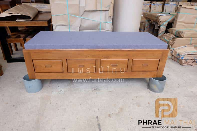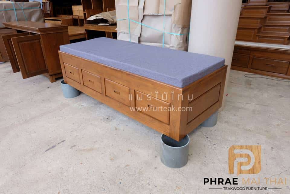 โซฟาโมเดิร์น แบบกล่อง 4 ลิ้นชัก สีสักทองเป็นไม้สักทองอบแห้ง ซึ่งคุณสมบัติของไม้เป็นไม้เนื้อแข็งอายุตั้งแต่ 30 ปีขึ้นไป เราเลือกใช้ไม้สักที่มีคุณภาพและใช้กระบวนการอบไม้ จึงทำให้ไม้มีการคงสภาพ ความชื้นน้อย โอกาสไม้หด หรือ แตกงอน้อยมาก