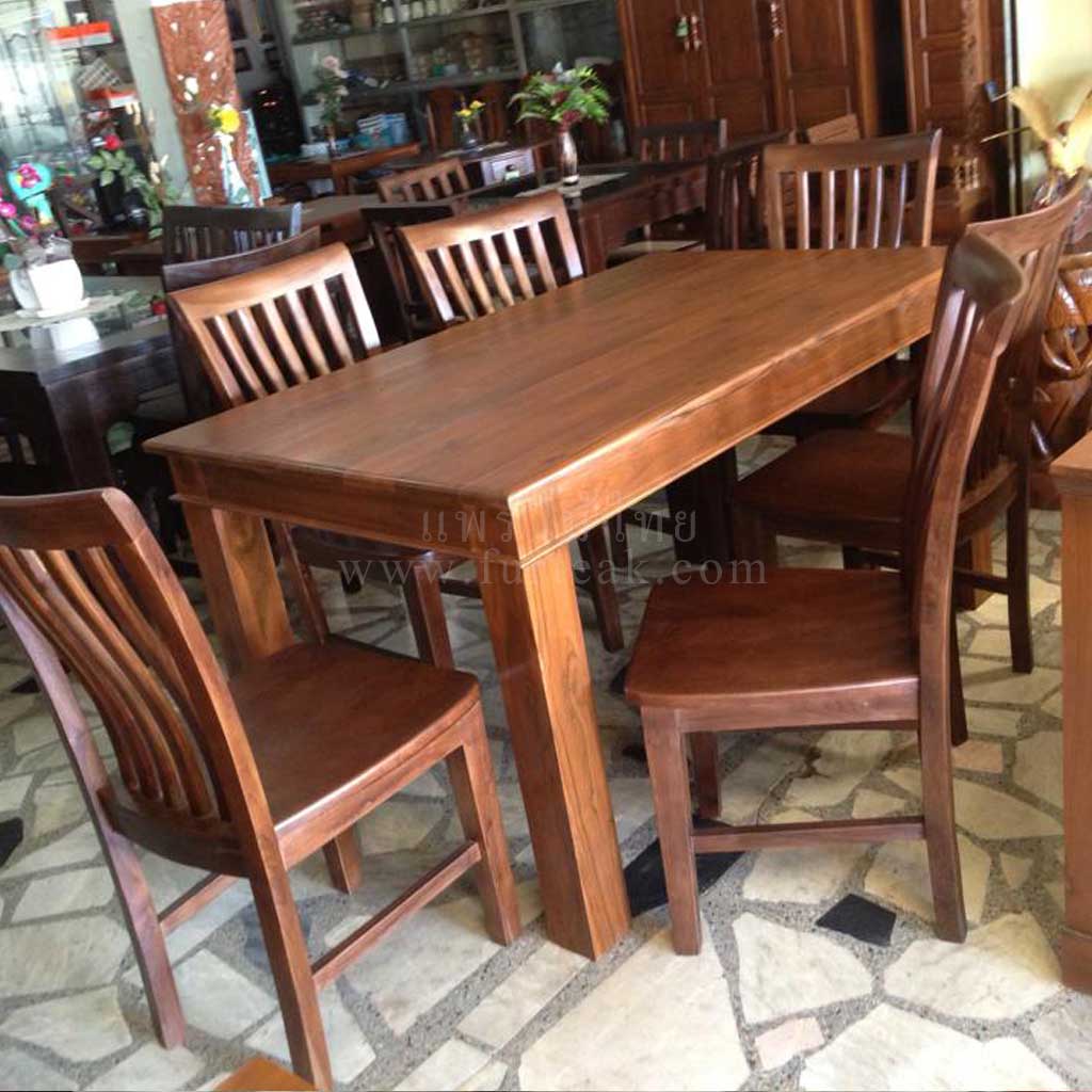 ชุดโต๊ะอาหารไม้เต็ม ทรงสี่เหลี่ยม เก้าอี้ 6 ที่นั่ง สีสักเข้มเป็นไม้สักทองอบแห้ง ซึ่งคุณสมบัติของไม้เป็นไม้เนื้อแข็งอายุตั้งแต่ 30 ปีขึ้นไป เราเลือกใช้ไม้สักที่มีคุณภาพและใช้กระบวนการอบไม้ จึงทำให้ไม้มีการคงสภาพ ความชื้นน้อย และโอกาสไม้หดตัวน้อยมาก