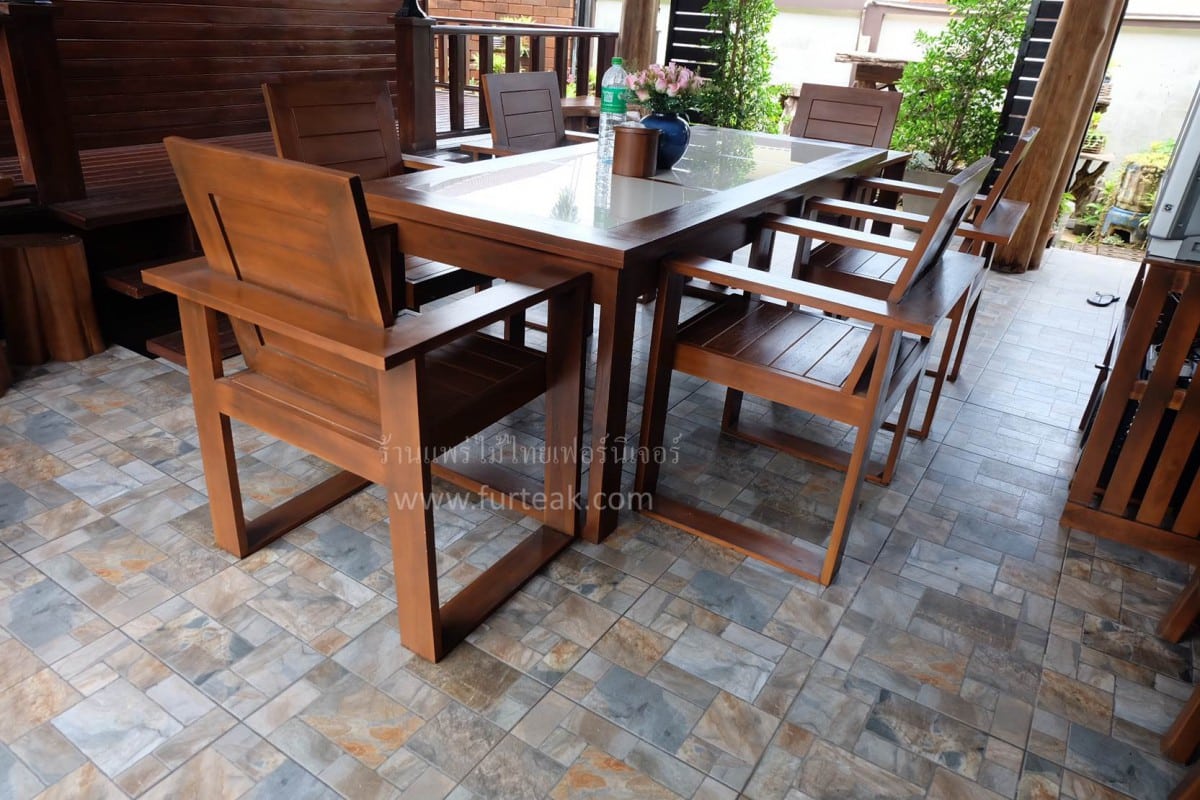 ชุดโต๊ะอาหารไม้สักขาหนา 2 นิ้ว พร้อมเก้าอี้กล่อง 6 ที่นั่ง สีสักเข้มเป็นไม้สักทองอบแห้ง ซึ่งคุณสมบัติของไม้เป็นไม้เนื้อแข็งอายุตั้งแต่ 30 ปีขึ้นไป เราเลือกใช้ไม้สักที่มีคุณภาพและใช้กระบวนการอบไม้ จึงทำให้ไม้มีการคงสภาพ ความชื้นน้อย และโอกาสไม้หดตัวน้อยมาก