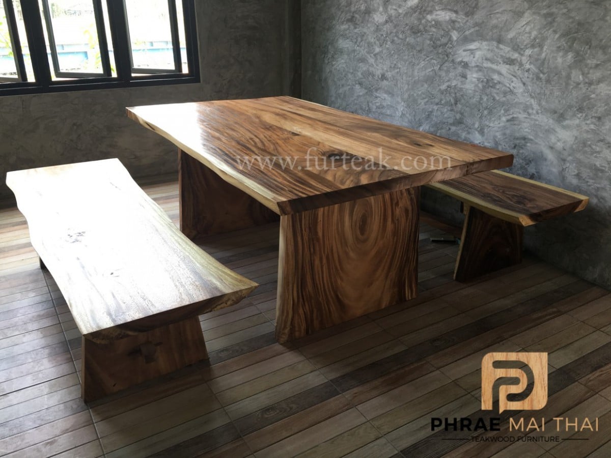 • ชุดโต๊ะอาหารโมเดิร์น ไม้ฉำฉาหรือไม้จามจุรี พร้อมม้านั่งยาว  2 ตัว สีธรรมชาติ               **ทั้งนี้ลายไม้จะไม่เหมือนกันในแต่ละแผ่นและขนาดจะเปลี่ยนไปตามรูปทรงของไม้ธรรมชาติ