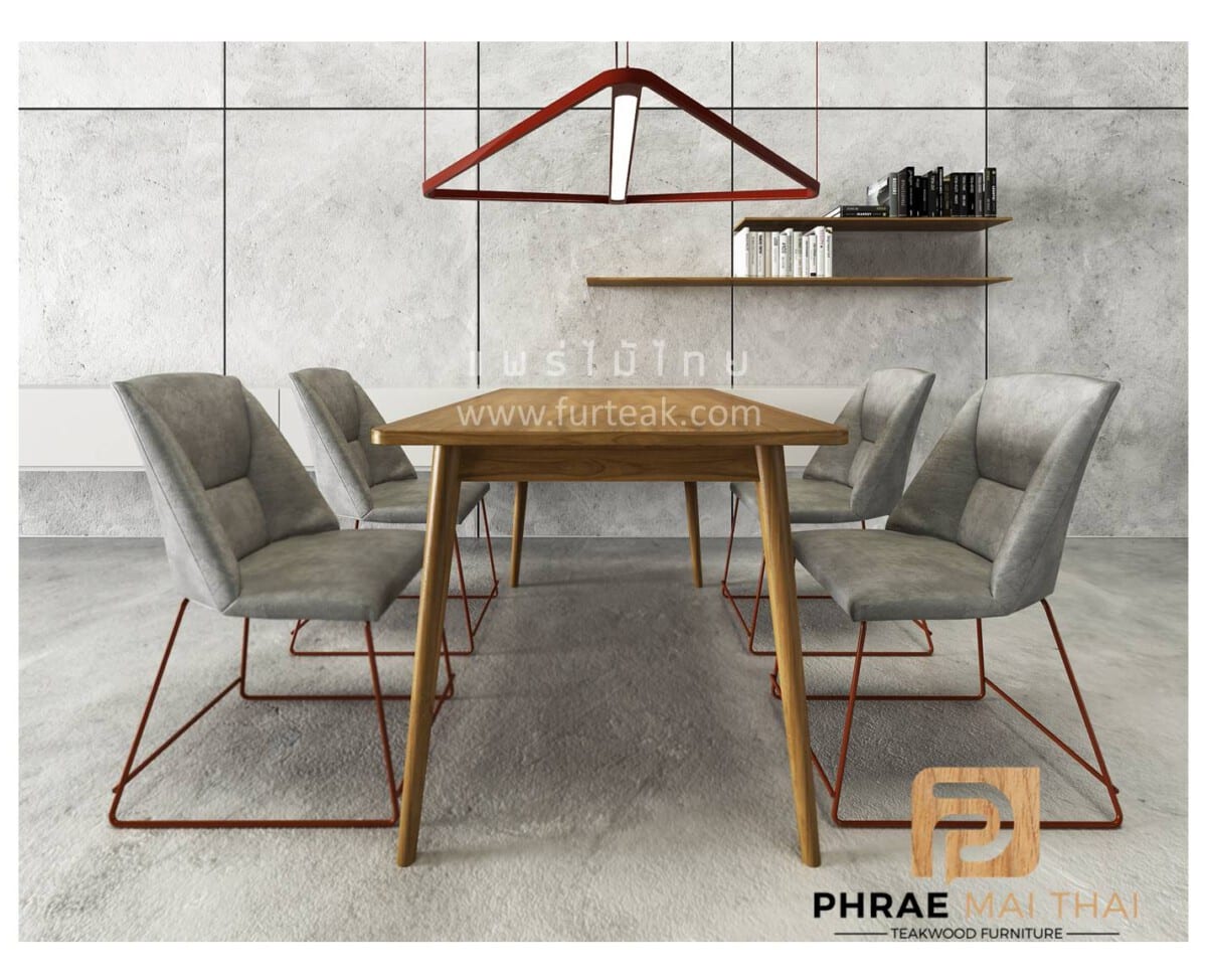 โต๊ะอาหารไม้สักแนว โมเดิร์น ขากลึง ทันสมัยเหมาะสำหรับบ้านสมัยใหม่ สีธรรมชาติ เป็นไม้สักทองอบแห้ง ซึ่งคุณสมบัติของไม้เป็นไม้เนื้อแข็งอายุตั้งแต่ 30-50 ปีขึ้นไป เราเลือกใช้ไม้สักที่มีคุณภาพและใช้กระบวนการอบไม้ จึงทำให้ไม้มีการคงสภาพ ความชื้นน้อย โอกาสไม้หด หรือ แตกงอน้อยมาก