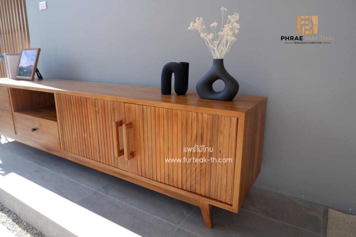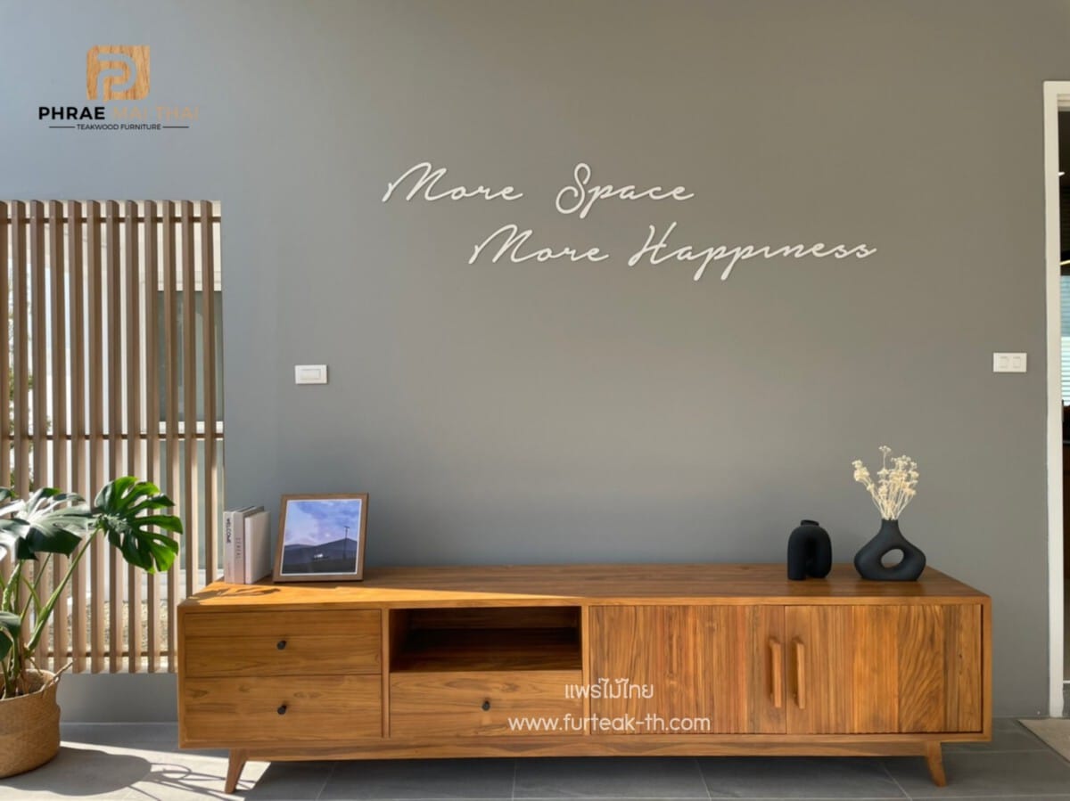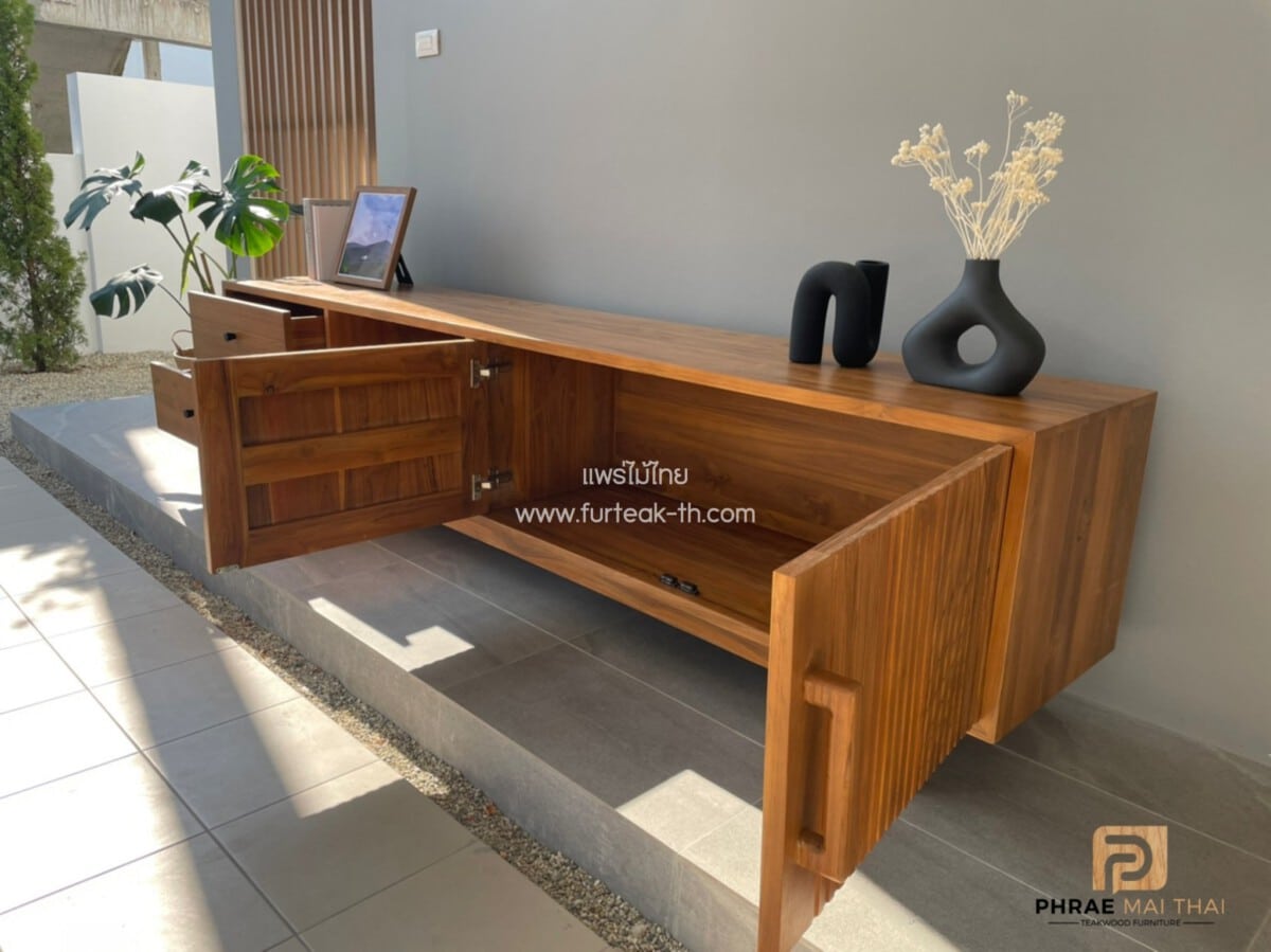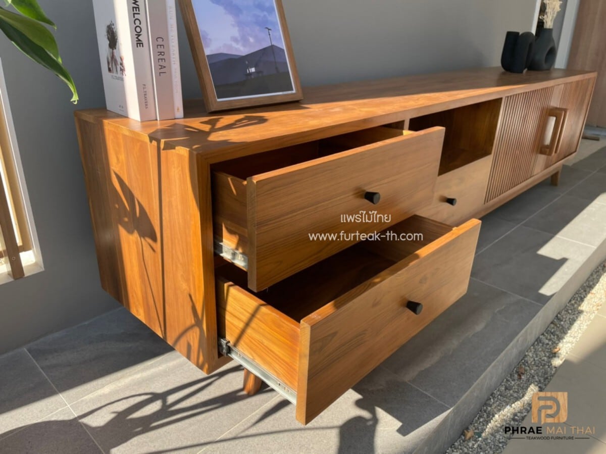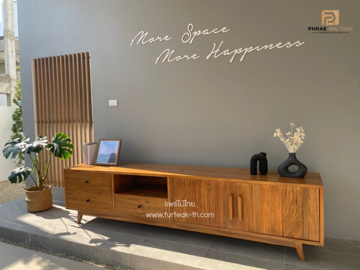 ชั้นวางทีวี โมเดริ์น 3 ลิ้นชัก 2 บานเปิด เป็นไม้สักทองอบแห้ง ซึ่งคุณสมบัติของไม้เป็นไม้เนื้อแข็งอายุตั้งแต่ 30 ปีขึ้นไป เราเลือกใช้ไม้สักที่มีคุณภาพและใช้กระบวนการอบไม้ จึงทำให้ไม้มีการคงสภาพ ความชื้นน้อย และโอกาสไม้หดตัวน้อยมาก