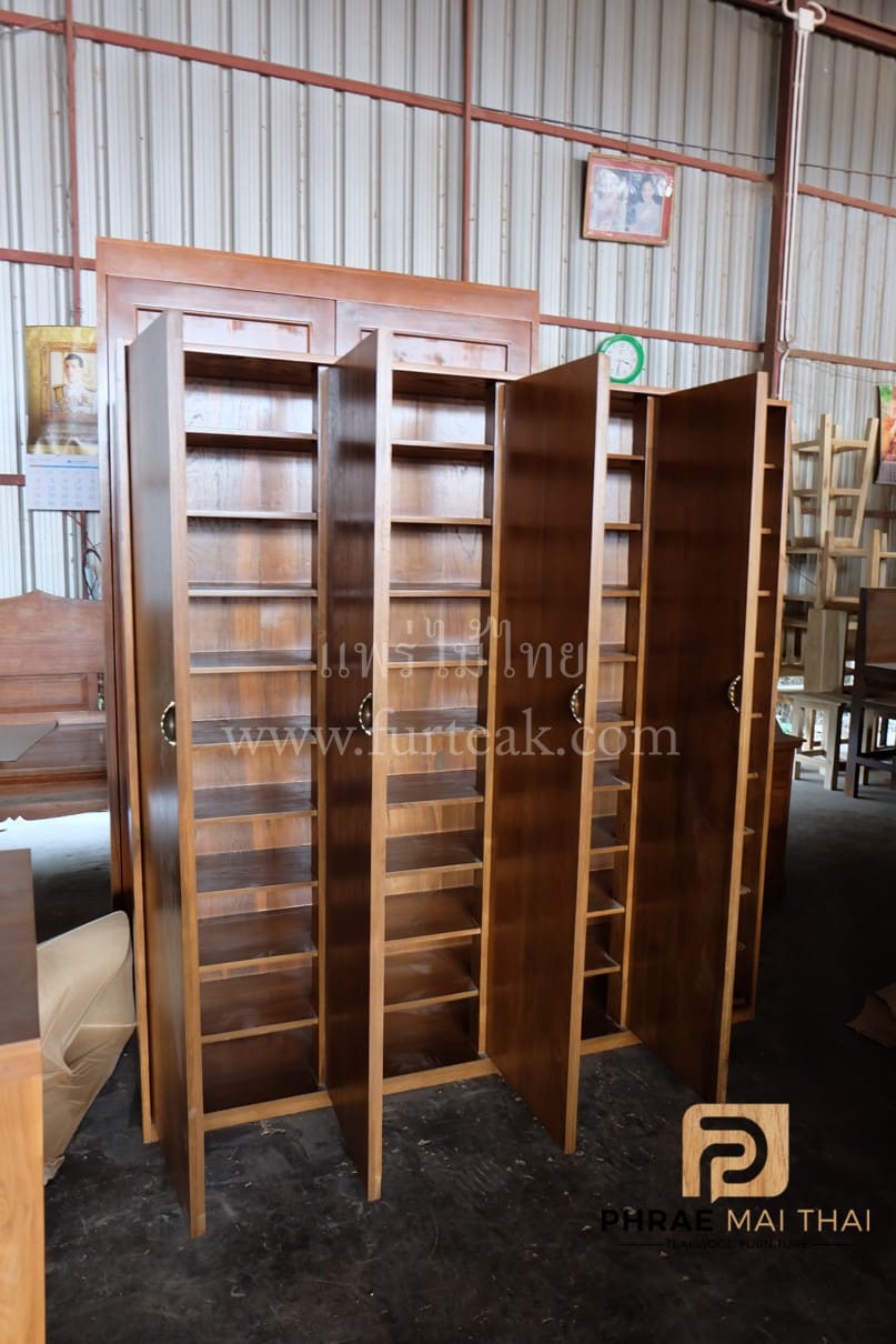 ตู้รองเท้า/ชั้นวางรองเท้าโมเดิร์น สีสักทองเป็นไม้สักทองอบแห้งประกอบไปด้วย 4 บานเปิด-ปิด เหมาะสำหรับท่านใดที่กำลังมองหาชั้นวางรองเท้าจำนวนมาก ซึ่งคุณสมบัติของไม้เป็นไม้เนื้อแข็งอายุตั้งแต่ 30-50 ปีขึ้นไป เราเลือกใช้ไม้สักที่มีคุณภาพและใช้กระบวนการอบไม้ จึงทำให้ไม้มีการคงสภาพ ความชื้นน้อย และโอกาสไม้หดตัวน้อยมาก