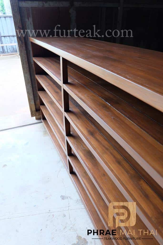 ชั้นวางรองเท้าไม้สักโมเดิร์น สีสักเข้มเป็นไม้สักทองอบแห้ง ซึ่งคุณสมบัติของไม้เป็นไม้เนื้อแข็งอายุตั้งแต่ 30 ปีขึ้นไป เราเลือกใช้ไม้สักที่มีคุณภาพและใช้กระบวนการอบไม้ จึงทำให้ไม้มีการคงสภาพ ความชื้นน้อย และโอกาสไม้หดตัวน้อยมาก