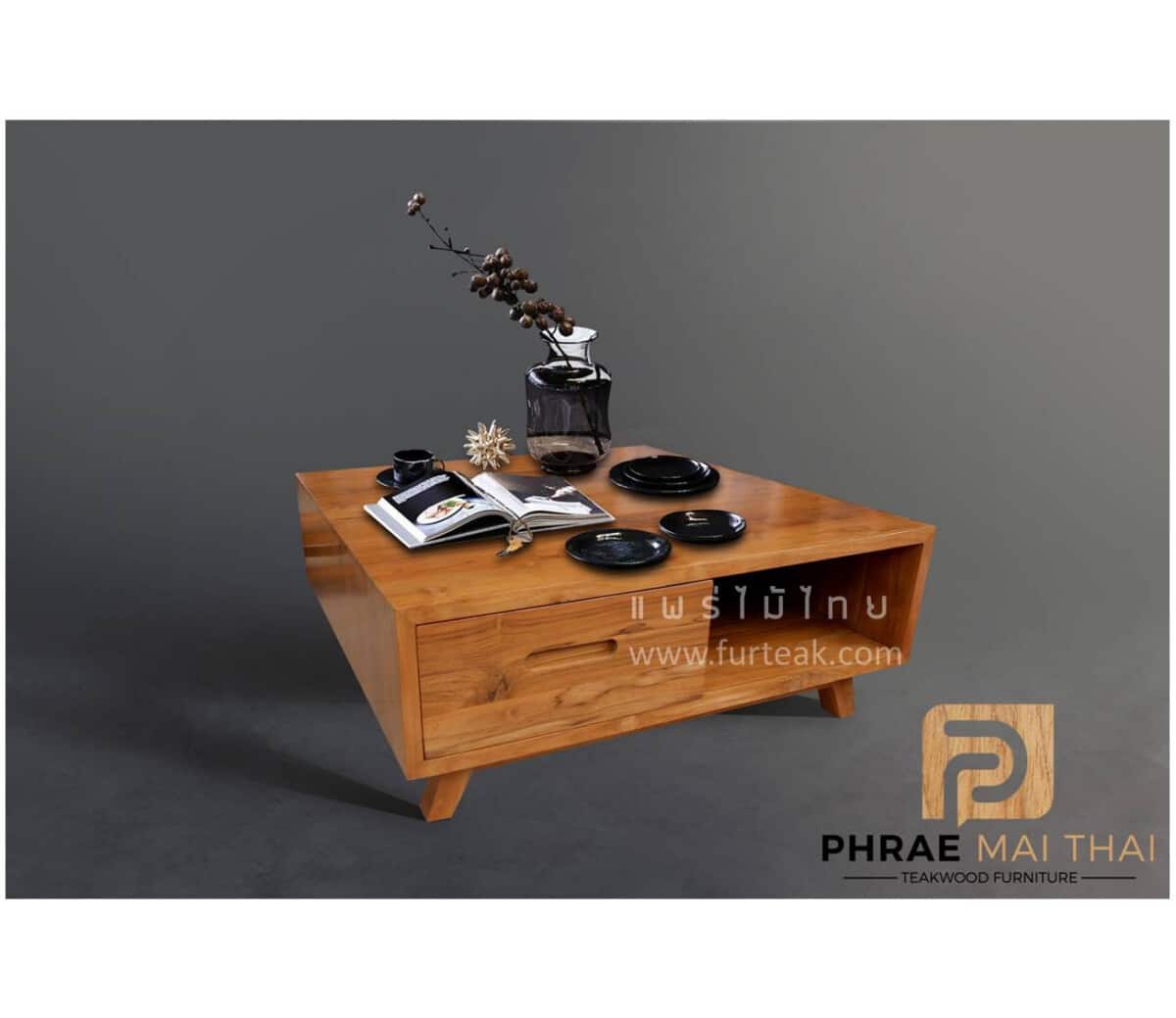 โต๊ะกลางโซฟา มีช่องวาของ และ 1 ลิ้นชัก  สีสักทองเป็นไม้สักแท้  เราเลือกใช้ไม้สักที่มีคุณภาพและใช้กระบวนการอบไม้ จึงทำให้ไม้มีการคงสภาพ ความชื้นน้อย โอกาสไม้หดตัวจึงน้อยมาก