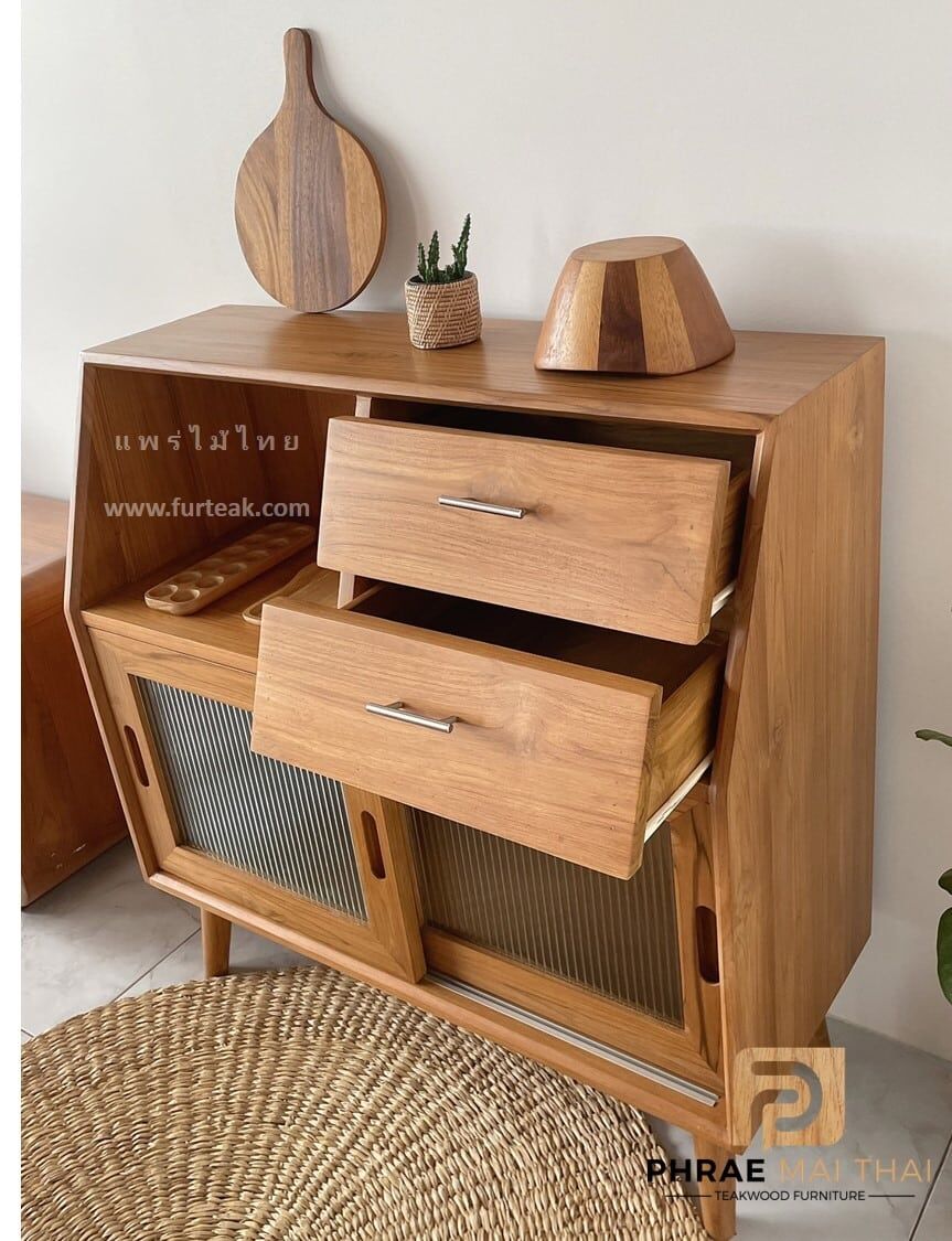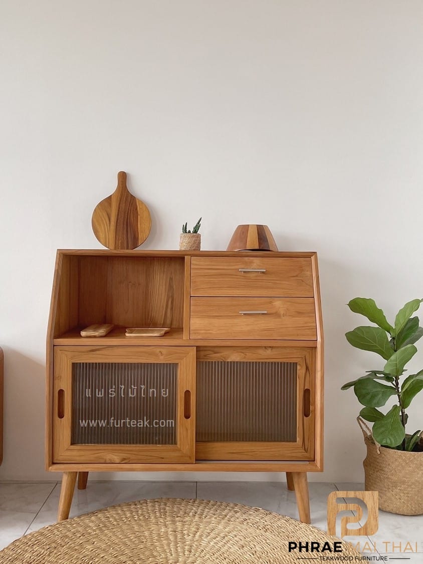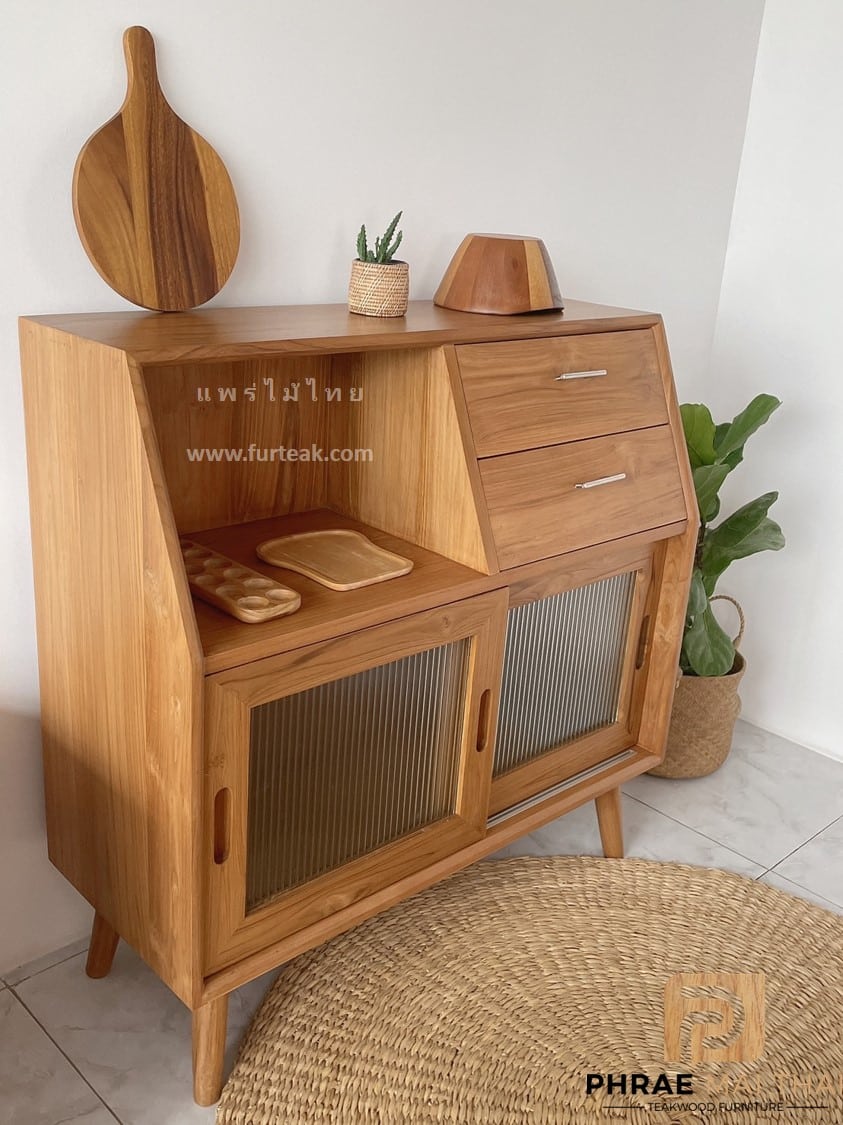 ตู้วางของเอนกประสงค์ ขาลอย เป็นไม้สักทองอบแห้ง รูปทรงทันสมัย เหมาะสำหรับลูกค้าที่ต้องการตู้เก็บของ หรือใส่อุปกรณ์ต่างๆ ซึ่งคุณสมบัติของไม้เป็นไม้เนื้อแข็งอายุตั้งแต่ 30-50 ปีขึ้นไป เราเลือกใช้ไม้สักที่มีคุณภาพและใช้กระบวนการอบไม้ จึงทำให้ไม้มีการคงสภาพ ความชื้นน้อย และโอกาสไม้หดตัวน้อยมาก