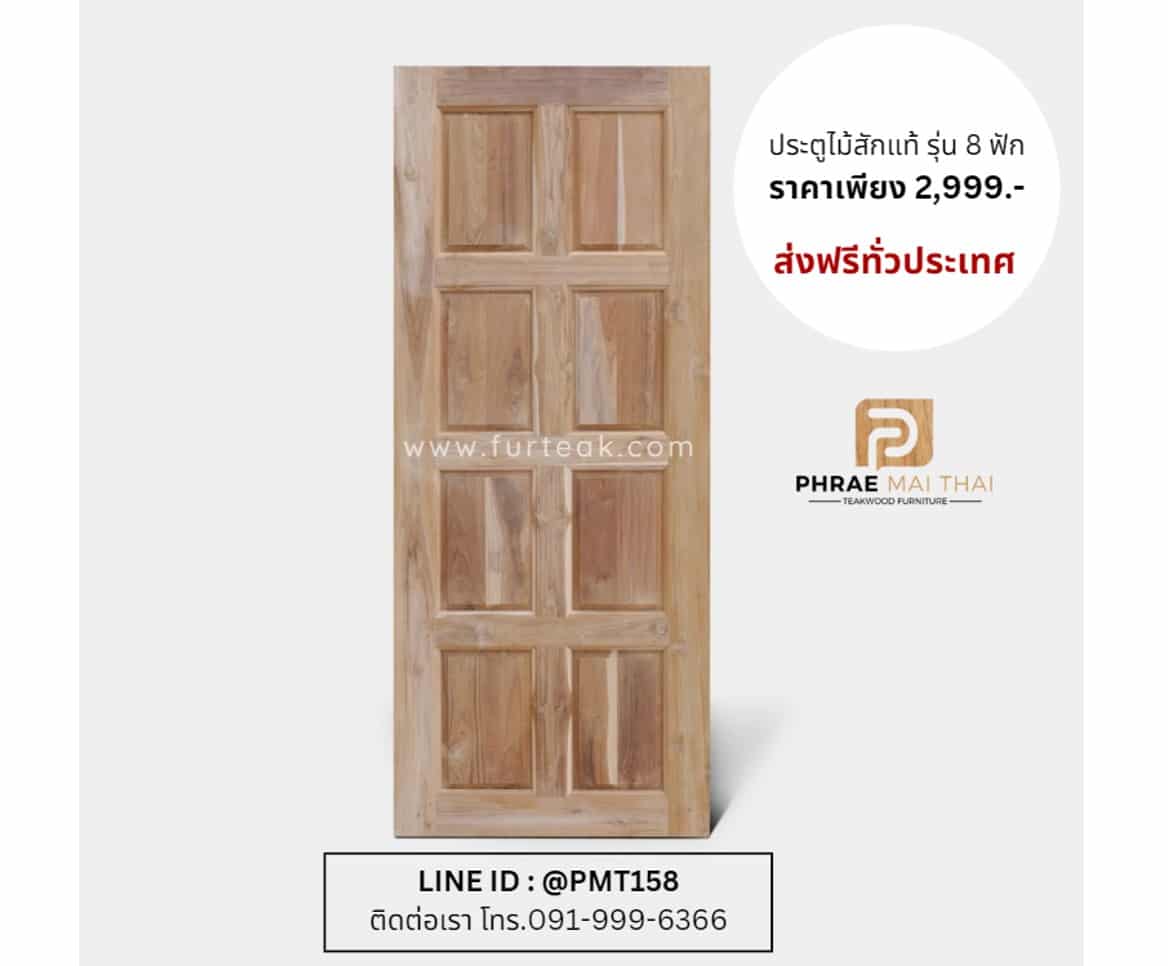 ประตูไม้สัก รุ่น 8 ฟัก (ส่งฟรีทั่วประเทศ)