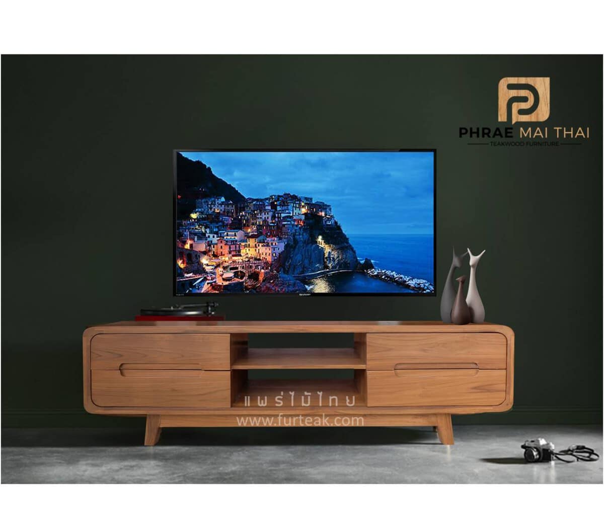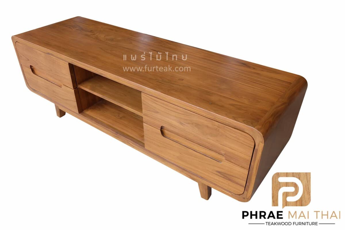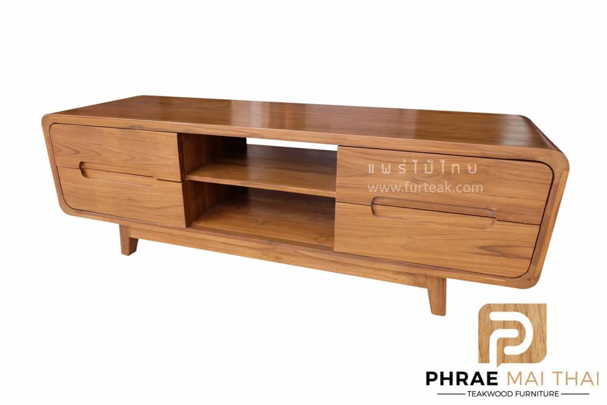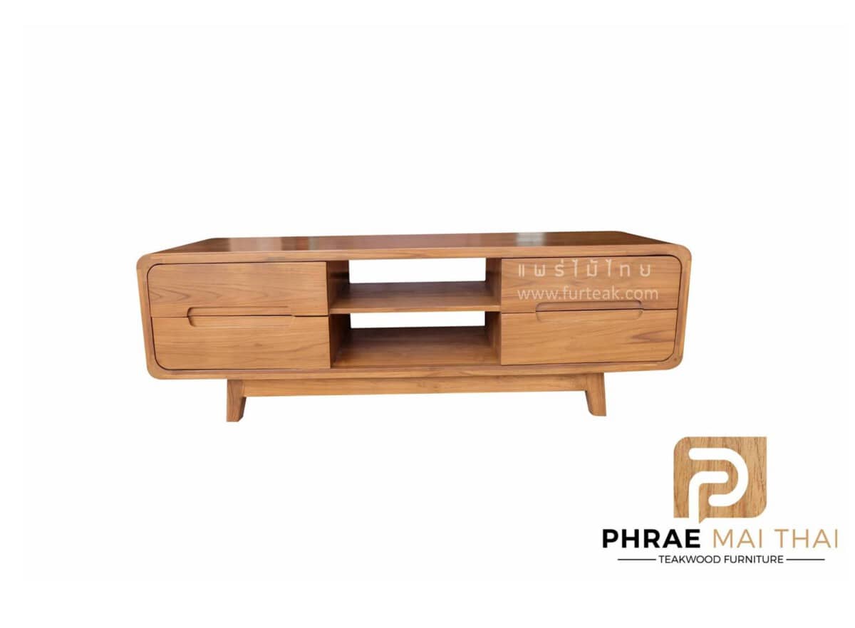 ตู้ทีวีโมเดิร์น / ชั้นวางทีวี 4 ลิ้นชัก 2 ช่องวางของ ขายกสูง สีสักทอง เป็นไม้สักทองอบแห้ง รูปทรงทันสมัย เหมาะสำหรับลูกค้าที่ต้องการตู้เก็บของ หรือใส่เอกสารต่างๆ ซึ่งคุณสมบัติของไม้เป็นไม้เนื้อแข็งอายุตั้งแต่ 30-50 ปีขึ้นไป เราเลือกใช้ไม้สักที่มีคุณภาพและใช้กระบวนการอบไม้ จึงทำให้ไม้มีการคงสภาพ ความชื้นน้อย และโอกาสไม้หดตัวน้อยมาก