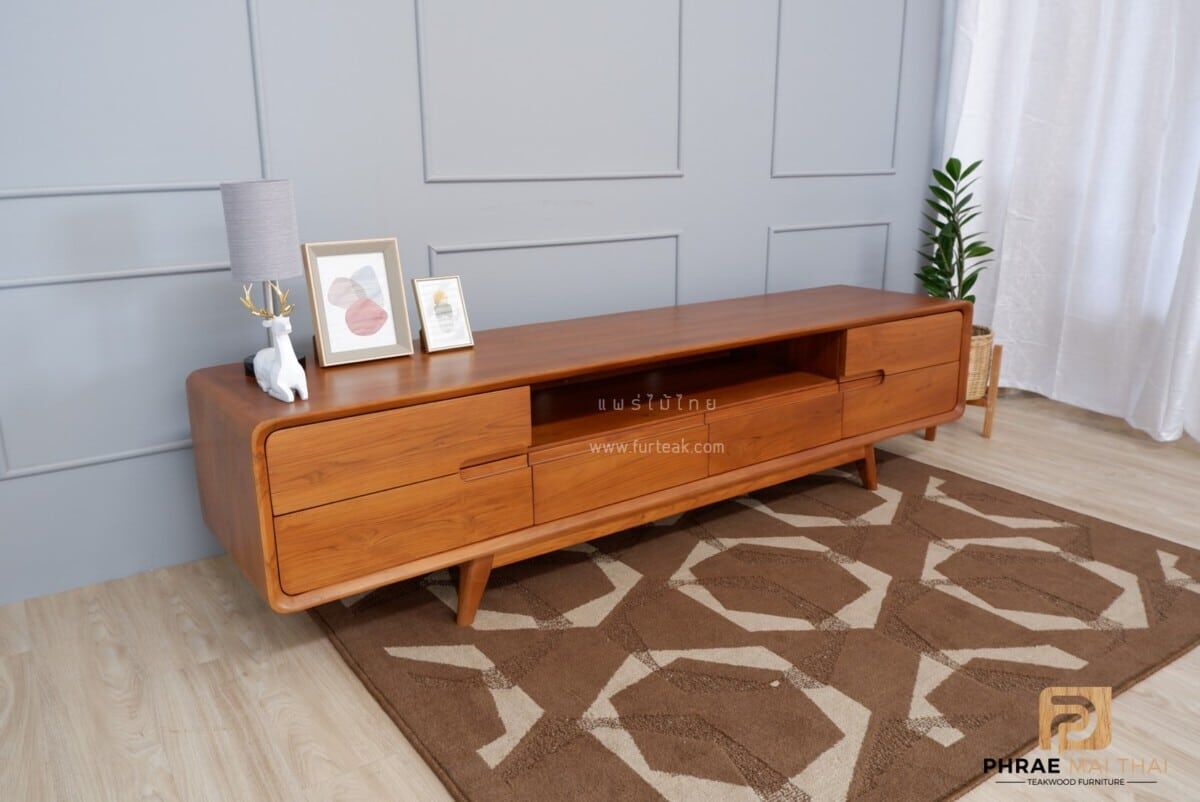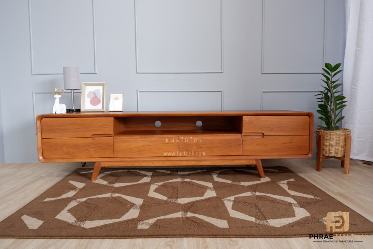 ชั้นวางทีวีขาลอย 6 ลิ้นชัก 1 ช่องวางของ ขอบโค้ง สไตล์โมเดิร์น ป็นไม้สักทองอบ แห้ง ซึ่งคุณสมบัติของไม้เป็นไม้เนื้อแข็งอายุตั้งแต่ 30 ปีขึ้นไป เราเลือกใช้ไม้สักที่มีคุณภาพและใช้กระบวนการอบไม้ จึงทำให้ไม้มีการคงสภาพ ความชื้นน้อย และโอกาสไม้หดตัวน้อยมาก