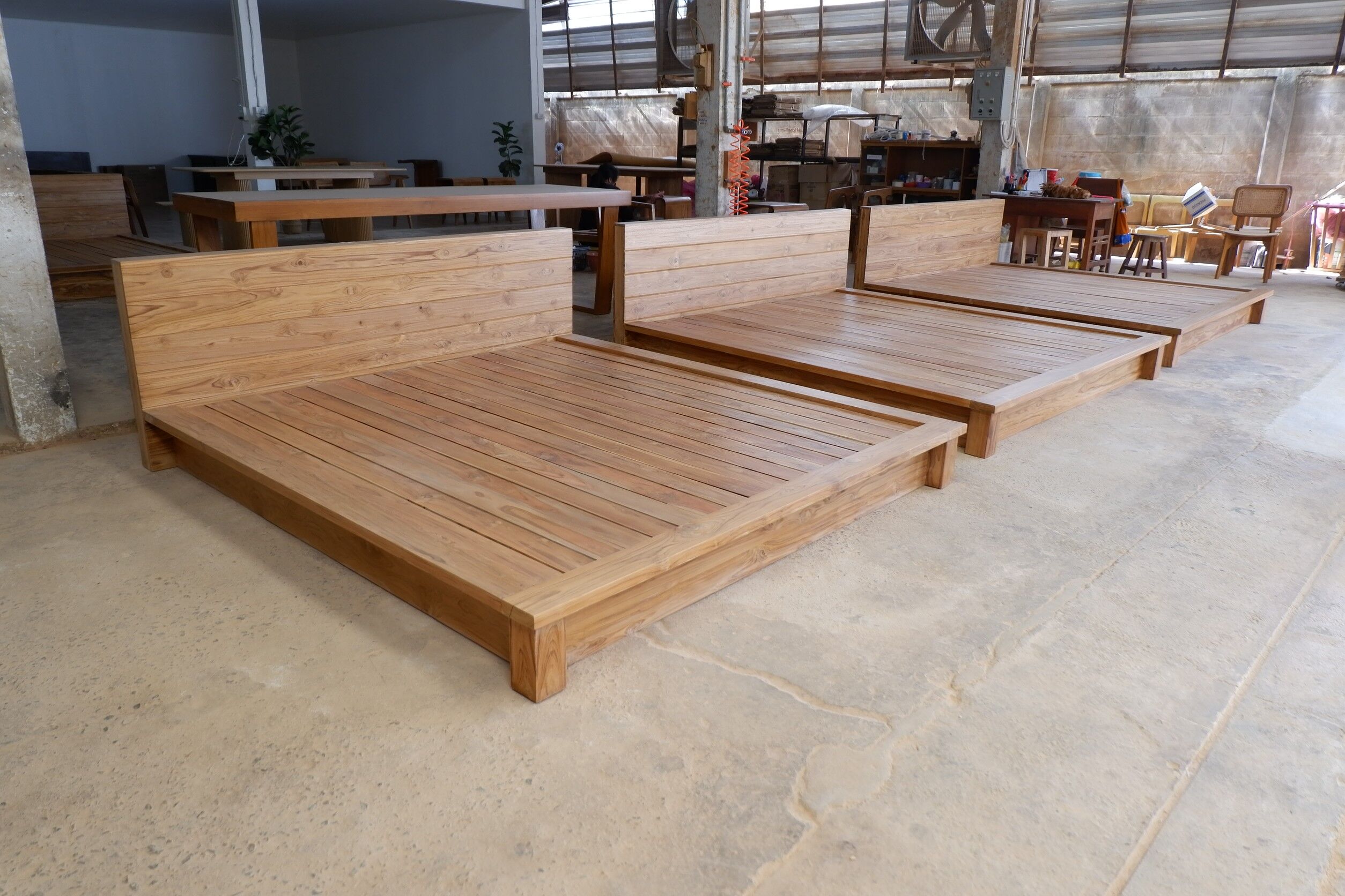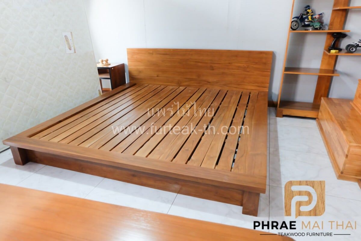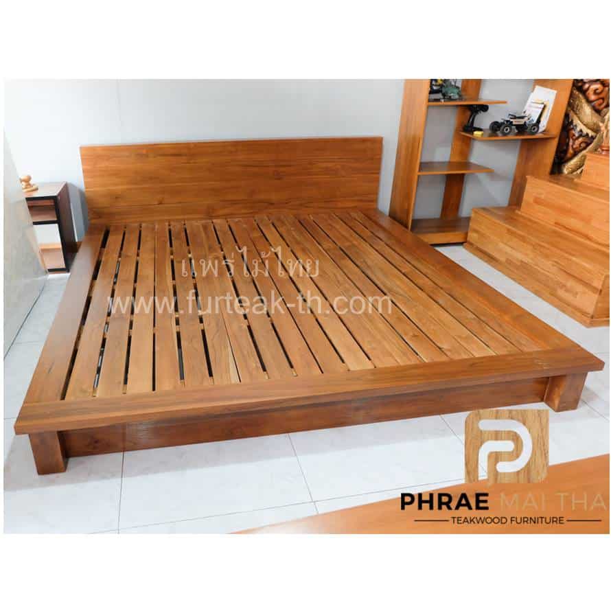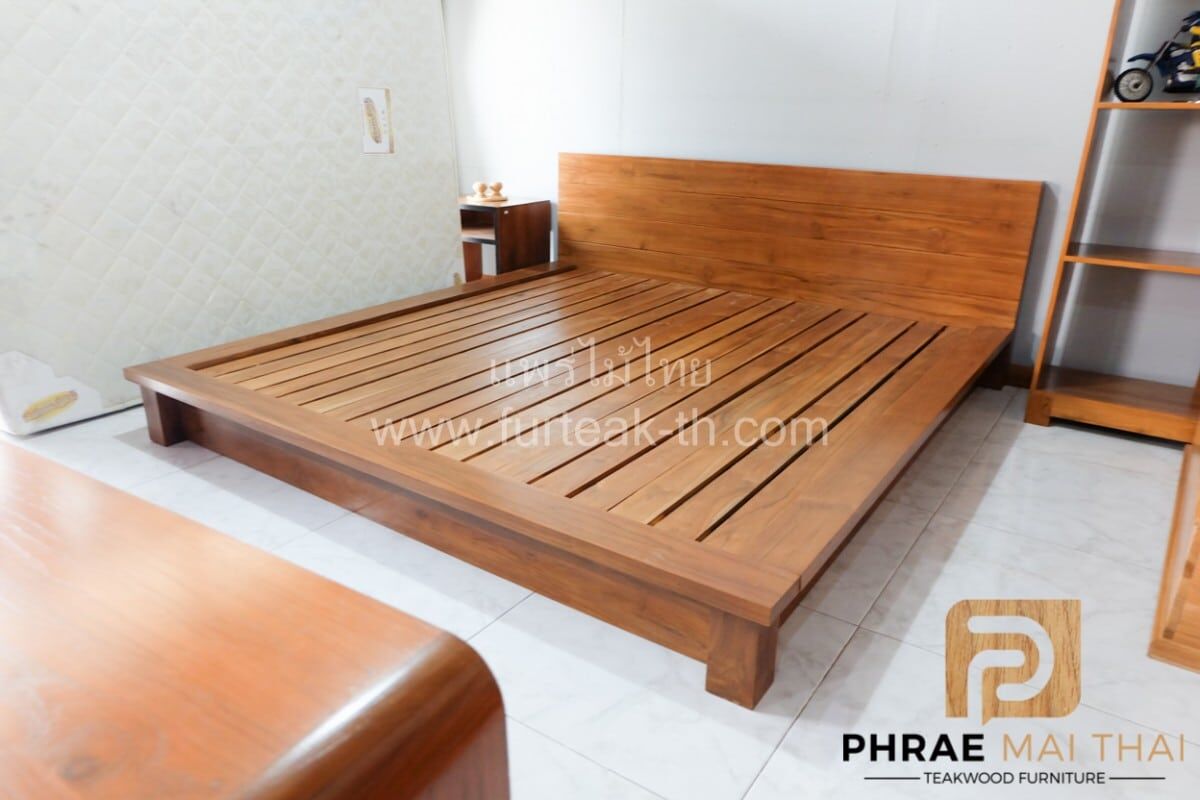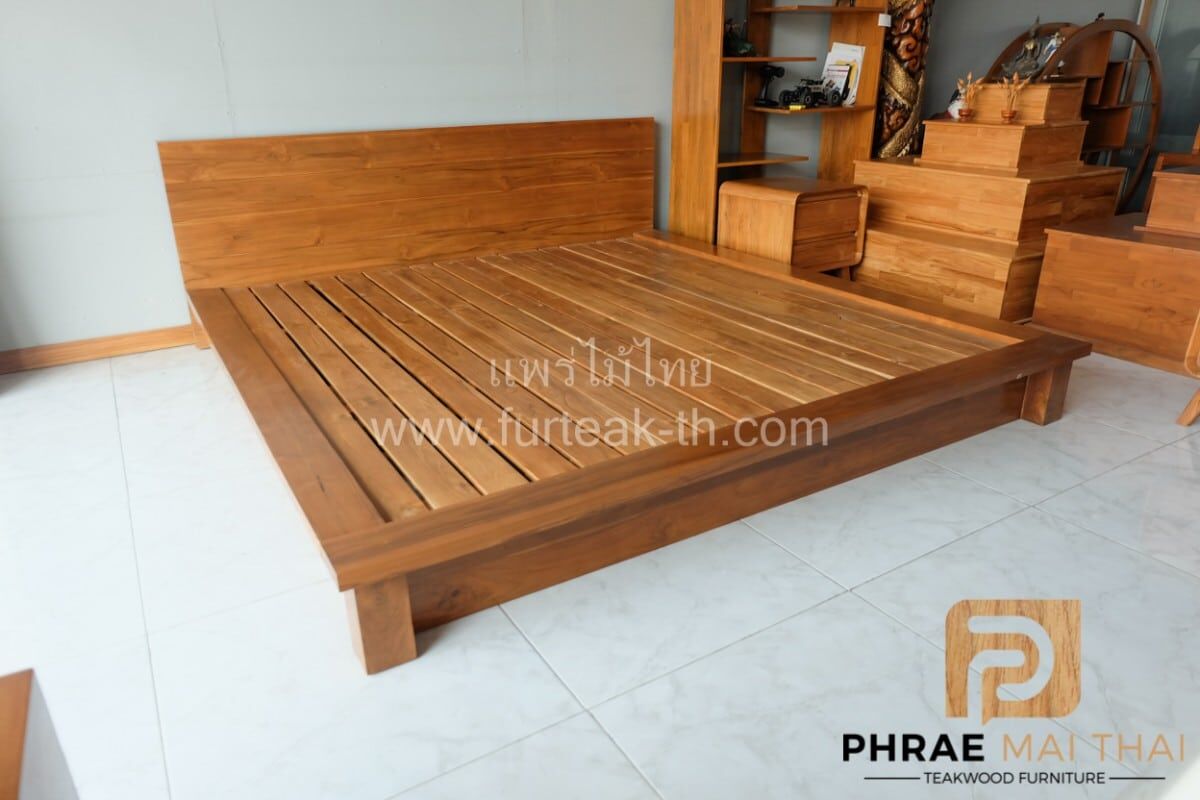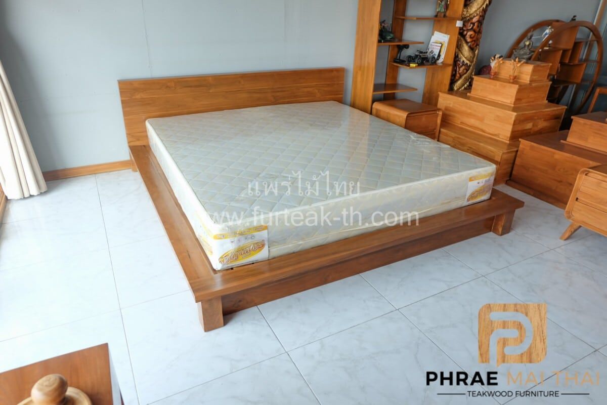 เตียงโมเดิร์น มีขอบข้างยื่นแบบปีก ขาทึบซ่อนหลบด้านใน สามารถถอดประกอบได้ คุณสมบัติของไม้เป็นไม้เนื้อแข็งอายุตั้งแต่ 30 ปีขึ้นไป เราเลือกใช้ไม้สักที่มีคุณภาพและใช้กระบวนการอบไม้จึงทำให้ไม้มีการคงสภาพ ความชื้นน้อยและโอกาสไม้หดตัวน้อยมาก