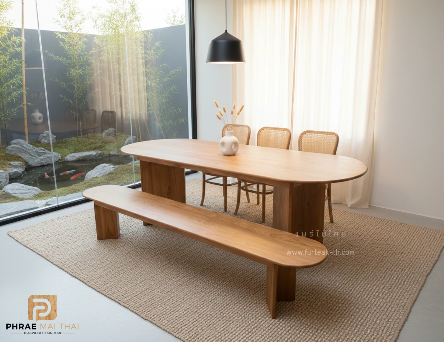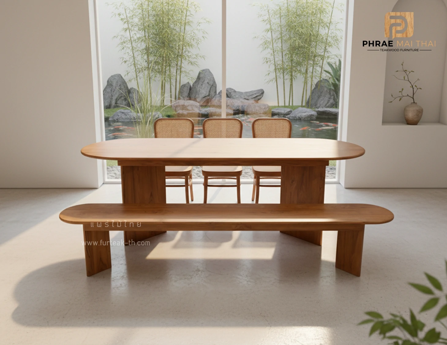 ชุดโต๊ะอาหารขา V 2.5 เมตร + ม้านั่ง พร้อมเก้าอี้ 3 ตัว เป็นไม้สักทองอบแห้ง ซึ่งคุณสมบัติของไม้เป็นไม้เนื้อแข็งอายุตั้งแต่ 30 ปีขึ้นไป เราเลือกใช้ไม้สักที่มีคุณภาพและใช้กระบวนการอบไม้ จึงทำให้ไม้มีการคงสภาพ ความชื้นน้อย และโอกาสไม้หดตัวน้อยมาก