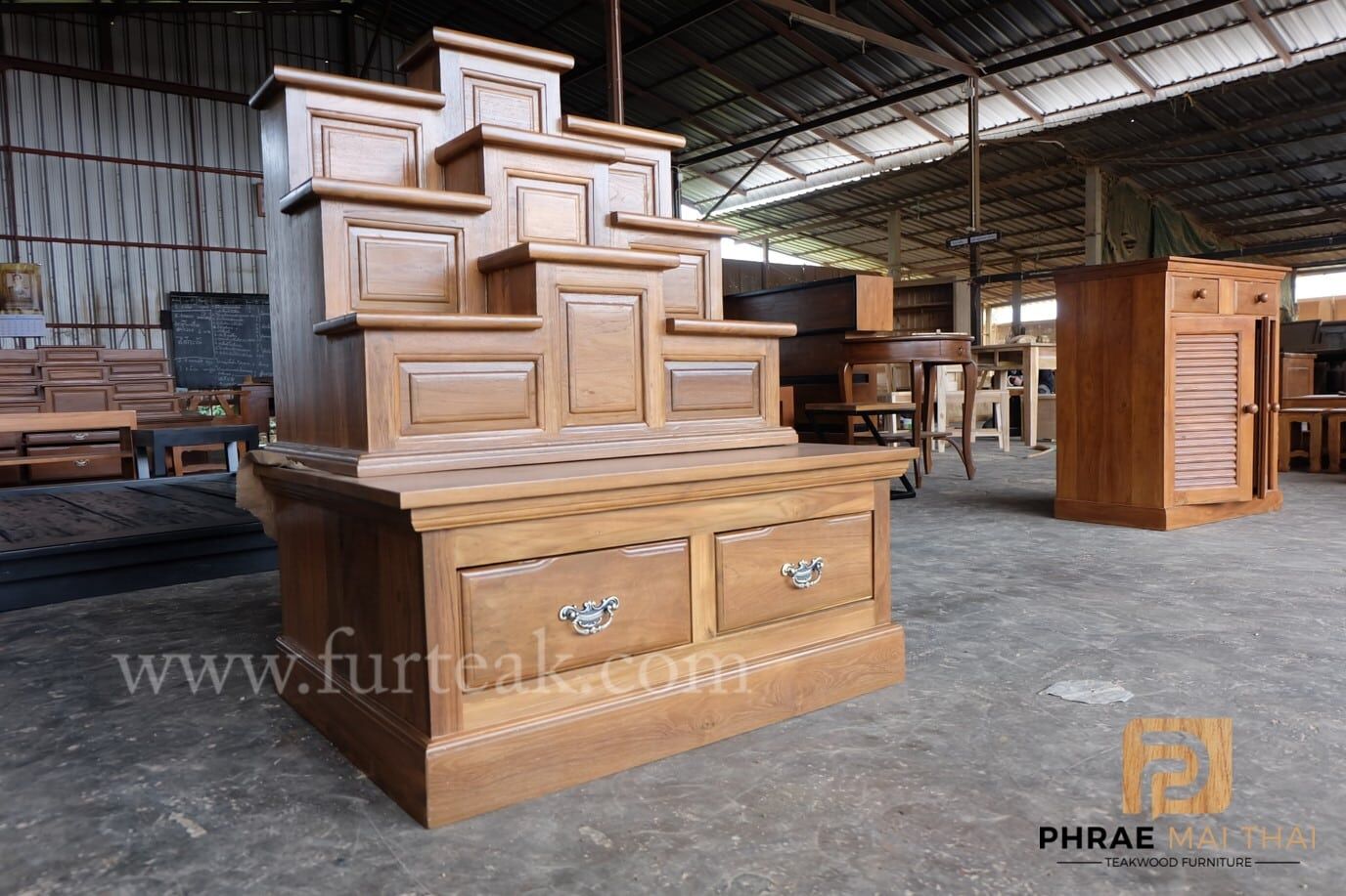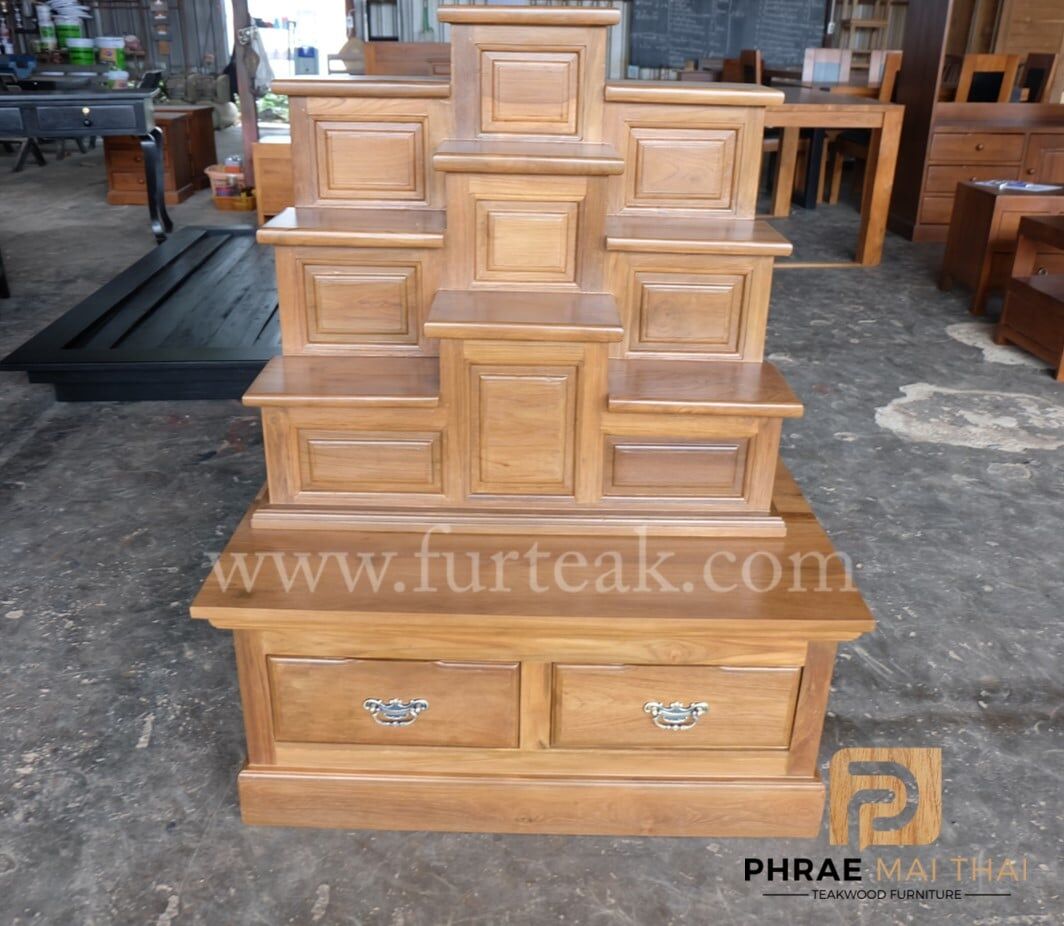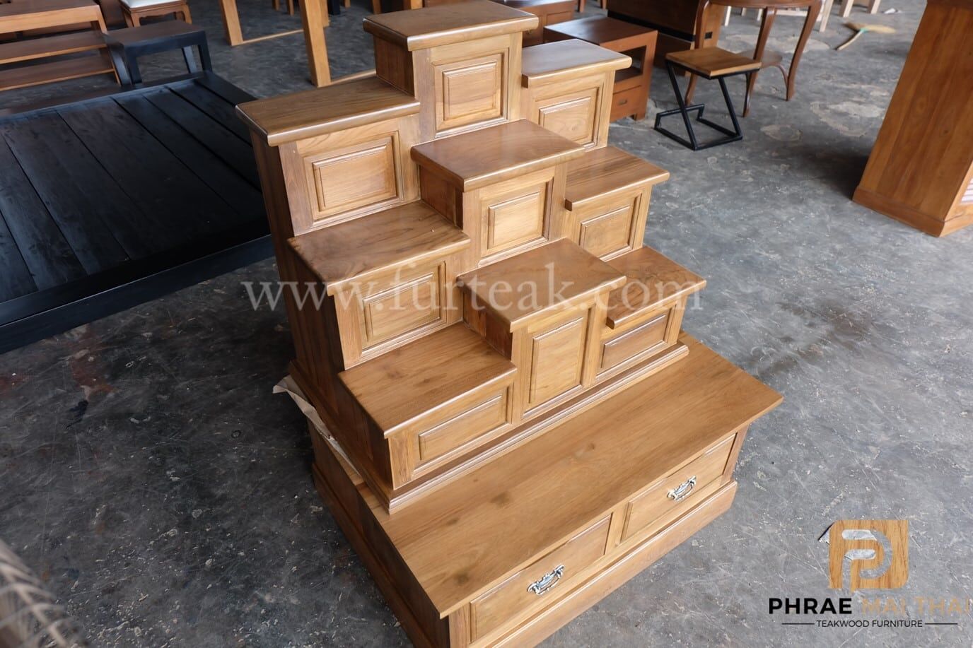 โต๊ะหมู่บูชาโมเดิร์น Size mini ท่อนบนที่วางพระ กว้าง 17 ยาว 28 ซม เท่ากันทั้ง 9 แท่น และฐานล่างประกอบไปด้วย 2 ลิ้นชักเป็นไม้สักทองอบแห้งสีธรรมชาติ (ถอดประกอบได้ ฐานล่าง 1 ตัวและท่อนบน 1ตัว ) ซึ่งเหมาะสำหรับท่านที่กำลังมองหาที่วางองค์พระขนาดเล็กและมีพื้นที่จำกัด