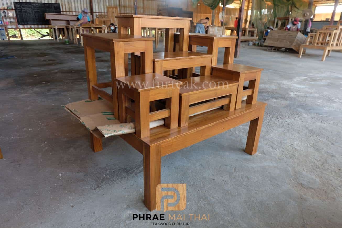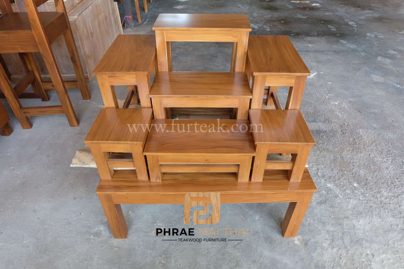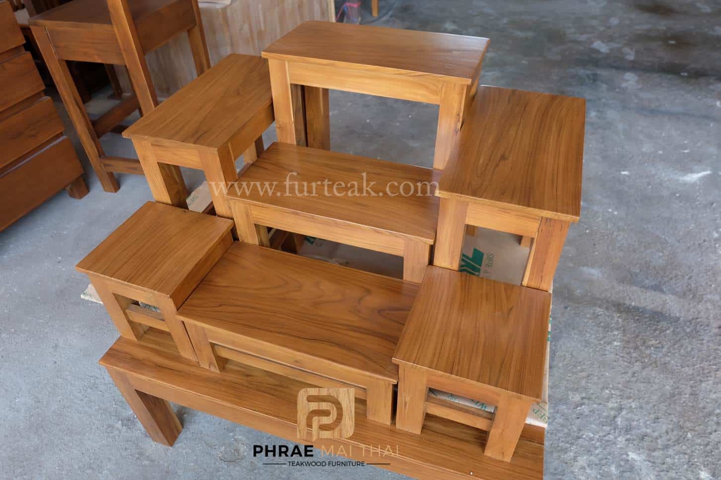 โต๊ะหมู่บูชาโมเดิร์นเรียบ (ขาตรง) หมู่ 7*9 นิ้ว ซึ่งคุณสมบัติของไม้เป็นไม้สักเนื้อแข็งอายุตั้งแต่ 30-50 ปีขึ้นไป เราเลือกใช้ไม้สักที่มีคุณภาพและใช้กระบวนการอบไม้ จึงทำให้ไม้มีการคงสภาพ ความชื้นน้อย และ โอกาสไม้หดตัวน้อยมาก