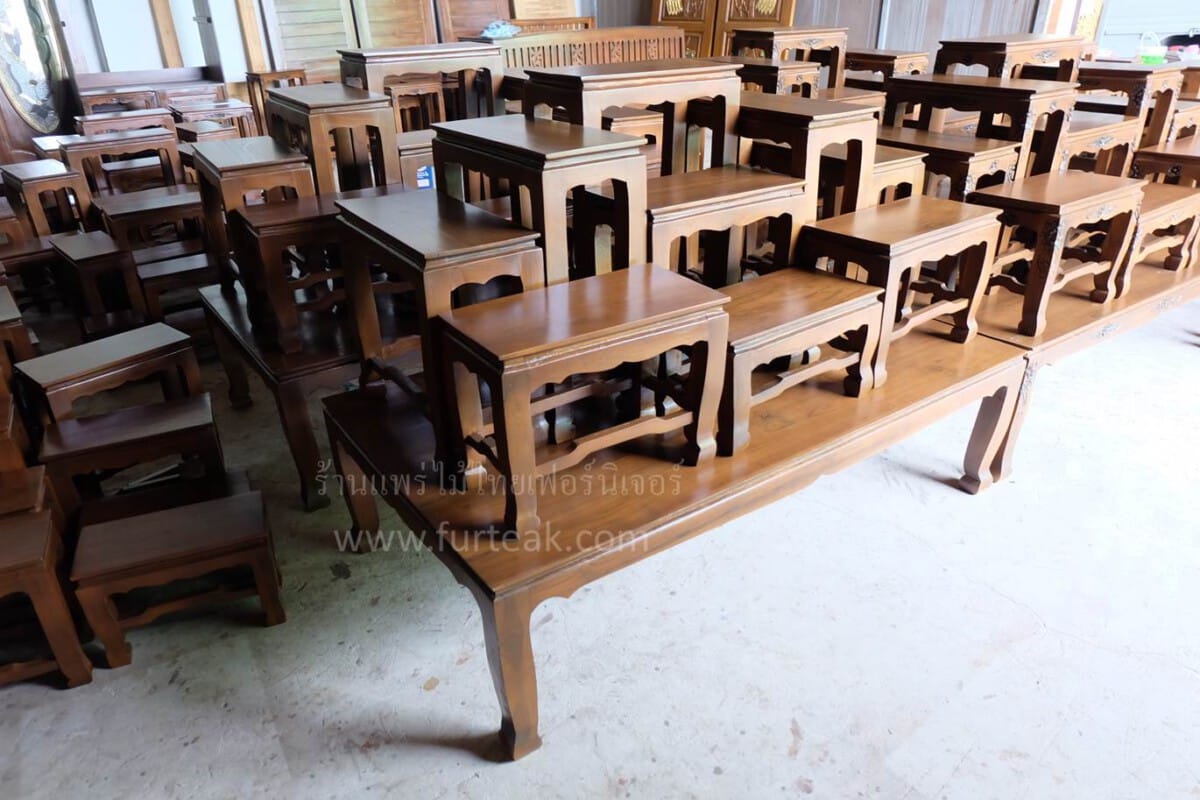 โต๊ะหมู่บูชา หน้า 9 * 9″  นิ้ว เป็นไม้สักทองอบแห้ง ประกอบไปด้วยโต๊ะหมู่ 9 ตัว