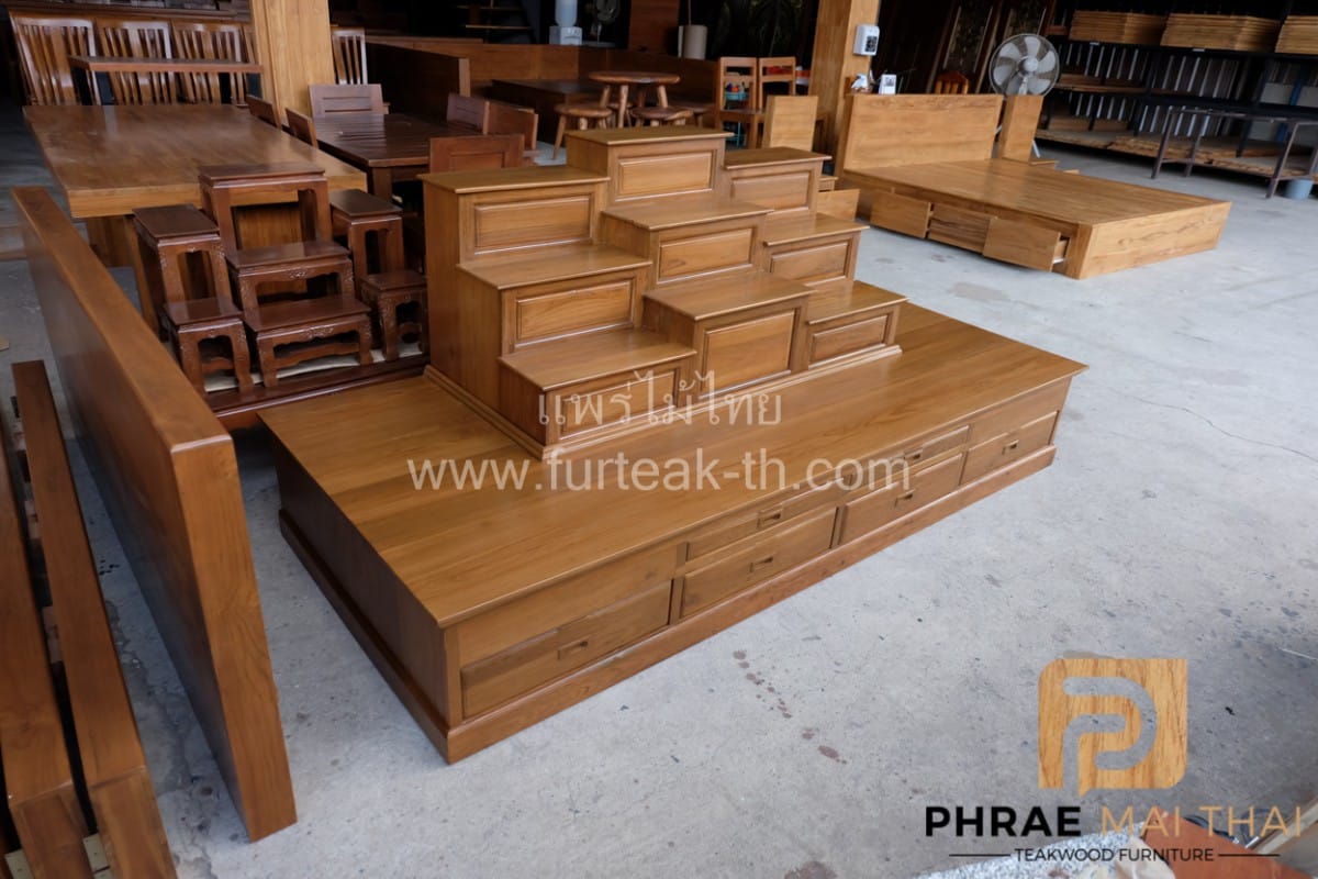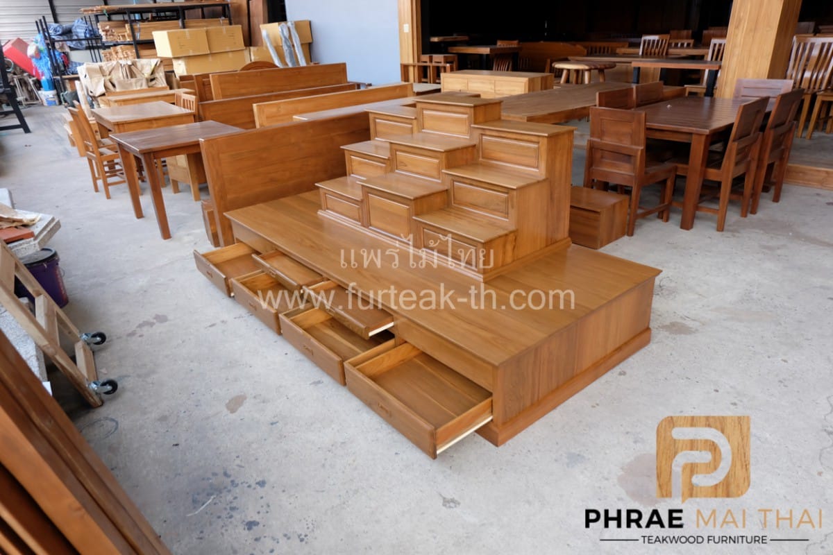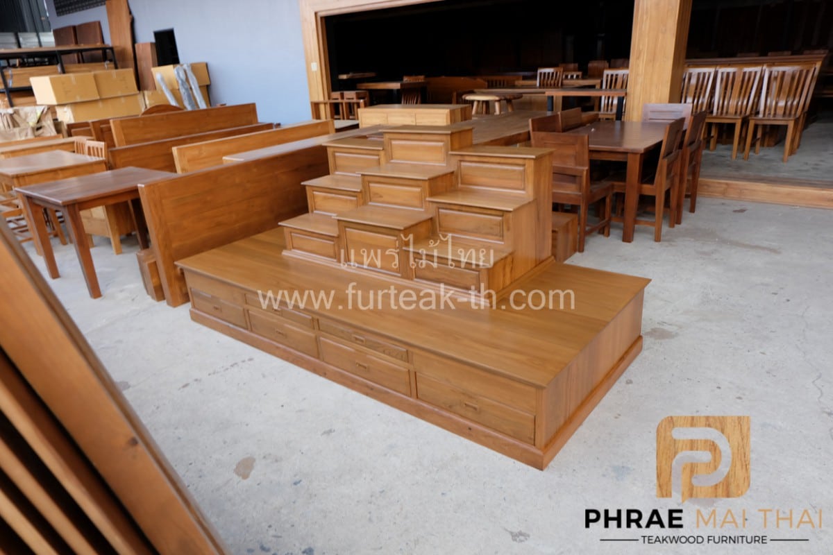 โต๊ะหมู่บูชา 4 ลิ้นชัก 2 ถาดไหว้ มี 9 แท่นวางพระ ขนาดแท่นละ 9 * 18 นิ้ว