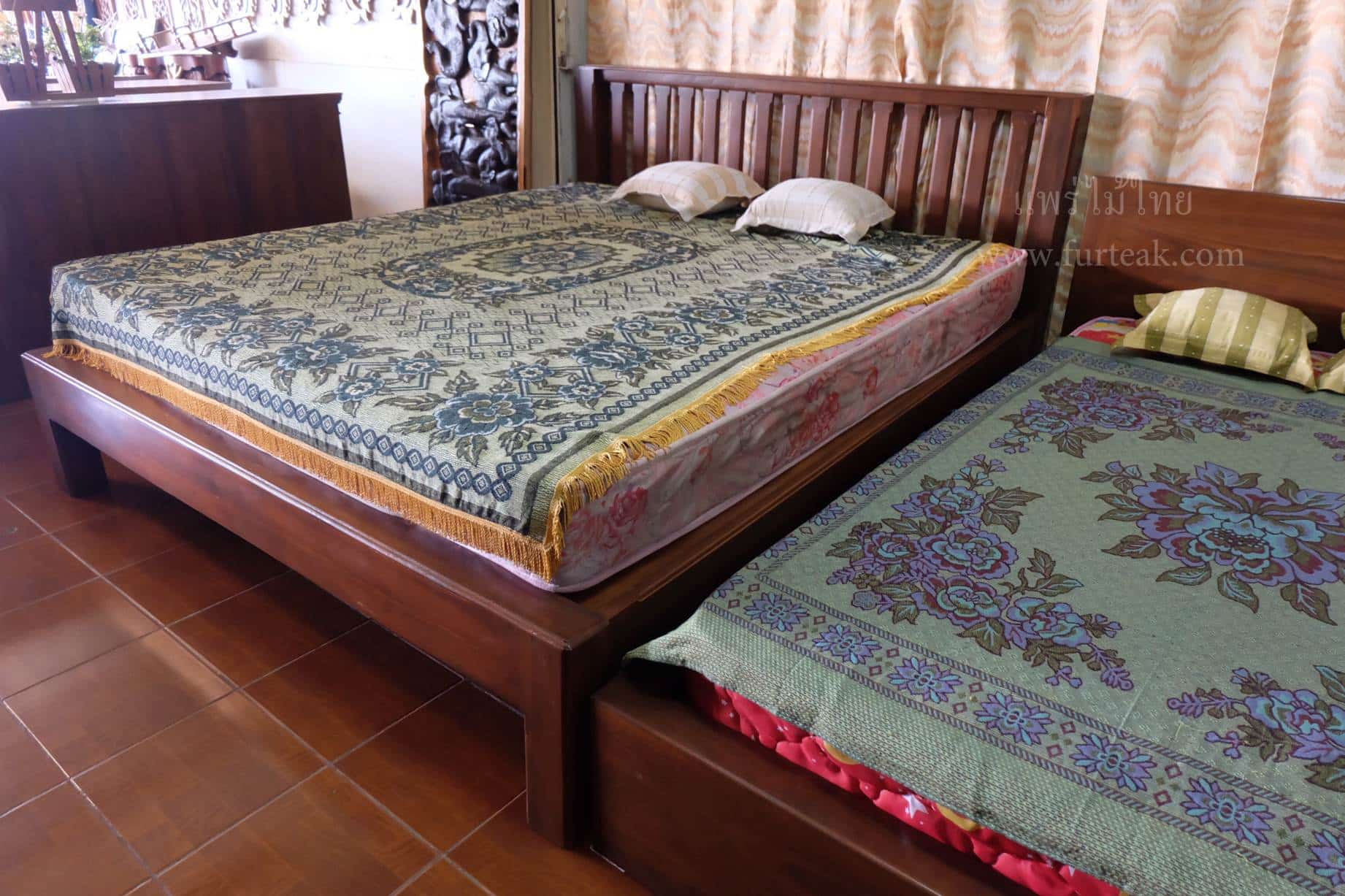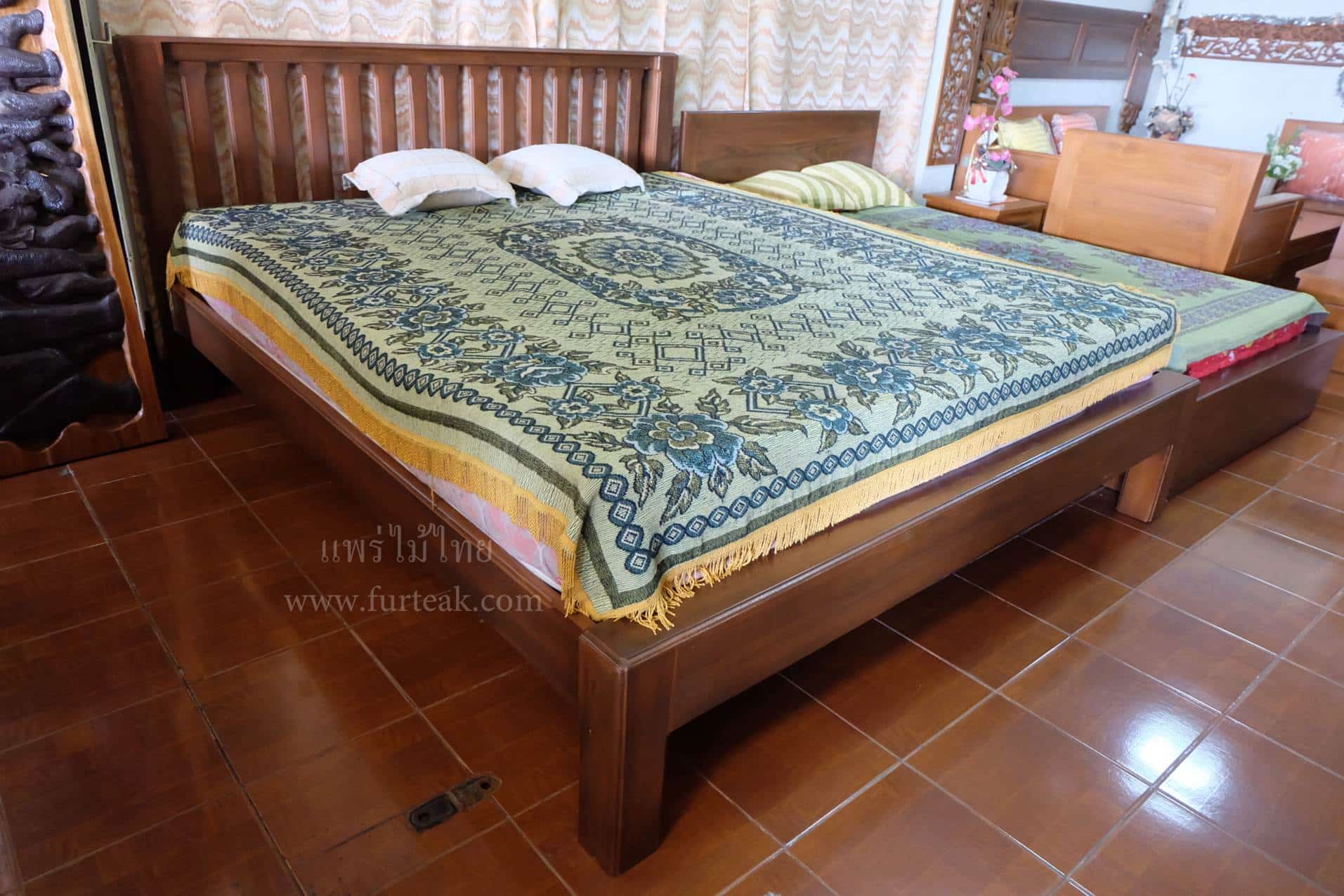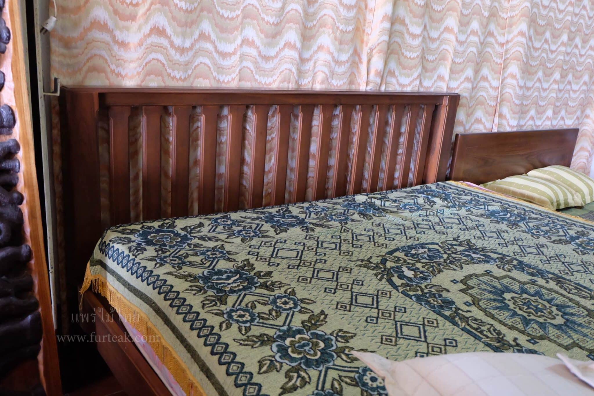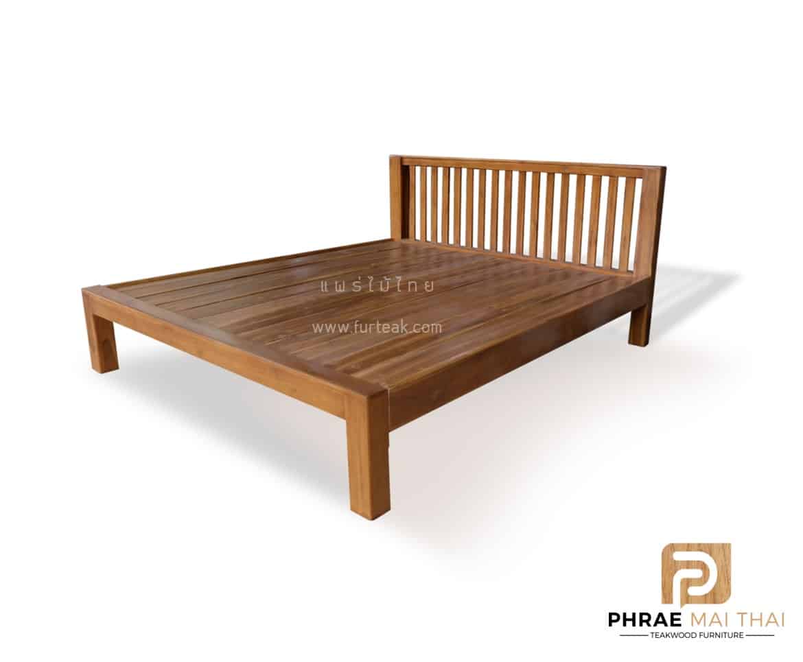 เตียงซี่ไม่มีท้ายเป็นไม้สักทองอบแห้งสีสักเข้มหัวเตียงและท้ายเตียงหนา 4 นิ้ว สามารถถอดประกอบได้ คุณสมบัติของไม้เป็นไม้เนื้อแข็งอายุตั้งแต่ 30 ปีขึ้นไป เราเลือกใช้ไม้สักที่มีคุณภาพและใช้กระบวนการอบไม้จึงทำให้ไม้มีการคงสภาพ ความชื้นน้อย และโอกาสไม้หดตัวน้อยมากเหมาะสำหรับตกแต่งรีสอร์ท อพาตเม้นท์ และโรงแรม