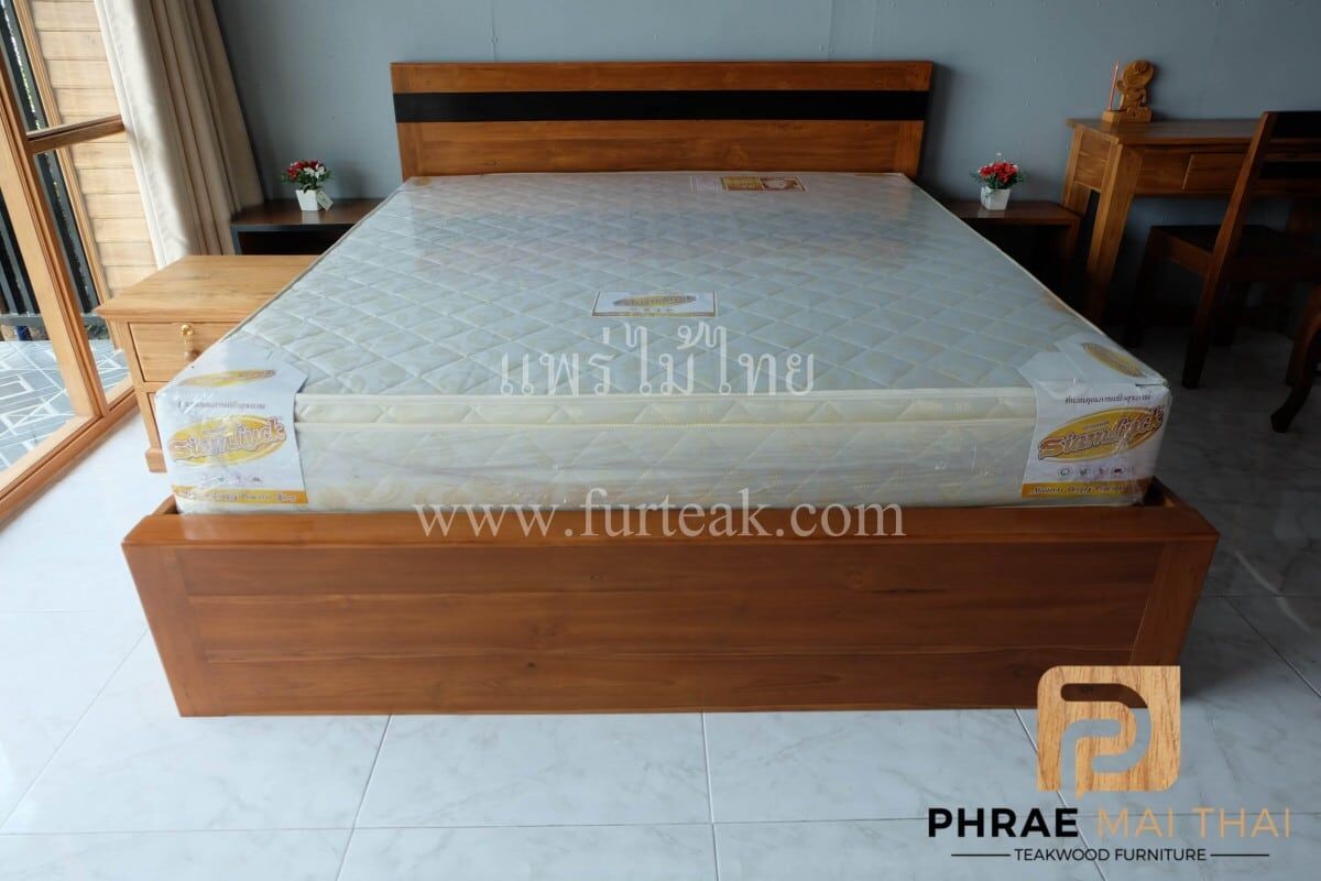 เตียงโมเดิร์น LOFT สีสักทอง 6 ฟุต หัวเตียงสูง 100 ซม. ท้ายเตียงสูง 40 ซม. ซึ่งคุณสมบัติของไม้เป็นไม้เนื้อแข็งอายุตั้งแต่ 30 ปีขึ้นไป เราเลือกใช้ไม้สักที่มีคุณภาพและใช้กระบวนการอบไม้ จึงทำให้ไม้มีการคงสภาพ ความชื้นน้อยและโอกาสไม้หดตัวน้อยมาก