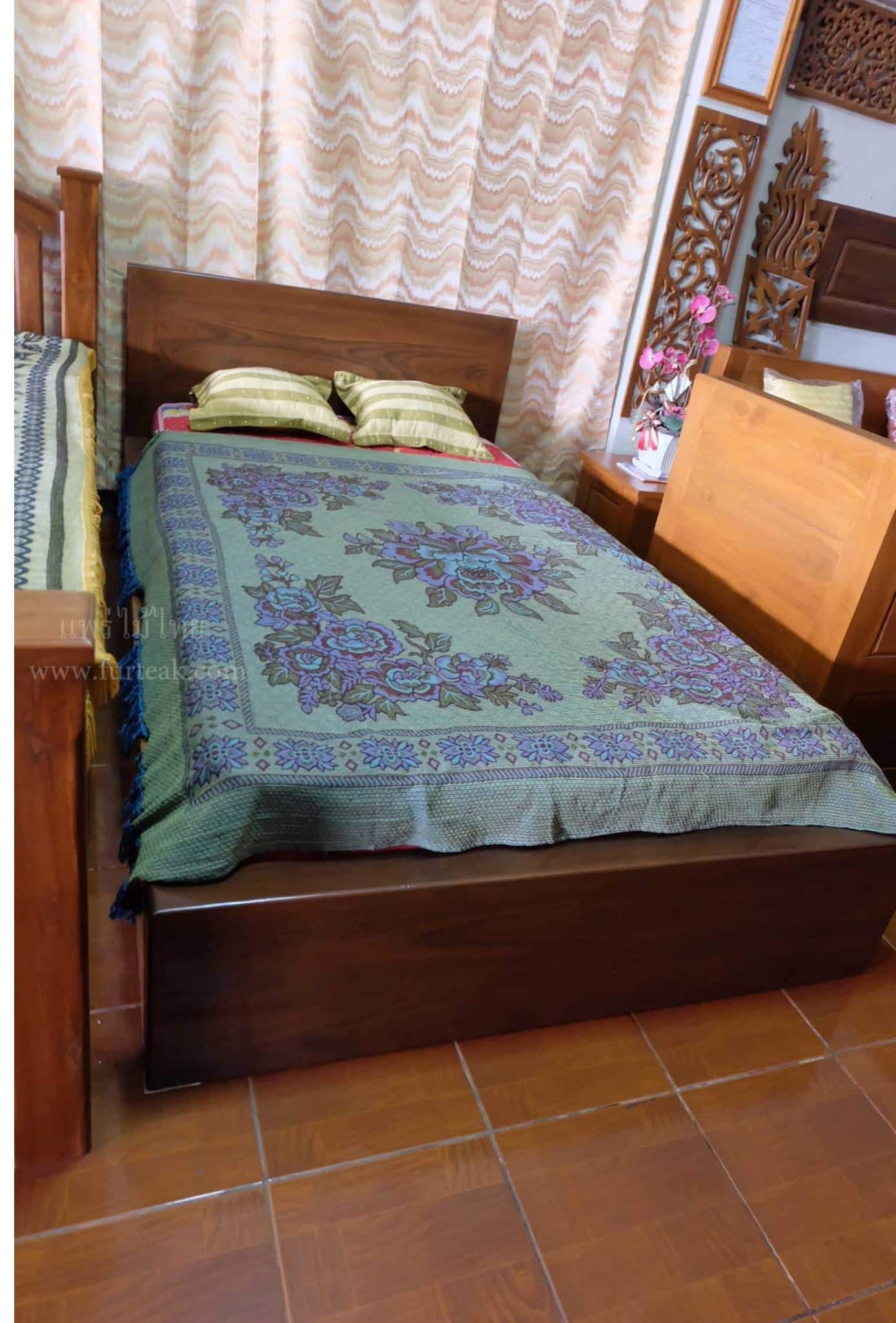 เตียงโมเดิร์นไม้สักกล่องทึบ สีสักเข้มเป็นไม้สักทองอบแห้ง ซึ่งคุณสมบัติของไม้เป็นไม้เนื้อแข็งอายุตั้งแต่ 30 ปีขึ้นไป เราเลือกใช้ไม้สักที่มีคุณภาพและใช้กระบวนการอบไม้ จึงทำให้ไม้มีการคงสภาพ ความชื้นน้อย และโอกาสไม้หดตัวน้อยมาก