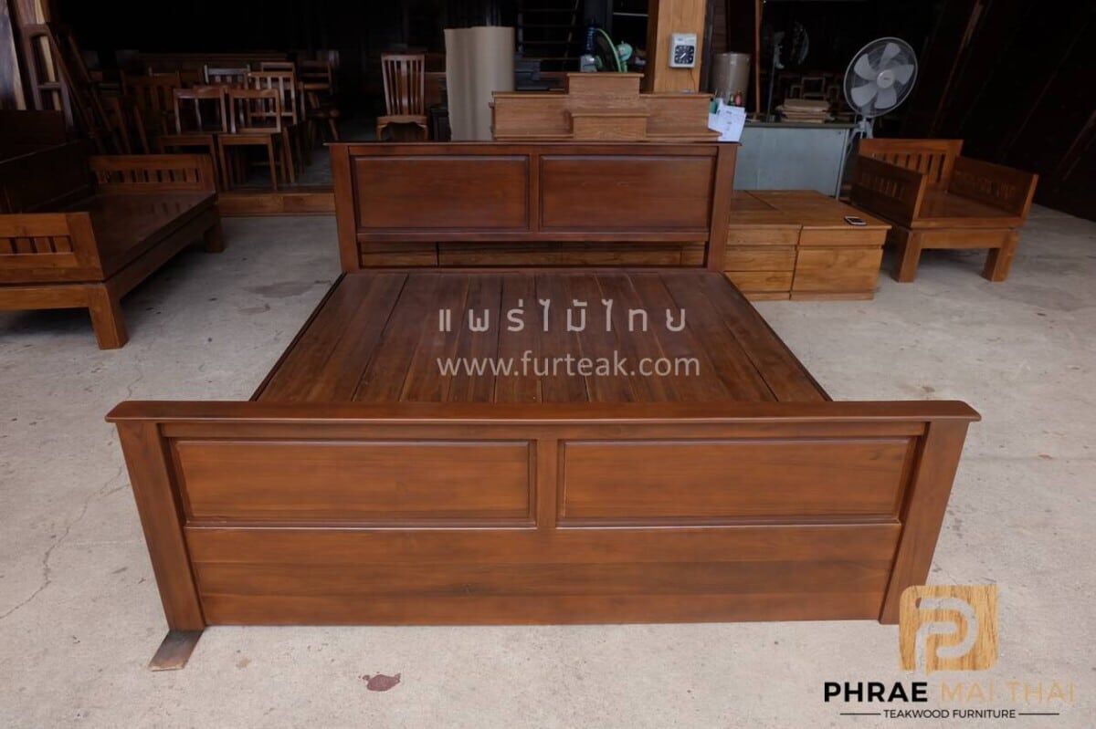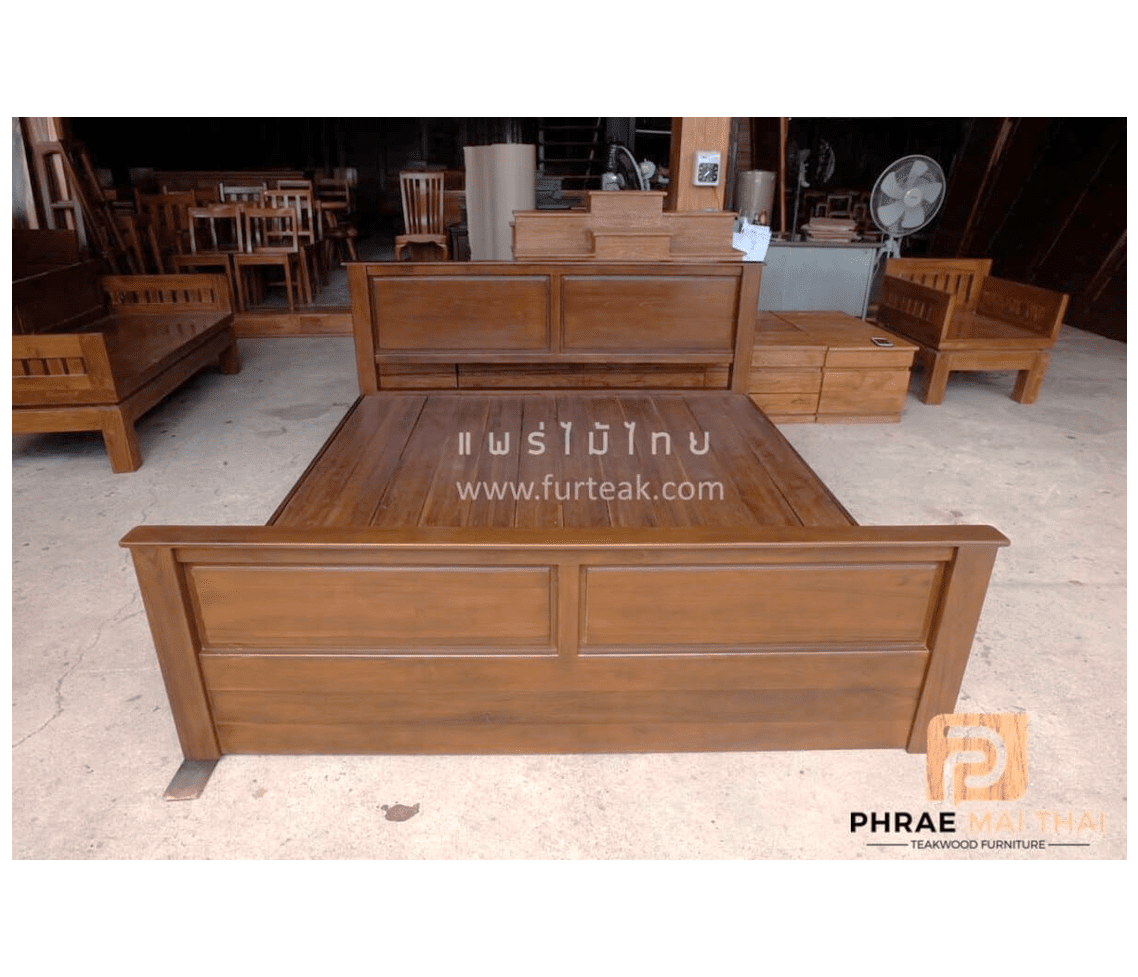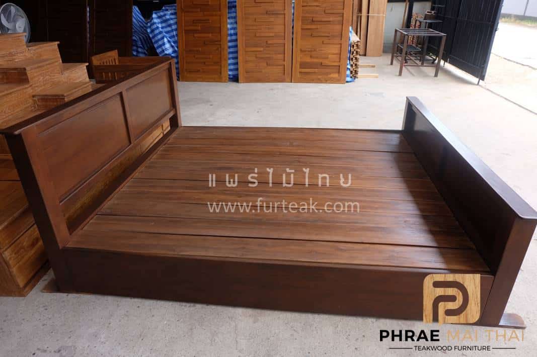 เตียงทึบ 2 ฟักตรงสีสักเข้มเป็นไม้สักทองอบแห้ง พื้นเตียงสูง 30 ซม. หัวเตียงสูง 90 ซม. และท้ายเตียงสูง 55 ซม.หนา 4 นิ้ว สามารถถอดประกอบได้ คุณสมบัติของไม้เป็นไม้เนื้อแข็งอายุตั้งแต่ 30 ปีขึ้นไป เราเลือกใช้ไม้สักที่มีคุณภาพและใช้กระบวนการอบไม้จึงทำให้ไม้มีการคงสภาพ ความชื้นน้อยและโอกาสไม้หดตัวน้อยมาก