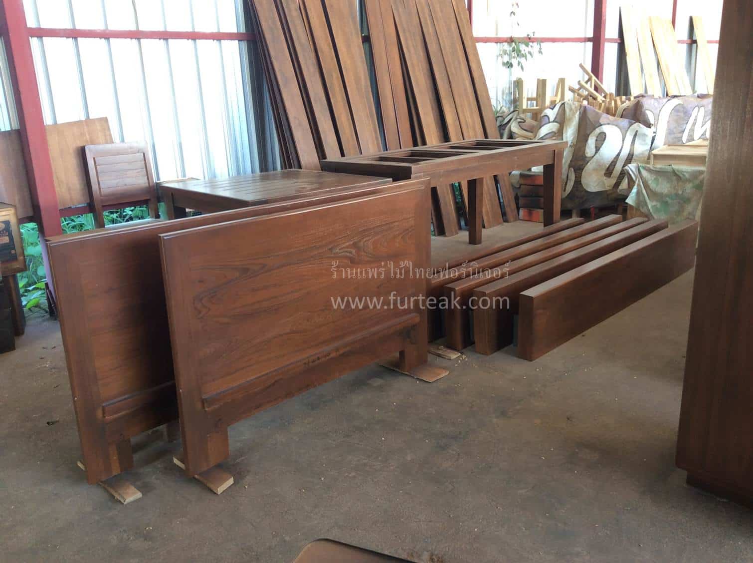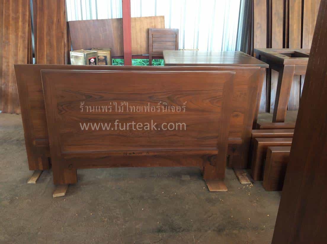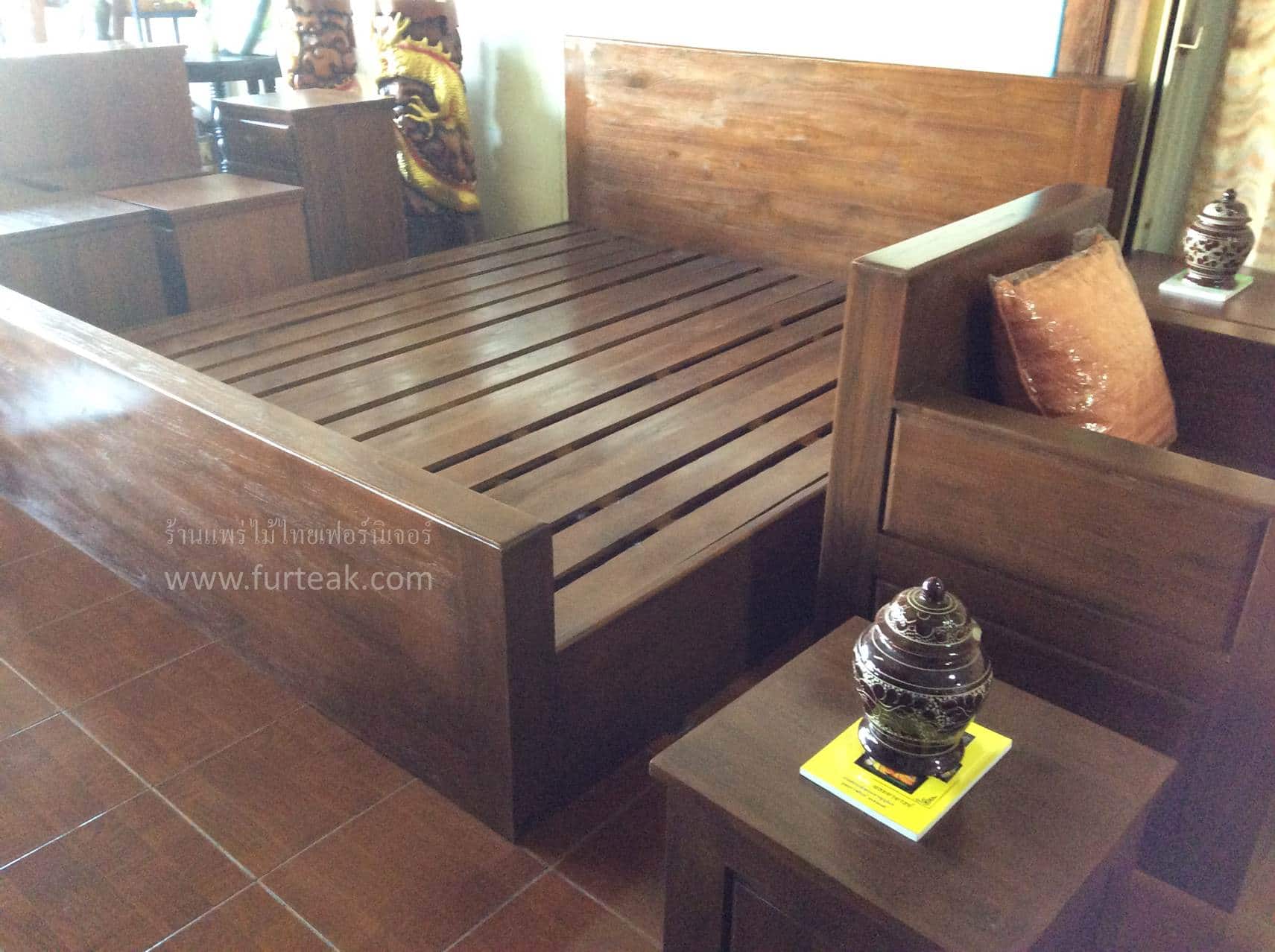 เตียงโมเดิร์นเรียบขาทึบ สีสักเข้ม เป็นไม้สักทองอบแห้ง