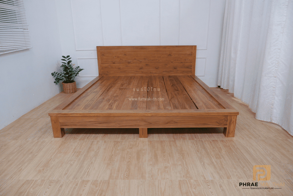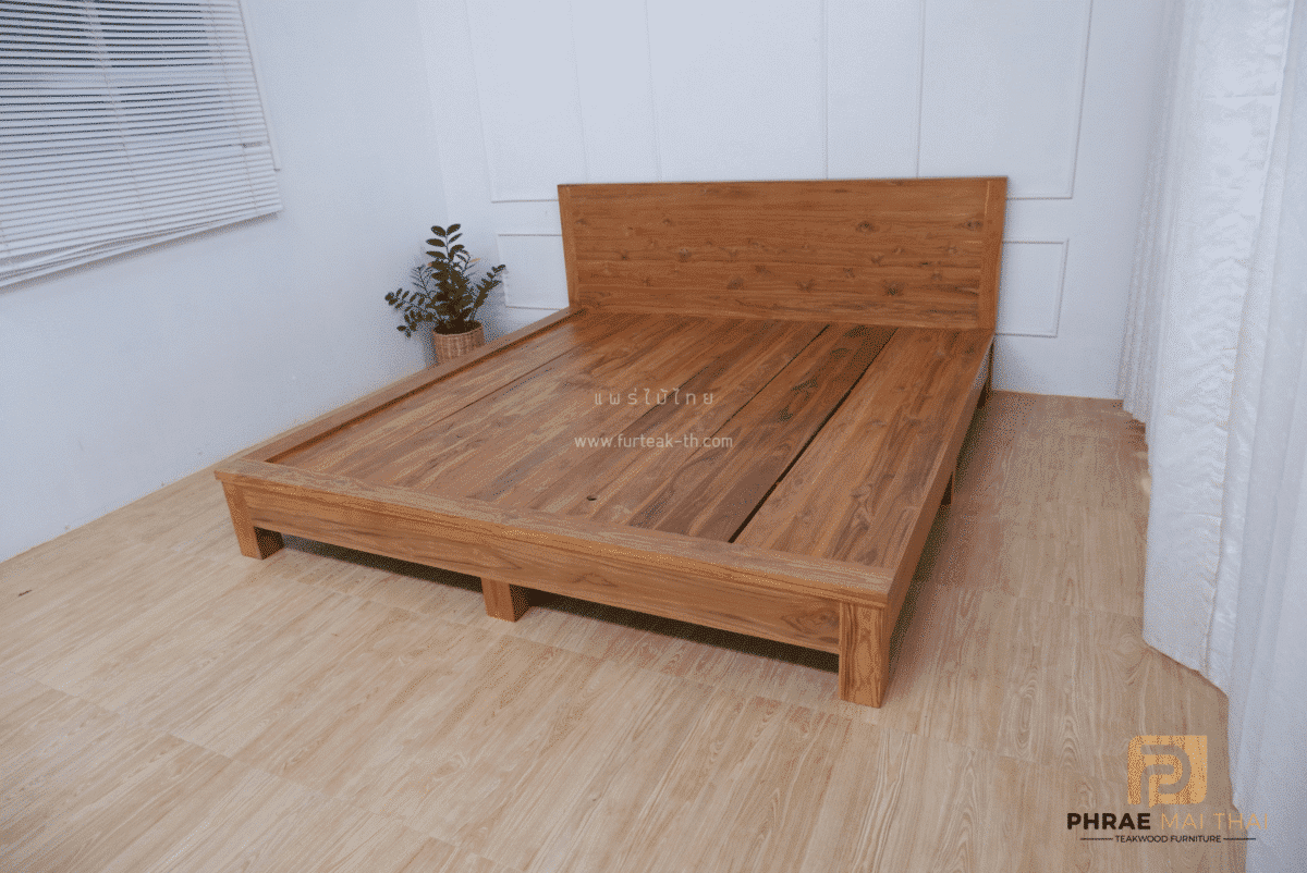 เตียงโมเดิร์น ซึ่งคุณสมบัติของไม้เป็นไม้เนื้อแข็งอายุตั้งแต่ 30 ปีขึ้นไป เราเลือกใช้ไม้สักที่มีคุณภาพและใช้กระบวนการอบไม้ จึงทำให้ไม้มีการคงสภาพ ความชื้นน้อย และโอกาสไม้หดตัวน้อยมาก