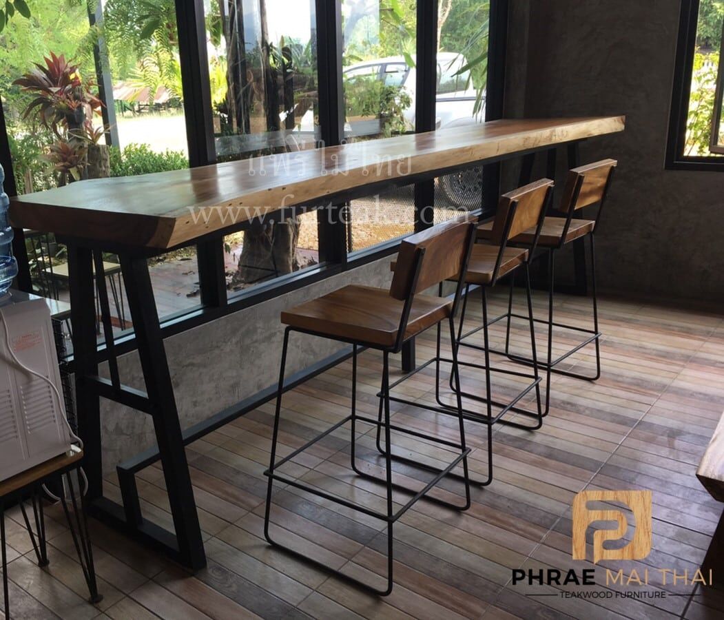 ชุดโต๊ะบาร์โมเดิร์น STYLE LOFT ไม้จามจุรี (ไม้แผ่นเดียว) สีธรรมชาติ ประกอบไปด้วย โต๊ะ 1 ตัว เก้าอี้ขาเหล็ก 3 ตัว เราเลือกใช้ไม้ที่มีคุณภาพและใช้กระบวนการอบไม้ จึงทำให้ไม้มีการคงสภาพ ความชื้นน้อย ไม้ไม่หด หรือ แตกงอ