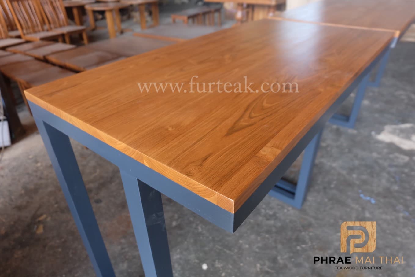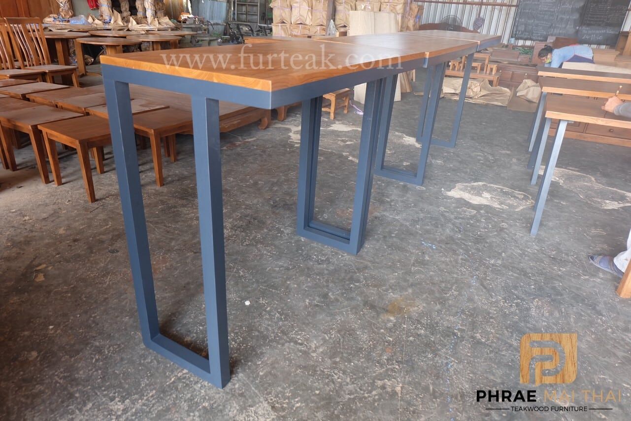 โต๊ะบาร์โมเดิร์น สีสักทอง ผสมผสานแนว Modern loft ขาไม้สักทาสีเทาเข้ม
