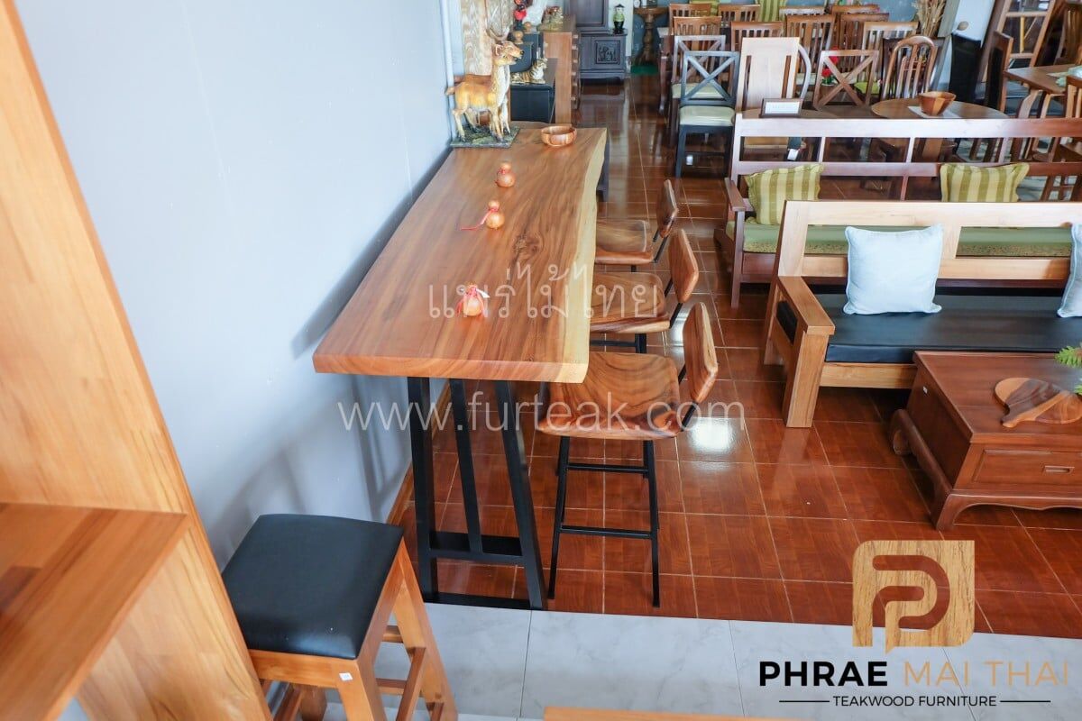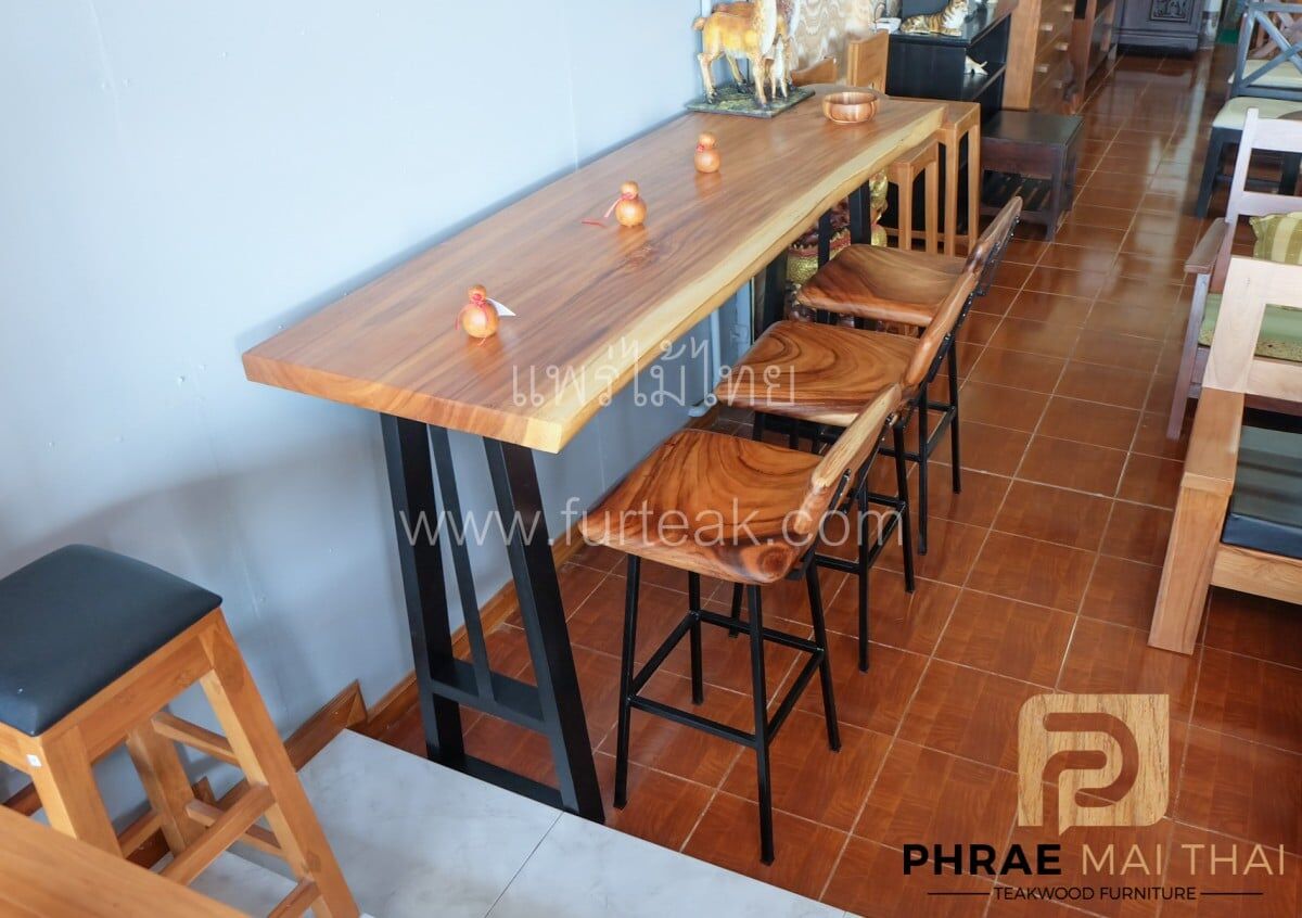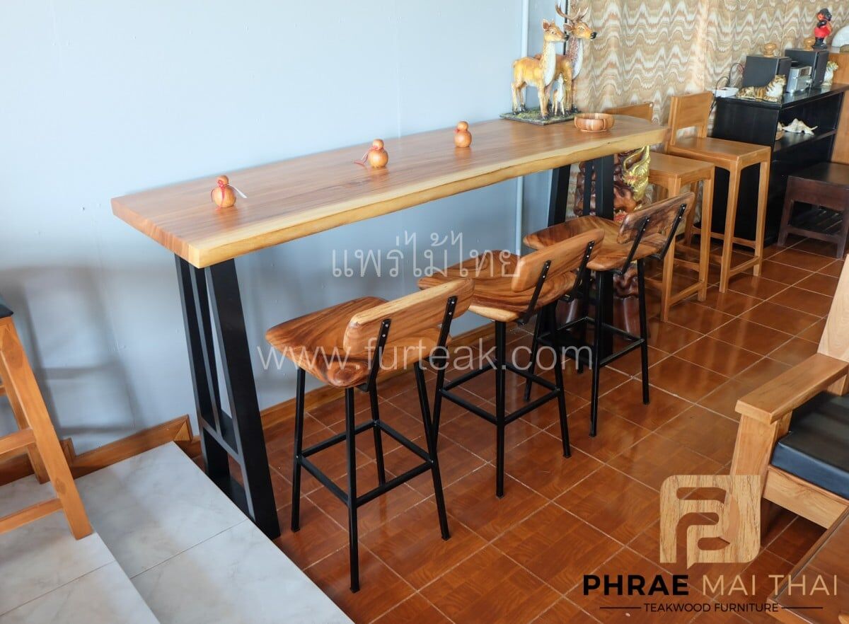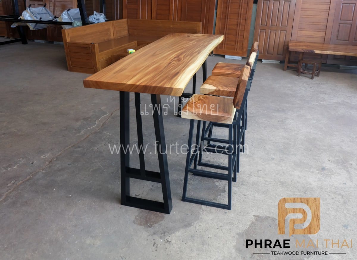ชุดโต๊ะบาร์โมเดิร์น STYLE LOFT ไม้จามจุรี (ไม้แผ่นเดียว) สีธรรมชาติ ประกอบไปด้วย โต๊ะ 1 ตัว เก้าอี้ขาเหล็ก 3 ตัว เราเลือกใช้ไม้ที่มีคุณภาพและใช้กระบวนการอบไม้ จึงทำให้ไม้มีการคงสภาพ ความชื้นน้อย และโอกาสไม้หดตัวน้อยมาก