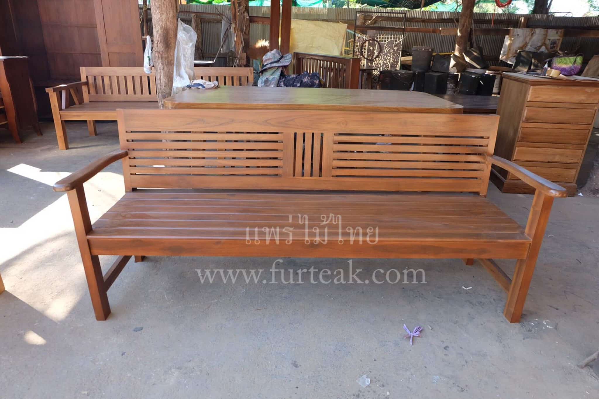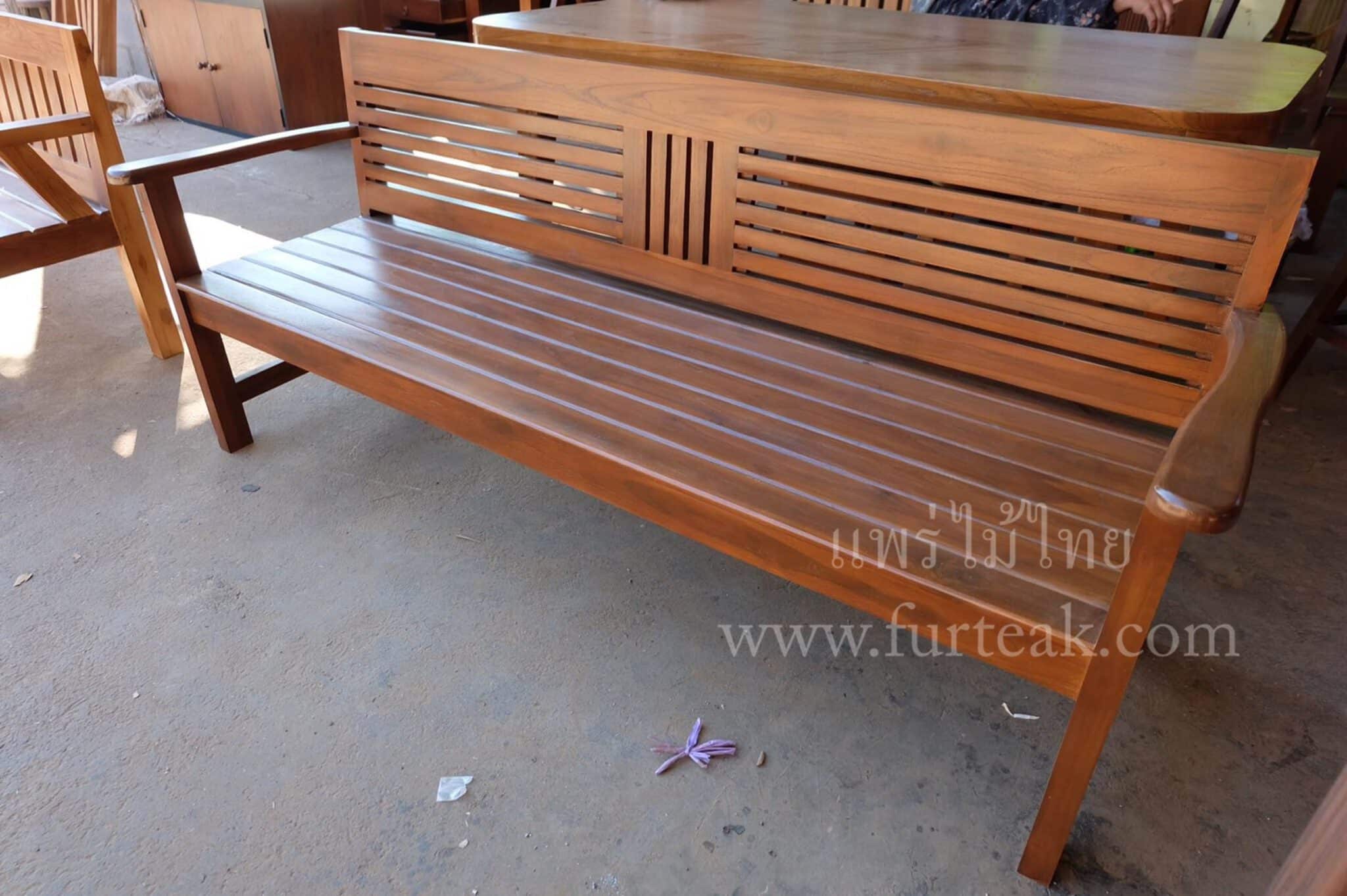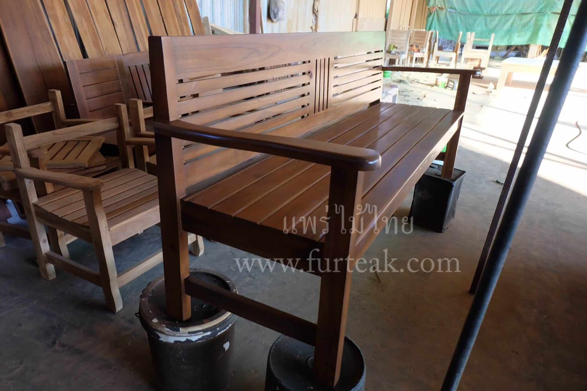 ม้านั่งยาวซี่ขวาง สีสักเข้มเป็นไม้สักทองอบแห้ง ซึ่งคุณสมบัติของไม้เป็นไม้เนื้อแข็งอายุตั้งแต่ 30 ปีขึ้นไป เราเลือกใช้ไม้สักที่มีคุณภาพและใช้กระบวนการอบไม้ จึงทำให้ไม้มีการคงสภาพ ความชื้นน้อย และโอกาสไม้หดตัวน้อยมาก