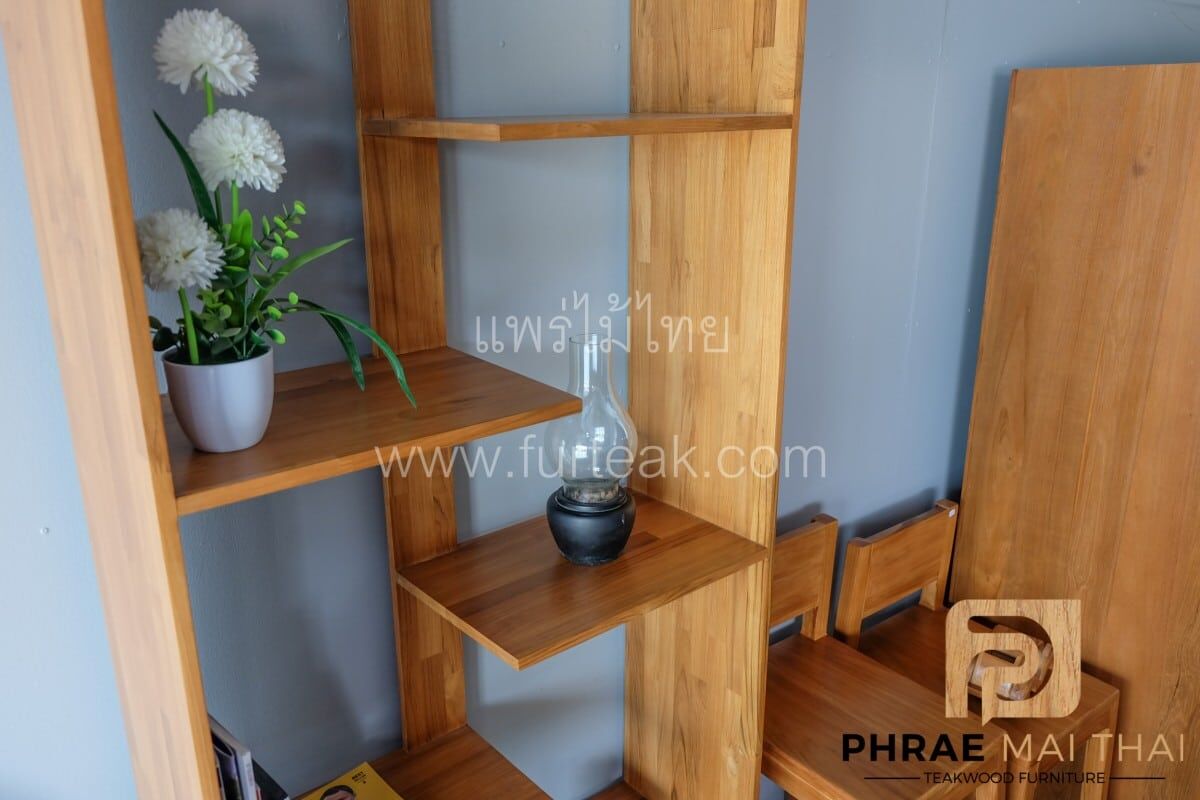 ชั้นวางหนังสือ โมเดิร์น ไม้สักประสาน สีสักทอง เป็นไม้สักทองอบแห้ง ซึ่งคุณสมบัติของไม้เป็นไม้เนื้อแข็งอายุตั้งแต่ 30 ปีขึ้นไป เราเลือกใช้ไม้สักที่มีคุณภาพและใช้กระบวนการอบไม้ จึงทำให้ไม้มีการคงสภาพ ความชื้นน้อย โอกาสในการหด หรือ แตกงอของไม้น้อยมาก