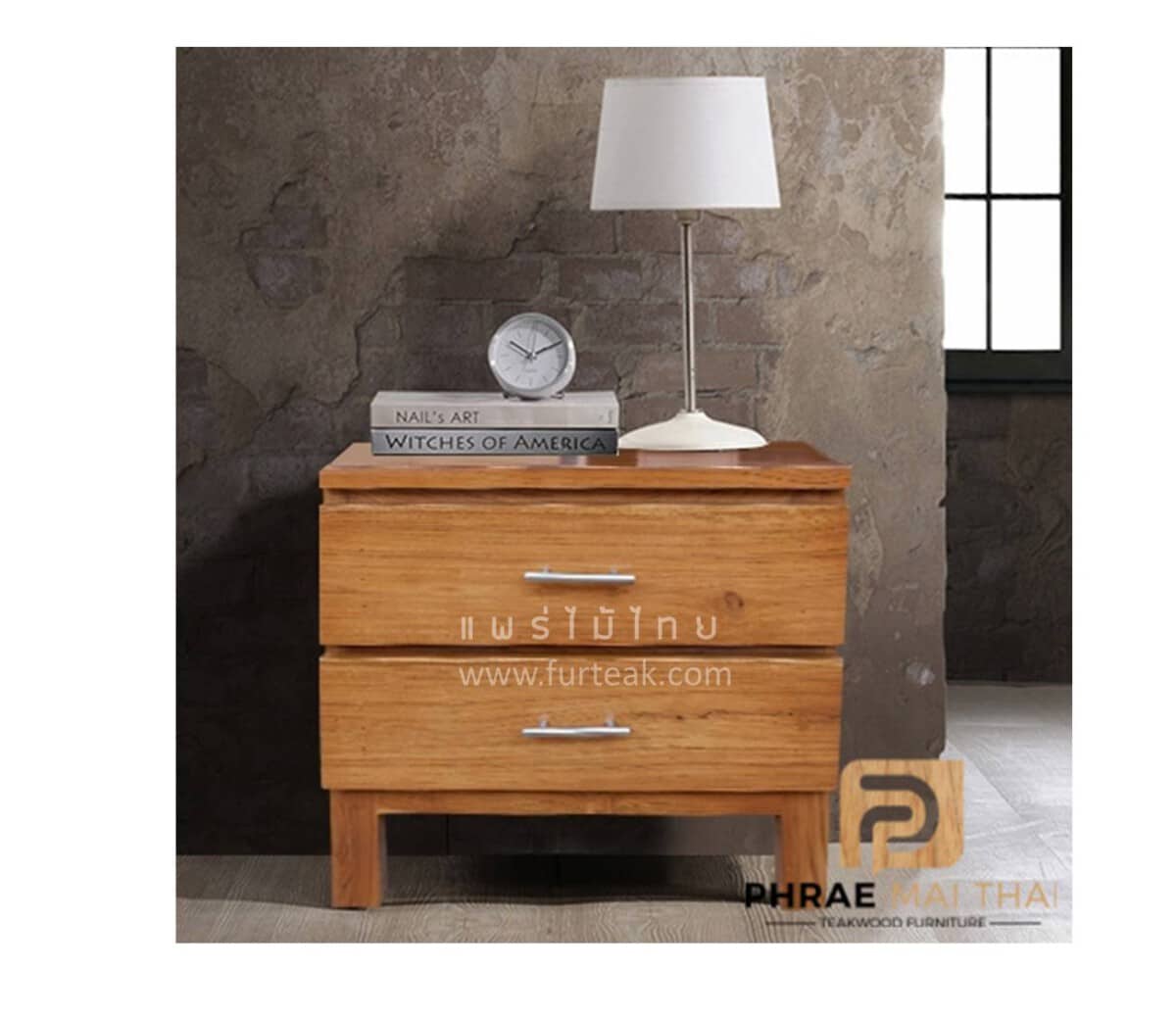 ตู้หัวเตียงโมเดิร์น ประกอบไปด้วย 2 ลิ้นชัก มือจับด้ามอะลูมิเนียม สีสักทอง เราเลือกใช้ไม้สักที่มีคุณภาพและใช้กระบวนการอบไม้ จึงทำให้ไม้มีการคงสภาพ ความชื้นน้อย และโอกาสไม้หดตัวน้อยมาก