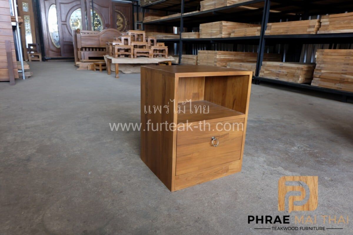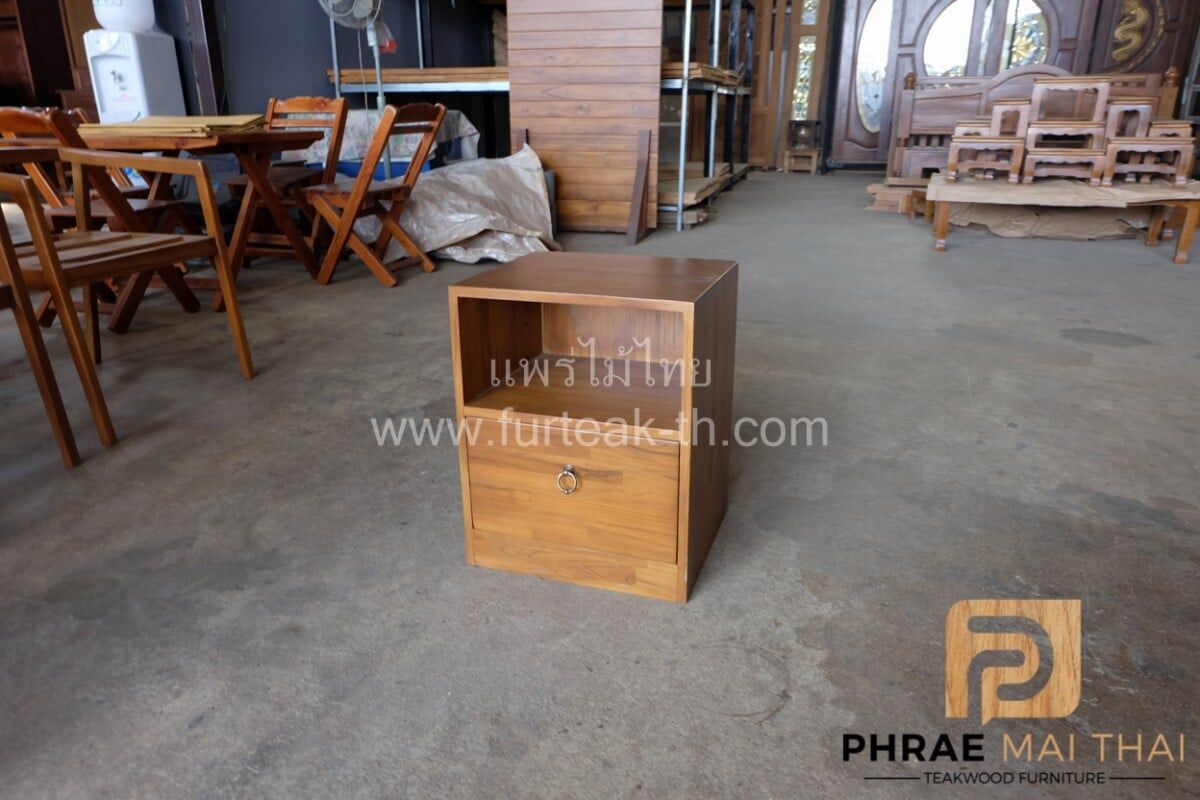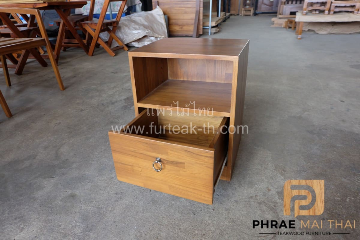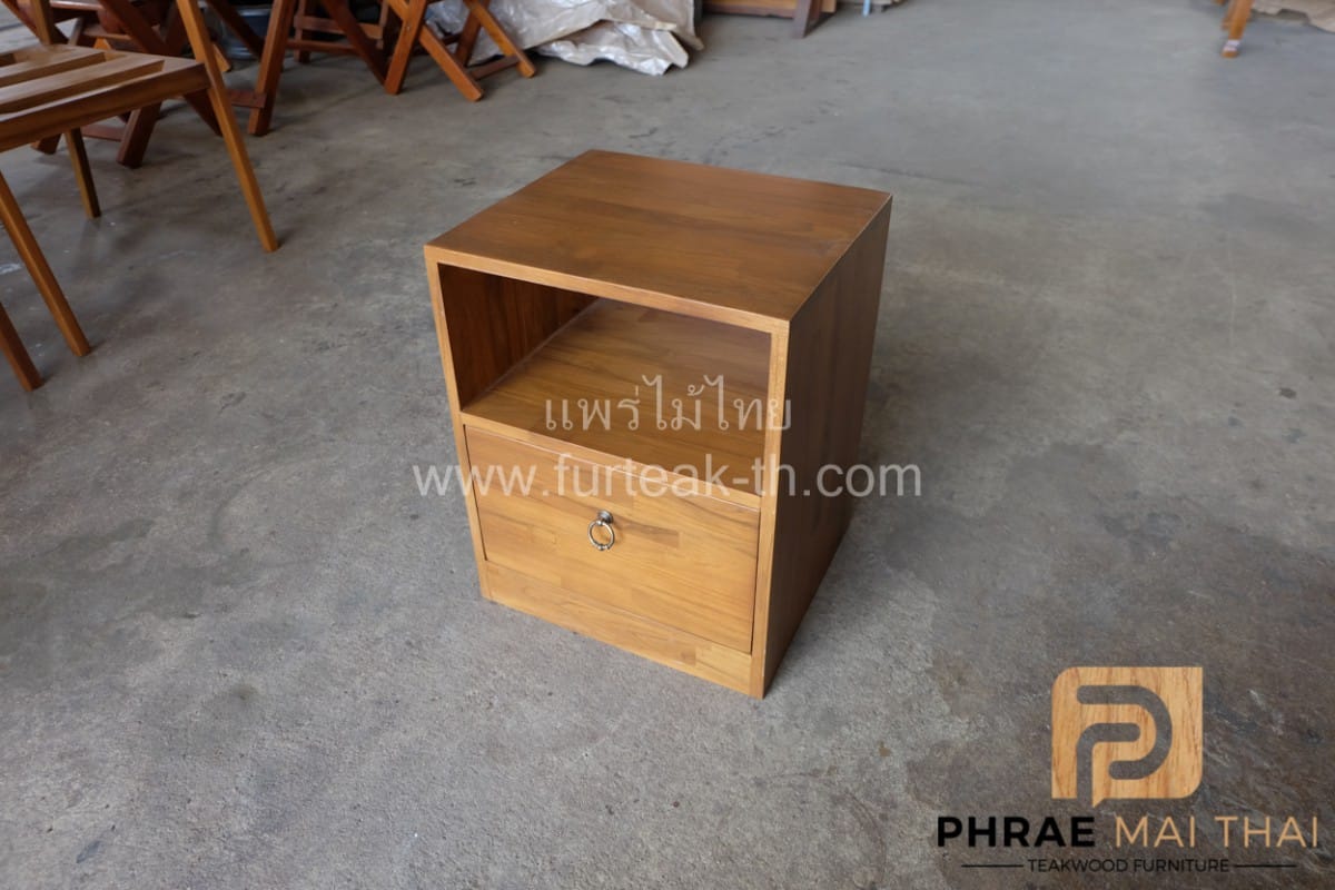 ตู้หัวเตียง 1 ลิ้นชัก สีสักทอง ไม้สักประสานลายปาเก้โมเดิร์น