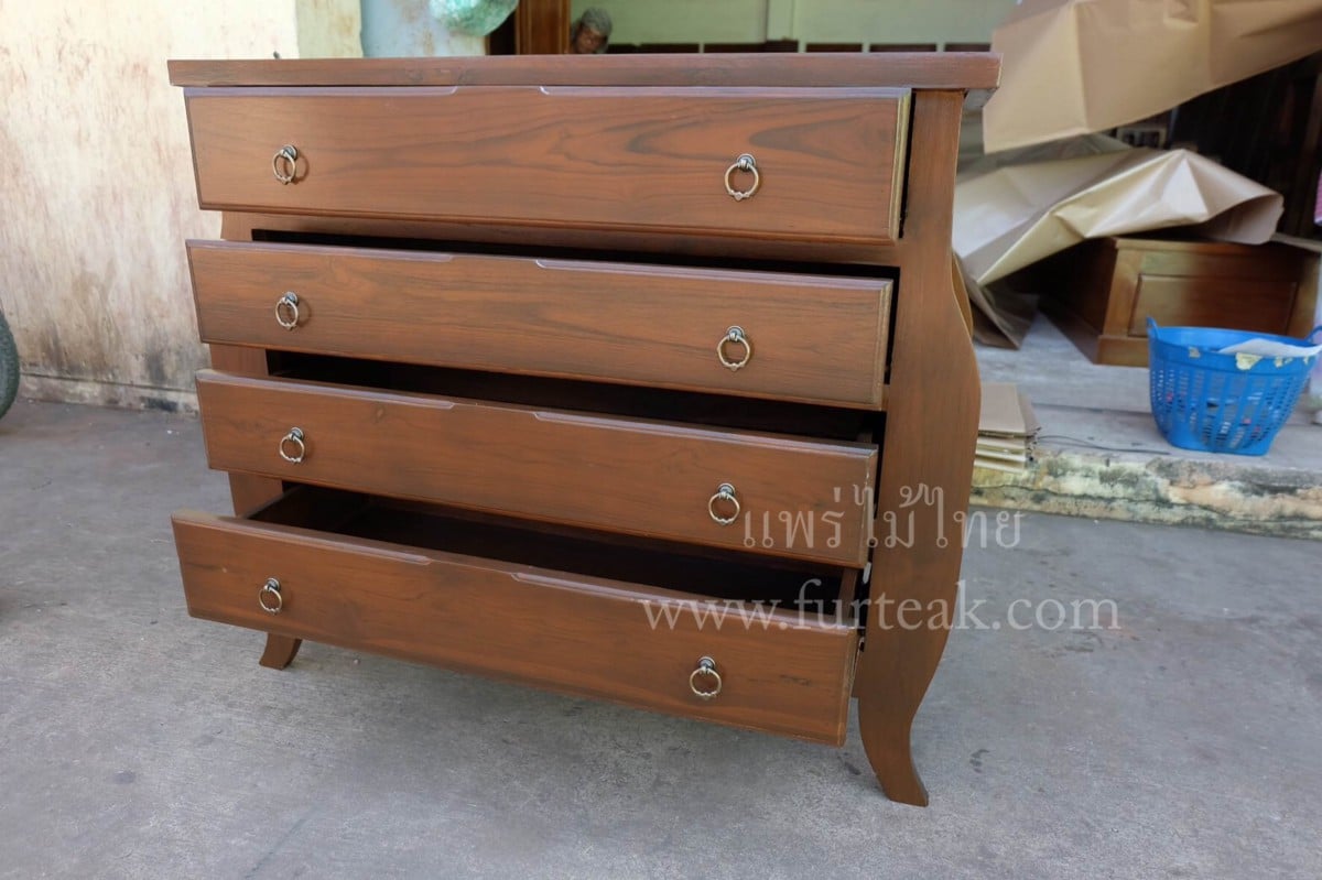 ตู้วางของ/ ตู้อเนกประสงค์ 4 ลิ้นชัก สีสักเข้มเป็นไม้สักทองอบแห้ง ซึ่งคุณสมบัติของไม้เป็นไม้เนื้อแข็งอายุตั้งแต่ 30 ปีขึ้นไป เราเลือกใช้ไม้สักที่มีคุณภาพและใช้กระบวนการอบไม้ จึงทำให้ไม้มีการคงสภาพ ความชื้นน้อย และโอกาสไม้หดตัวน้อยมาก