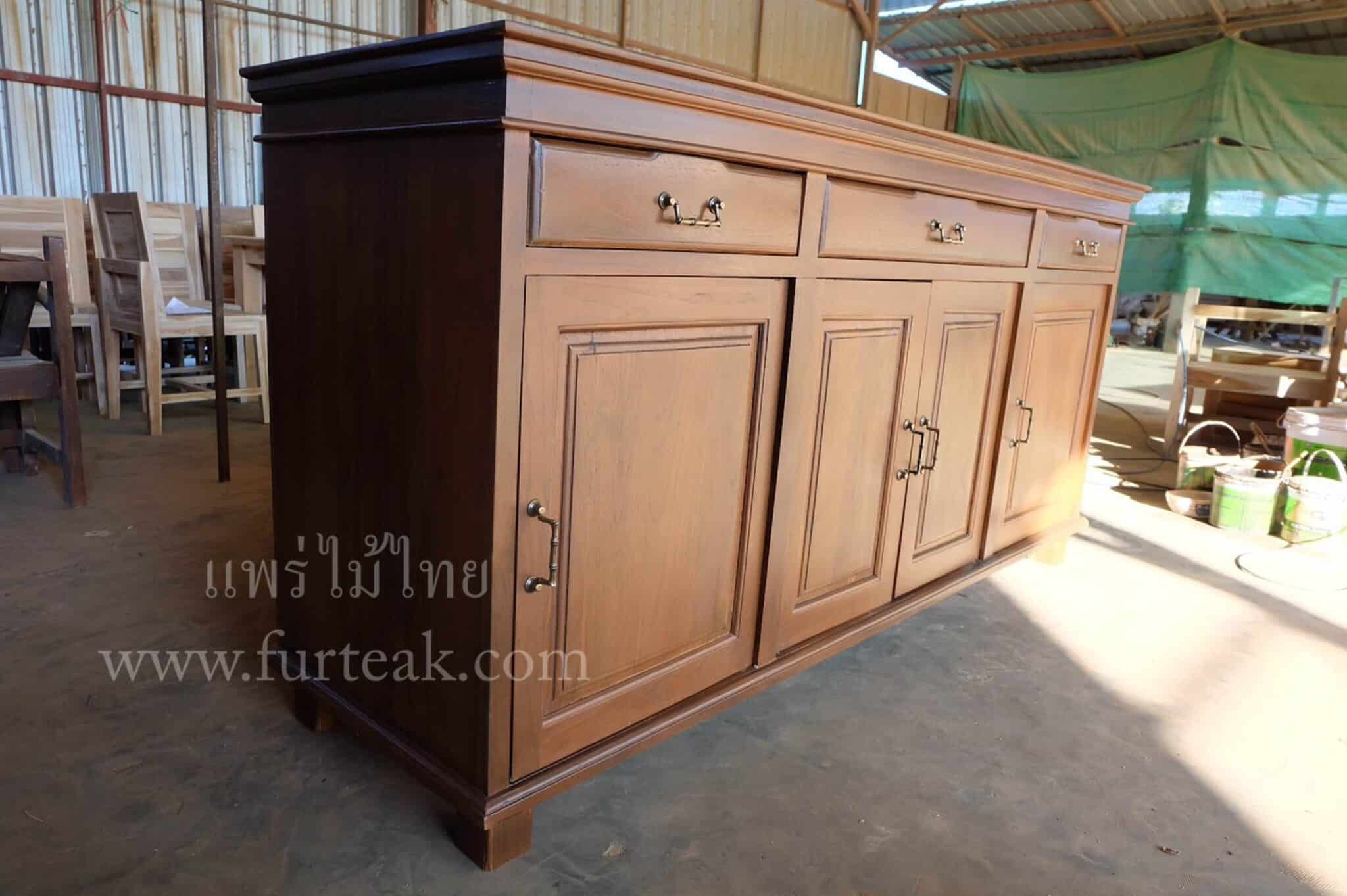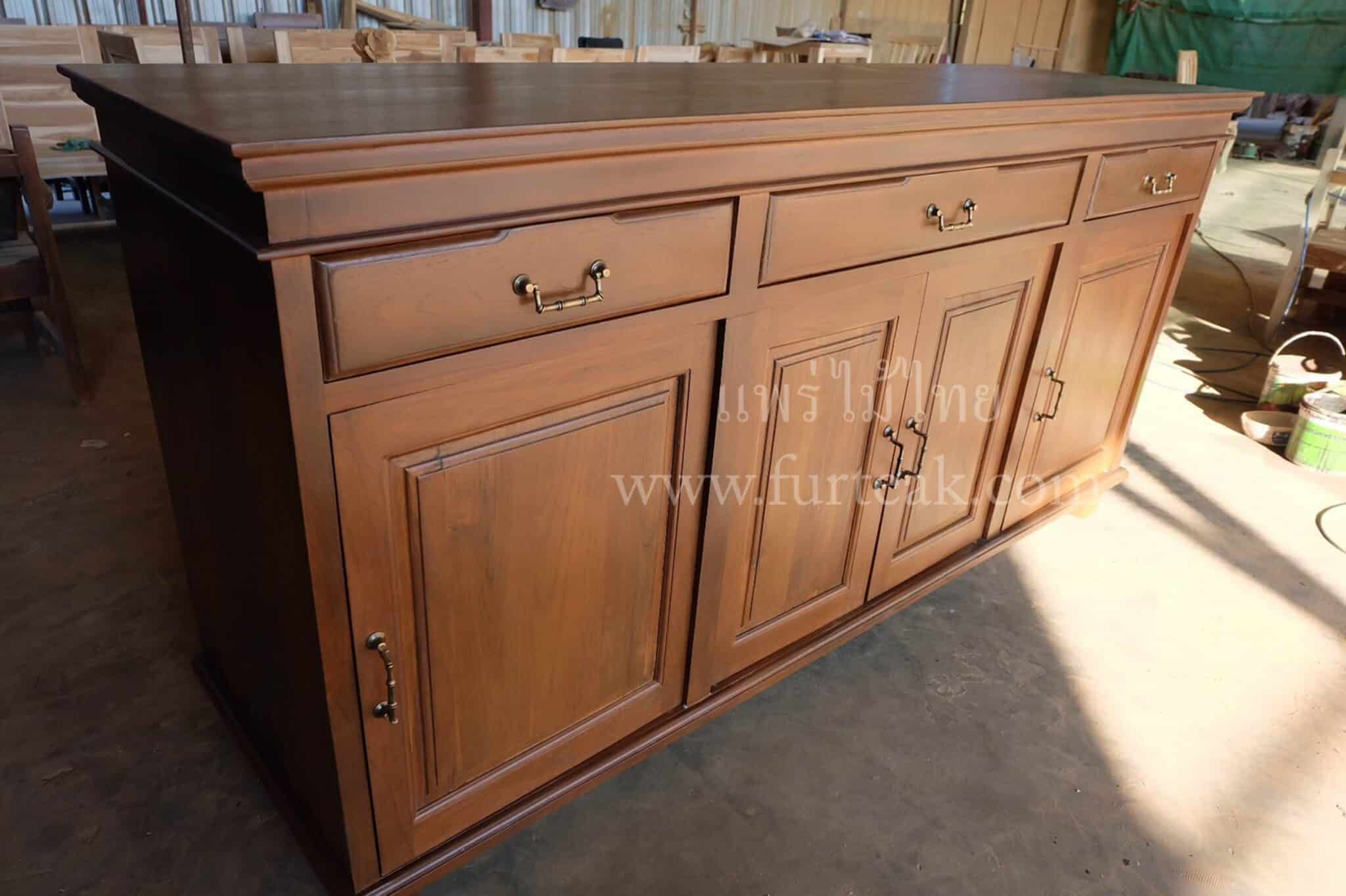 ตู้อเนกประสงค์ไม้สัก / เคาน์เตอร์ สีสักเข้ม ซึ่งคุณสมบัติของไม้เป็นไม้เนื้อแข็งอายุตั้งแต่ 30 ปีขึ้นไป เราเลือกใช้ไม้สักที่มีคุณภาพและใช้กระบวนการอบไม้ จึงทำให้ไม้มีการคงสภาพ ความชื้นน้อย และโอกาสไม้หดตัวน้อยมาก