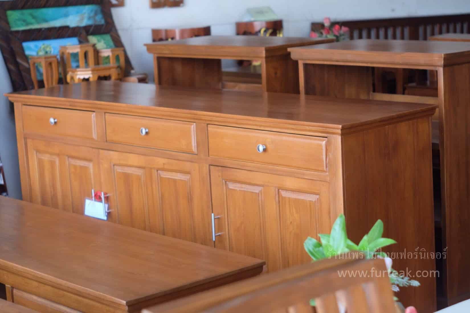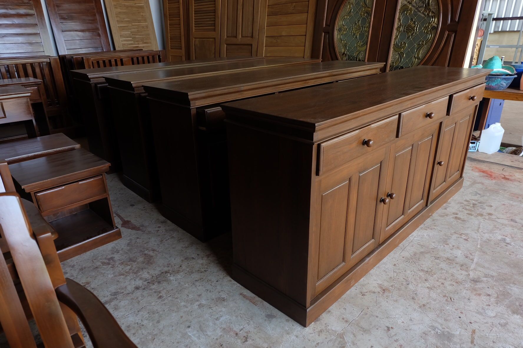 ตู้เคาร์เตอร์ในครัว สีสักเข้มเป็นไม้สักทองอบแห้ง ประกอบไปด้วย 3 ลิ้นชักด้านบน 3 บานเปิดปิดด้านล่าง ซึ่งคุณสมบัติของไม้เป็นไม้เนื้อแข็งอายุตั้งแต่ 30 ปีขึ้นไป เราเลือกใช้ไม้สักที่มีคุณภาพและใช้กระบวนการอบไม้ จึงทำให้ไม้มีการคงสภาพ ความชื้นน้อย และโอกาสไม้หดตัวน้อยมาก