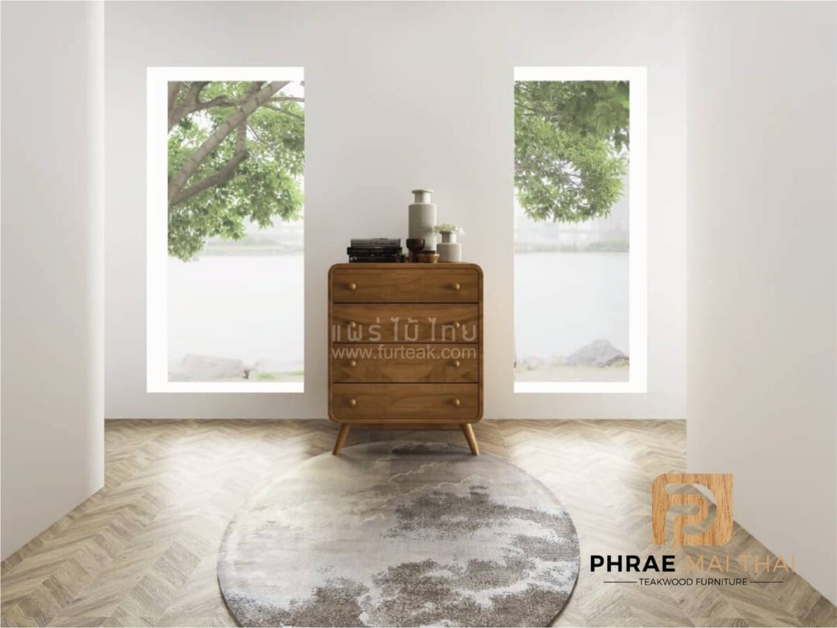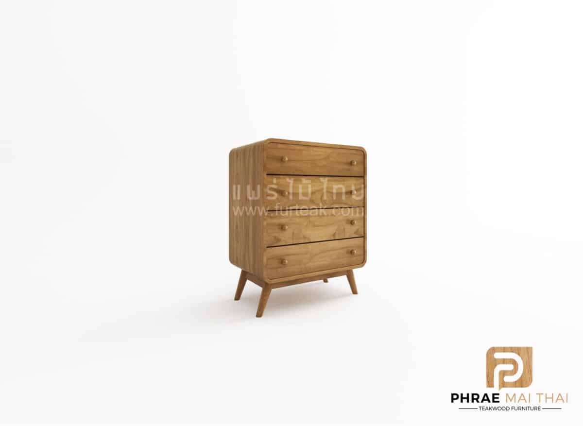 ตู้ เก็บของ 4 ลิ้นชัก ขาลอย สไตล์มินิมอล  สีสักทอง เป็นไม้สักทองอบแห้ง รูปทรงทันสมัย เหมาะสำหรับลูกค้าที่ต้องการตู้เก็บของ หรือใส่เอกสารต่างๆ  ซึ่งคุณสมบัติของไม้เป็นไม้เนื้อแข็งอายุตั้งแต่ 30-50 ปีขึ้นไป เราเลือกใช้ไม้สักที่มีคุณภาพและใช้กระบวนการอบไม้ จึงทำให้ไม้มีการคงสภาพ ความชื้นน้อย และโอกาสไม้หดตัวน้อยมาก