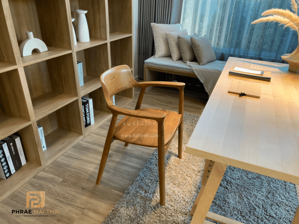 เก้าอี้ฮิโรชิม่า พร้อมที่วางแขนเป็นไม้สักทองอบแห้ง ซึ่งคุณสมบัติของไม้เป็นไม้เนื้อแข็งอายุตั้งแต่ 30 ปีขึ้นไป เราเลือกใช้ไม้สักที่มีคุณภาพและใช้กระบวนการอบไม้ จึงทำให้ไม้มีการคงสภาพ ความชื้นน้อย โอกาสไม้หด ตัวหรือแตกน้อยมาก