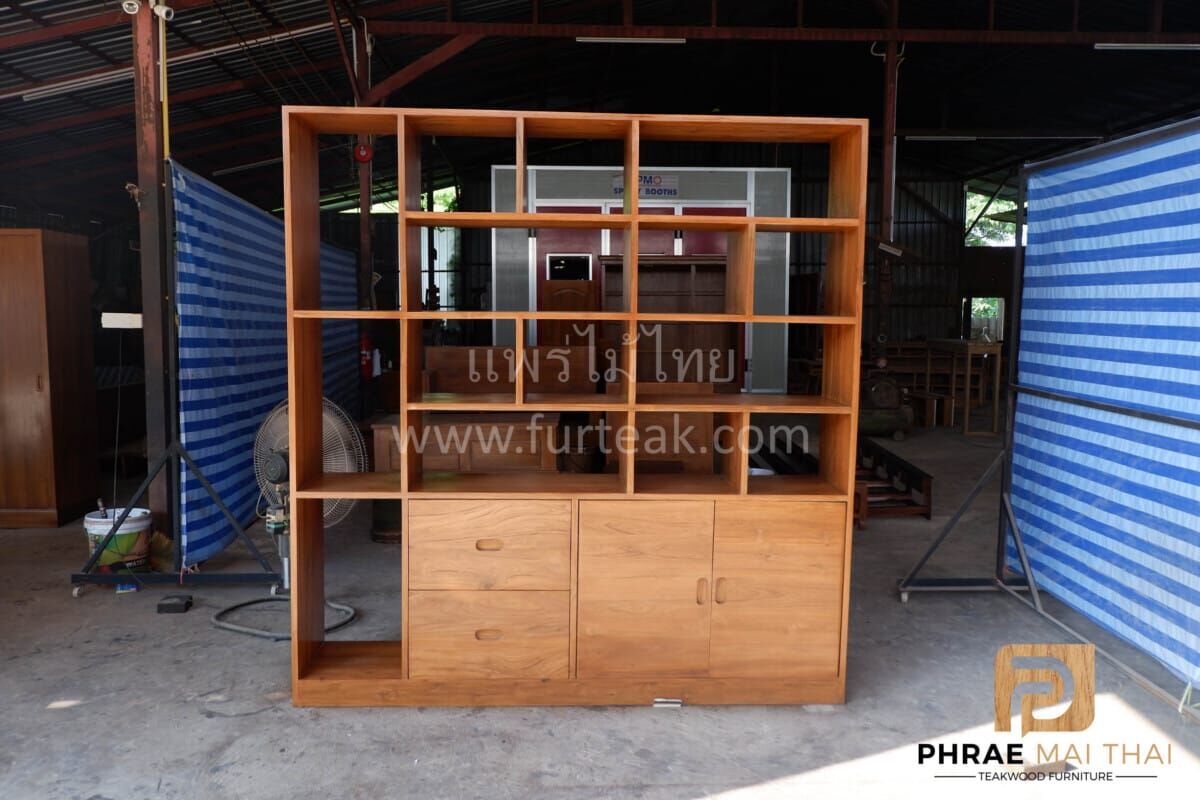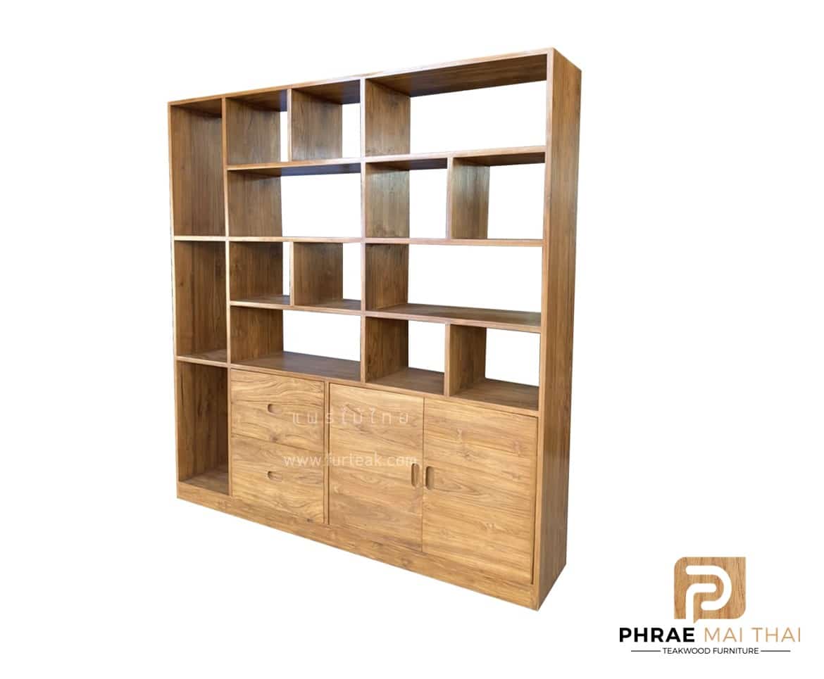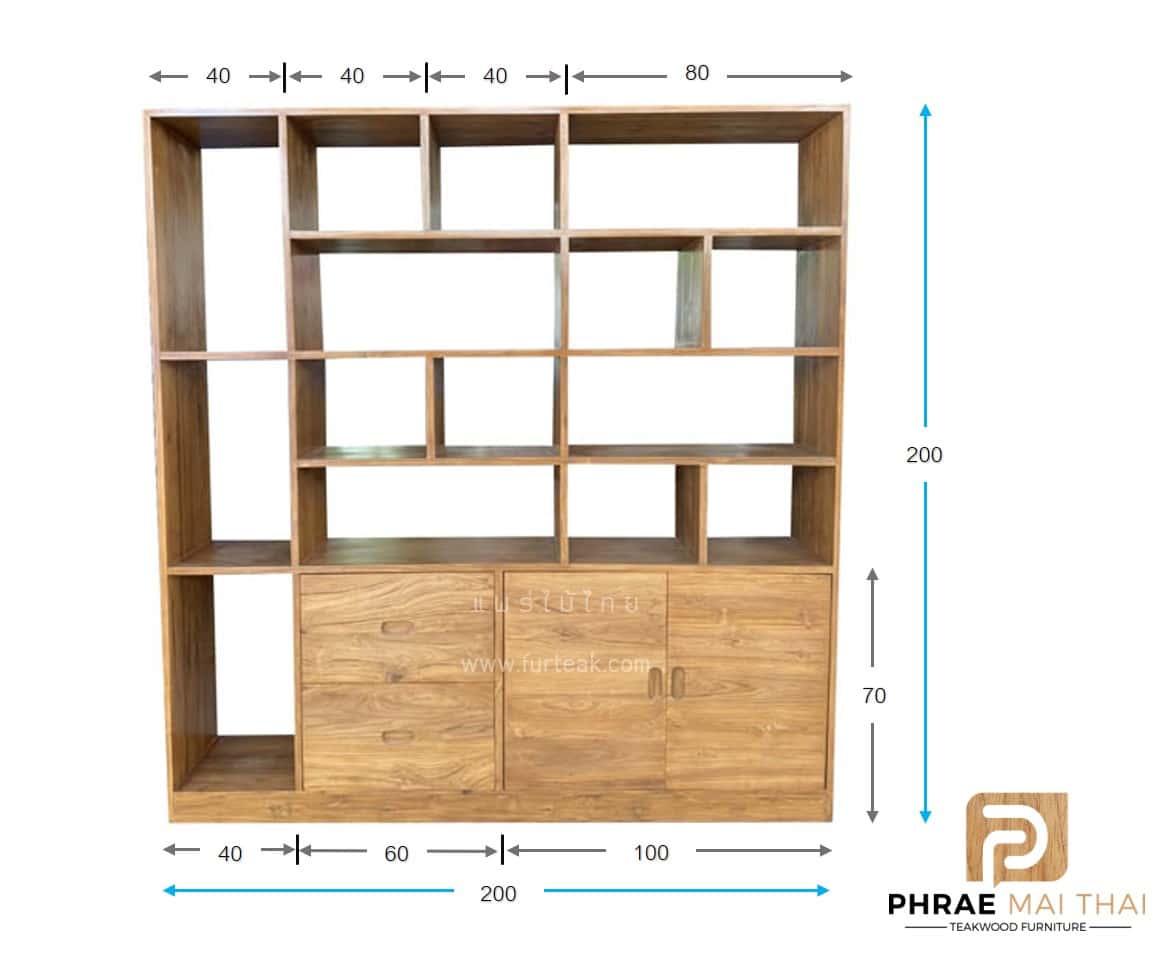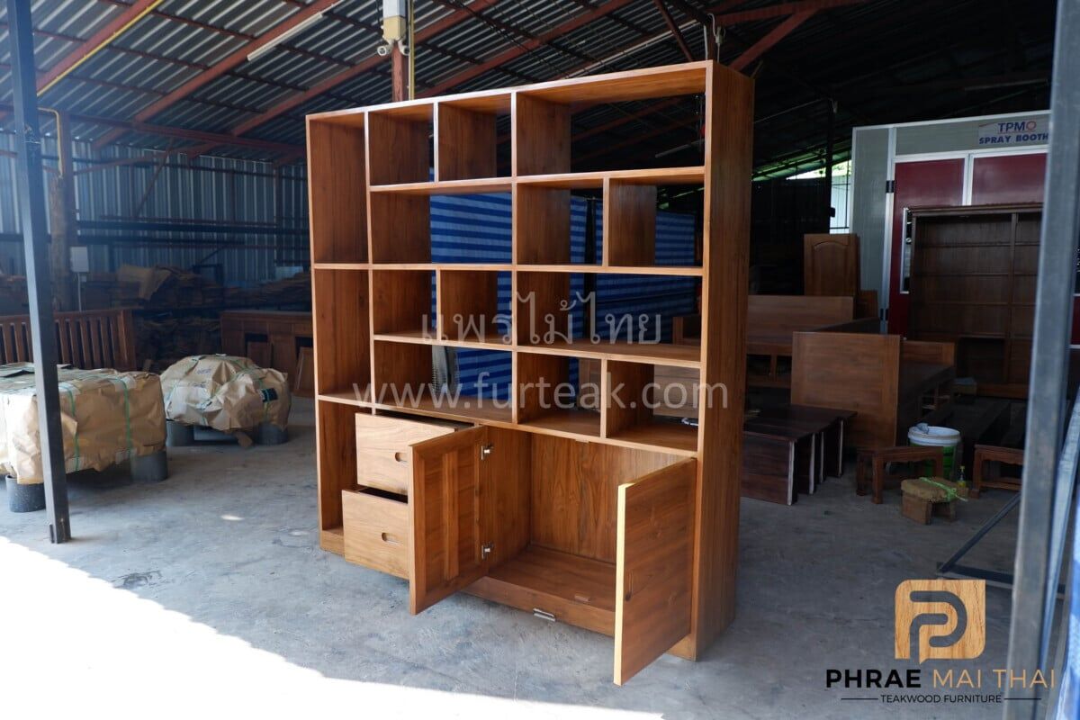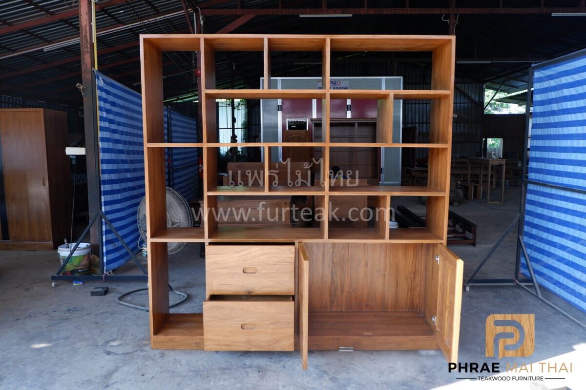 ตู้โชว์ ตู้หนังสือไม้สัก มี 2 ลิ้นชัก พร้อมช่องเก็บของบานปิด-เปิด สีสักทอง ราเลือกใช้ไม้สักคัดเกรดที่มีคุณภาพ