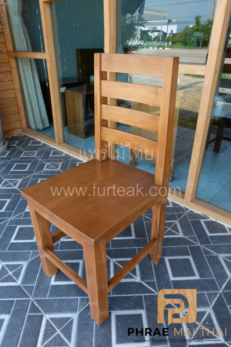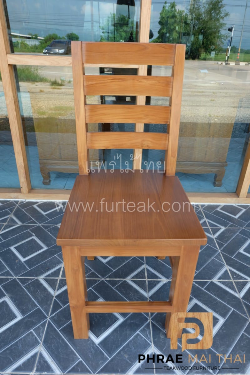 เก้าอี้ไม้สัก คาดแนวขวาง เป็นไม้สักทองอบแห้ง ซึ่งคุณสมบัติของไม้เป็นไม้เนื้อแข็งอายุตั้งแต่ 30 ปีขึ้นไป เราเลือกใช้ไม้สักที่มีคุณภาพและใช้กระบวนการอบไม้ จึงทำให้ไม้มีการคงสภาพ และโอกาสไม้หดตัวน้อยมาก