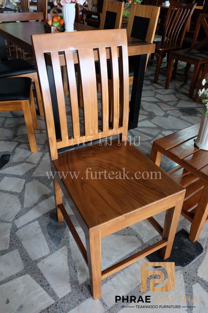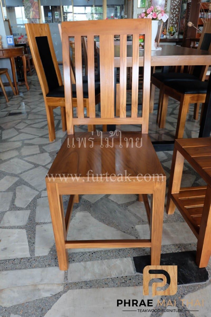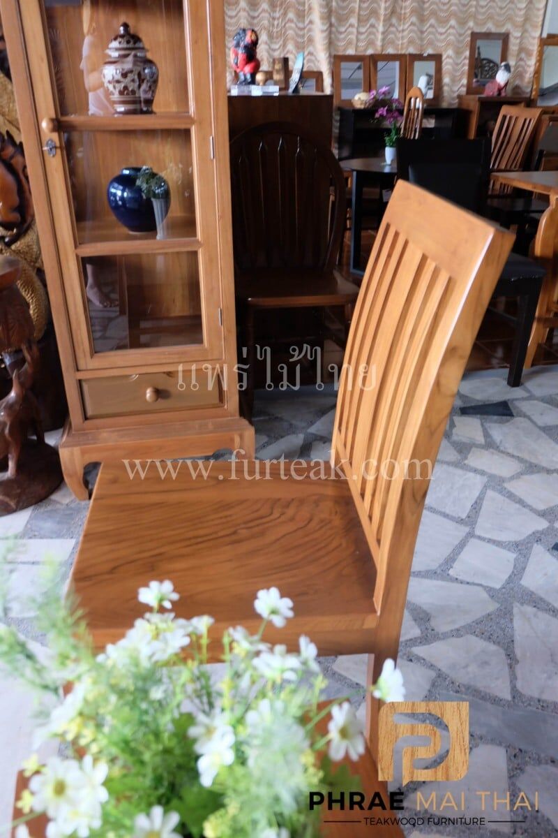 เก้าอี้ 5 ซี่ แอ่น เป็นไม้สักทองอบแห้ง ซึ่งคุณสมบัติของไม้เป็นไม้เนื้อแข็งอายุตั้งแต่ 30 ปีขึ้นไป เราเลือกใช้ไม้สักที่มีคุณภาพและใช้กระบวนการอบไม้ จึงทำให้ไม้มีการคงสภาพ ความชื้นน้อย และโอกาสหดตัวน้อยมาก