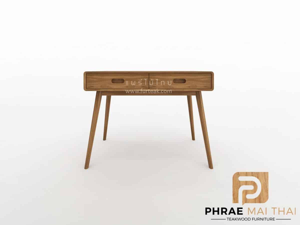 โต๊ะทำงาน 2 ลิ้นชัก มินิมอล สไตล์ทันสมัย เรียบแต่ดูหรูมีราคา เป็นไม้สักทองทั้งหมด สีสักทองเป็นไม้สักทองอบแห้ง ซึ่งคุณสมบัติของไม้เป็นไม้เนื้อแข็งอายุตั้งแต่ 30 ปีขึ้นไป เราเลือกใช้ไม้สักที่มีคุณภาพและใช้กระบวนการอบไม้ จึงทำให้ไม้มีความชื้นน้อย และโอกาสหดตัวน้อย