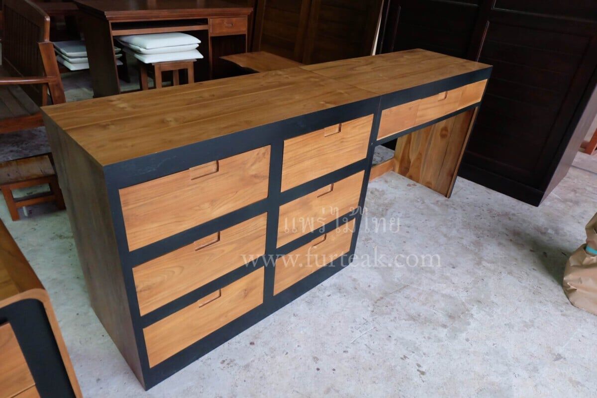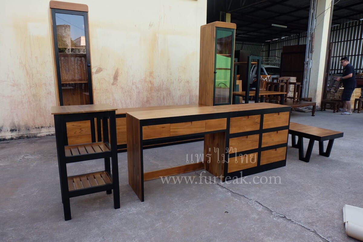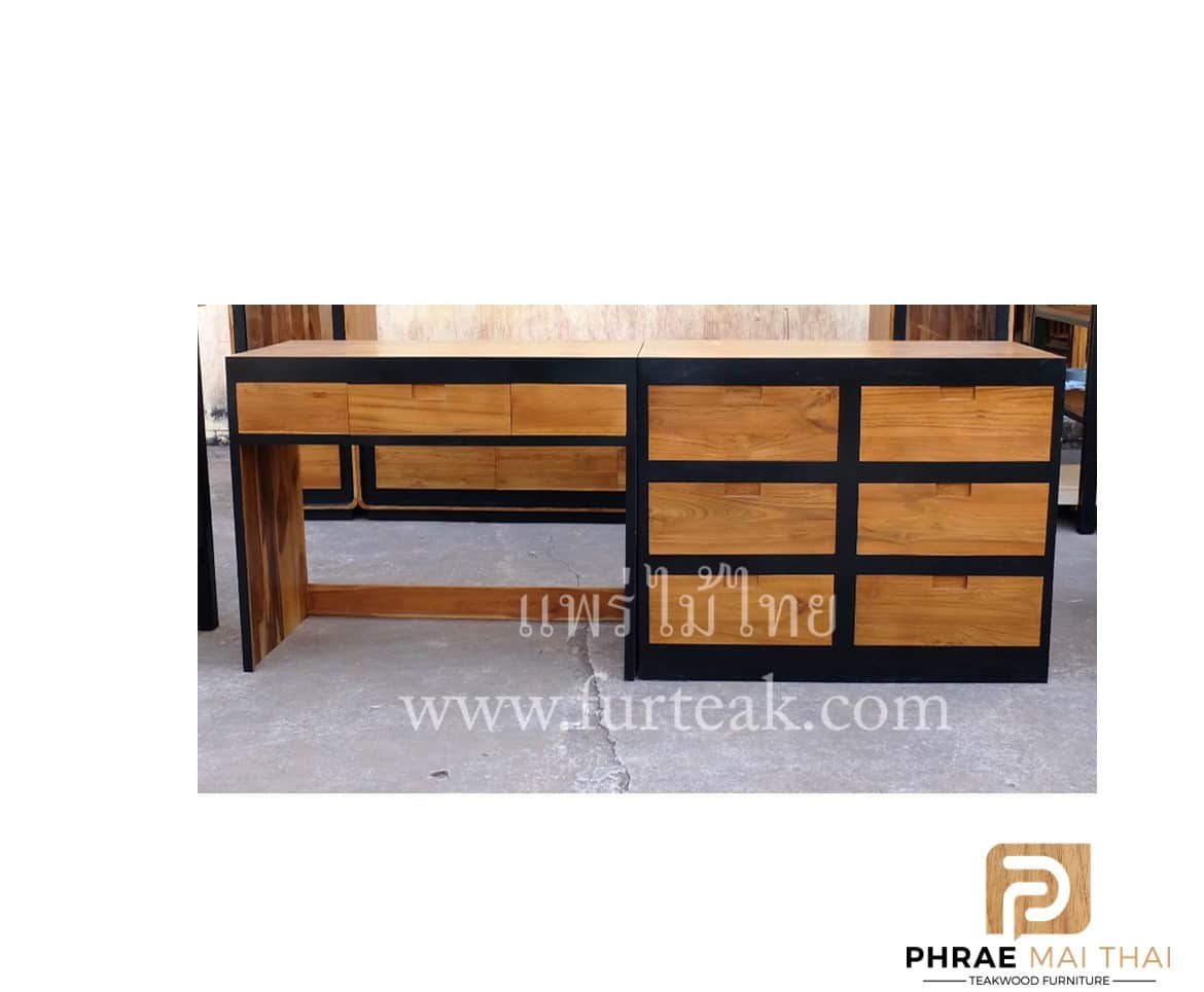 ชุดSET โต๊ะทำงาน LOFT STYLE พร้อมตู้เอกสารเป็นไม้สักทองทั้งหมด สีสักธรรมชาติตัดขอบด้วยสีดำเป็นไม้สักทองอบแห้ง ซึ่งคุณสมบัติของไม้เป็นไม้เนื้อแข็งอายุตั้งแต่ 30 ปีขึ้นไป เราเลือกใช้ไม้สักที่มีคุณภาพและใช้กระบวนการอบไม้ จึงทำให้ไม้มีการคงสภาพ ความชื้นน้อย โอกาสไม้หด หรือ แตกงอน้อยมาก สามารถใช้สอยโดยการนำไปวางชิดกำแพงได้เลย