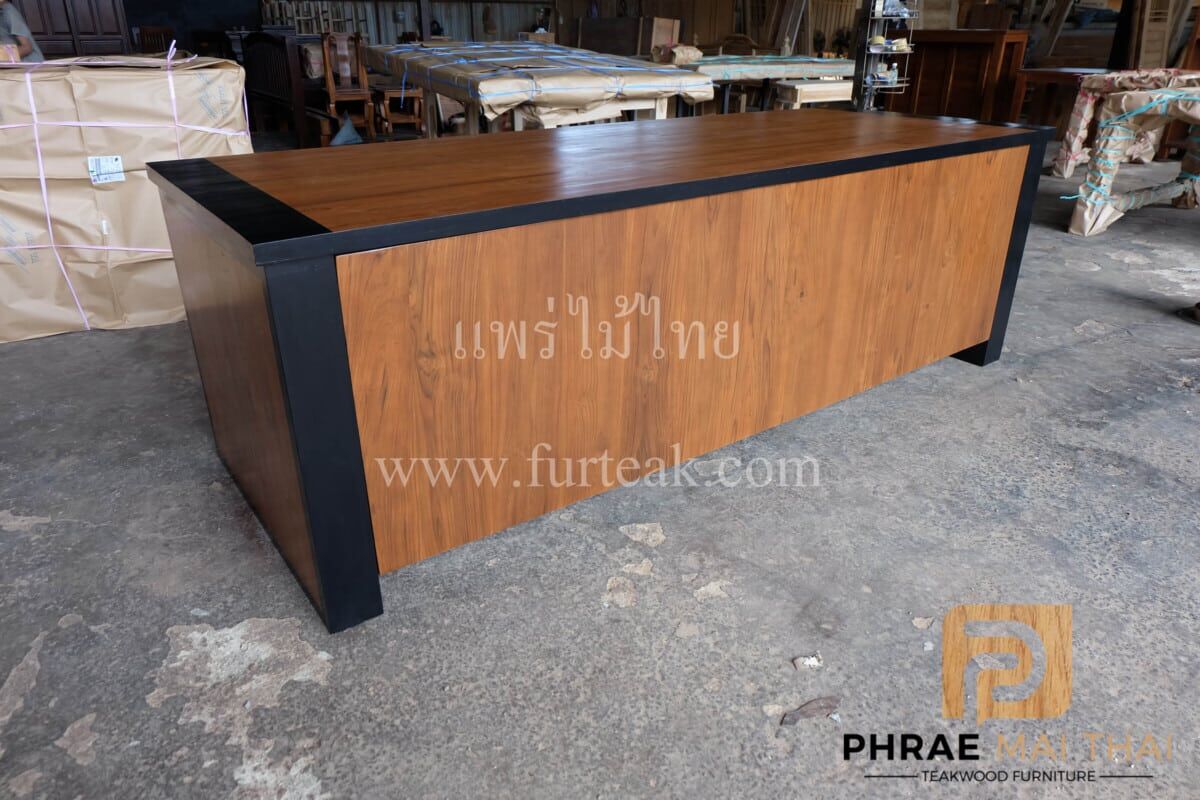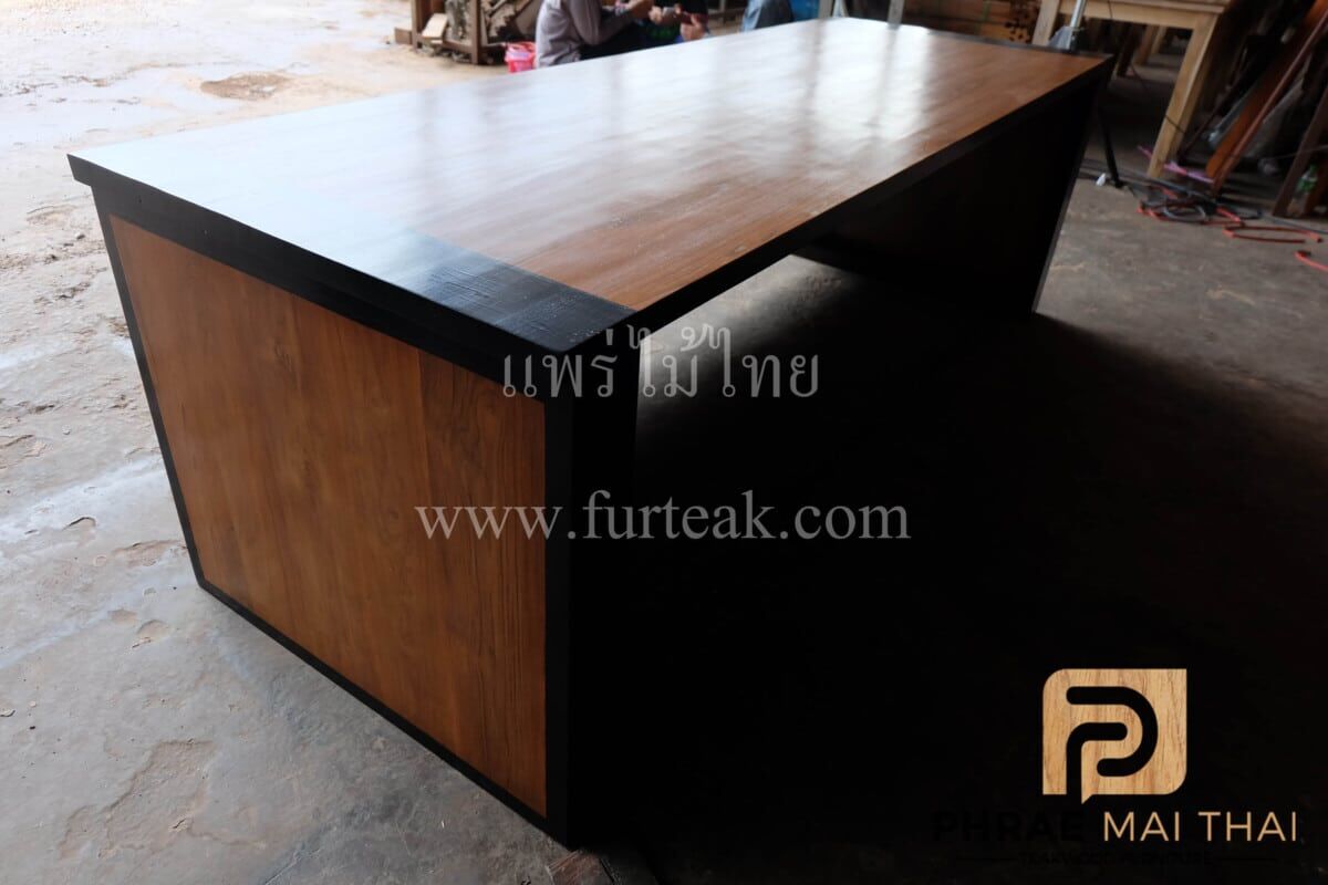 โต๊ะทำงาน LOFT STYLE เป็นไม้สักทั้งหมดคาดสีดำ ปกโต๊ะสีสักทองเป็นไม้สักทองอบแห้ง ซึ่งคุณสมบัติของไม้เป็นไม้เนื้อแข็งอายุตั้งแต่ 30 ปีขึ้นไป เราเลือกใช้ไม้สักที่มีคุณภาพและใช้กระบวนการอบไม้ จึงทำให้ไม้มีการคงสภาพ ความชื้นน้อย โอกาสไม้หด หรือ แตกงอน้อยมาก