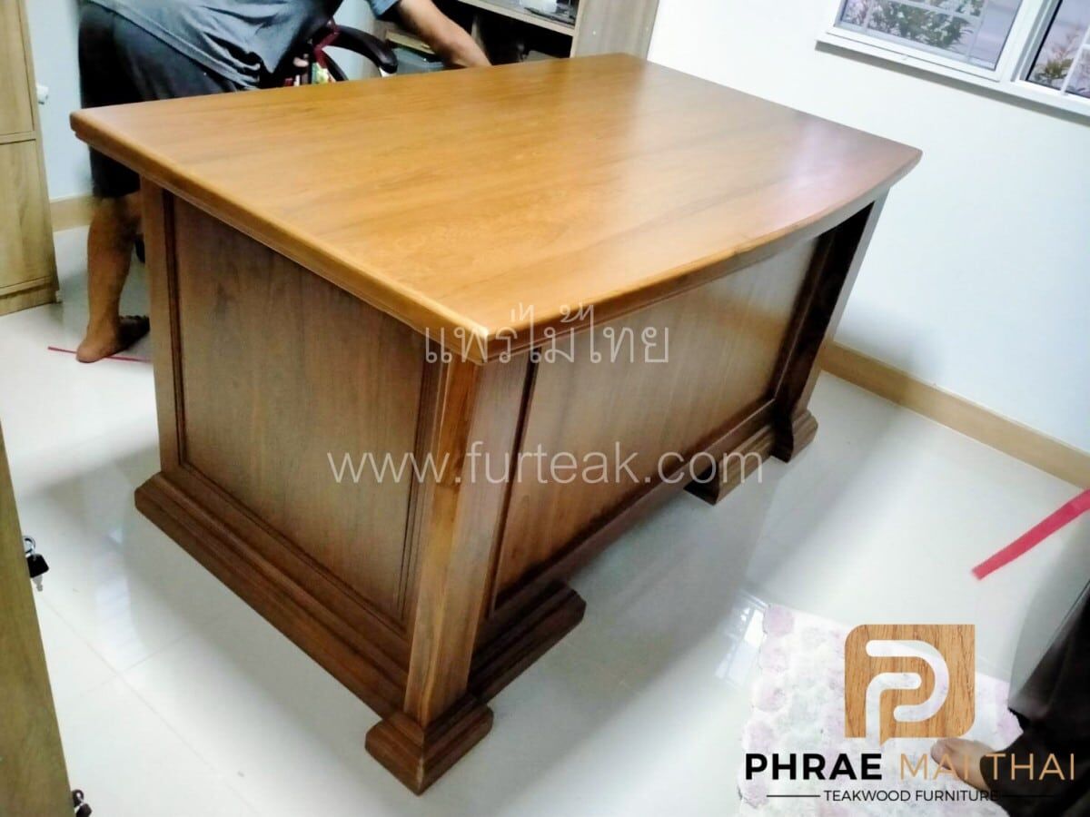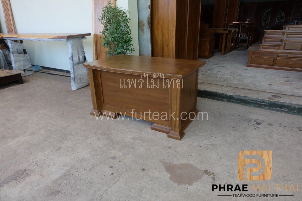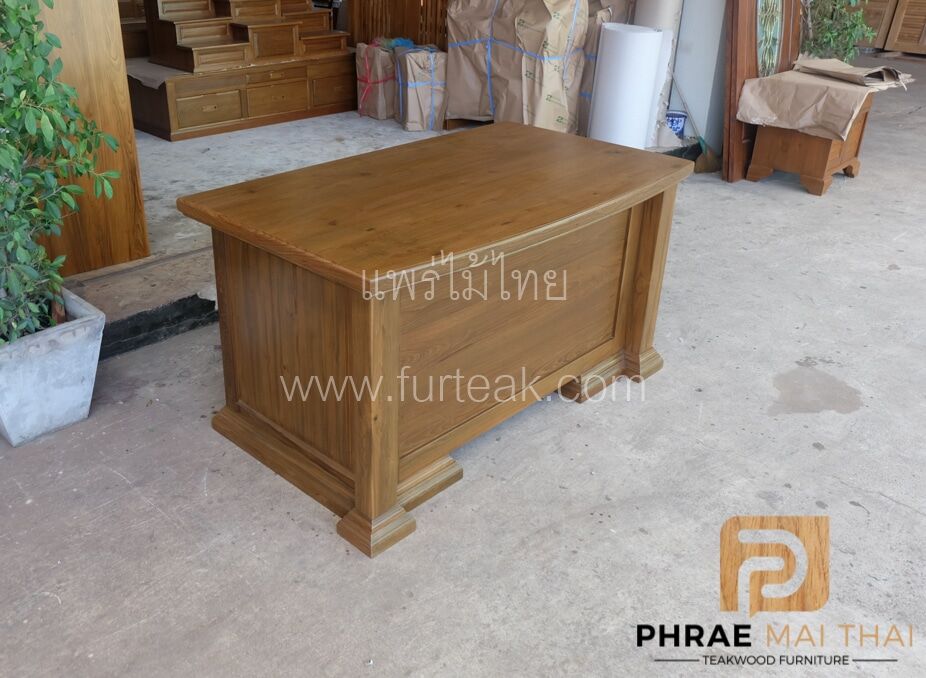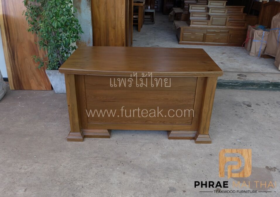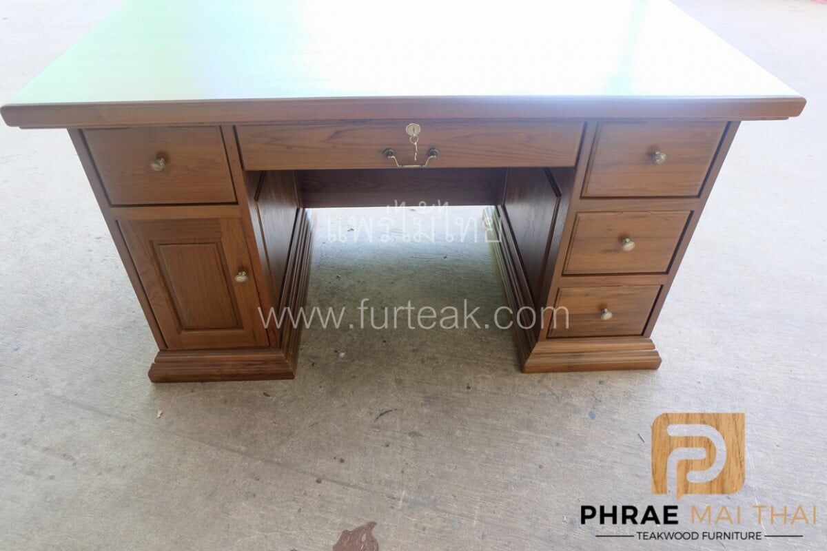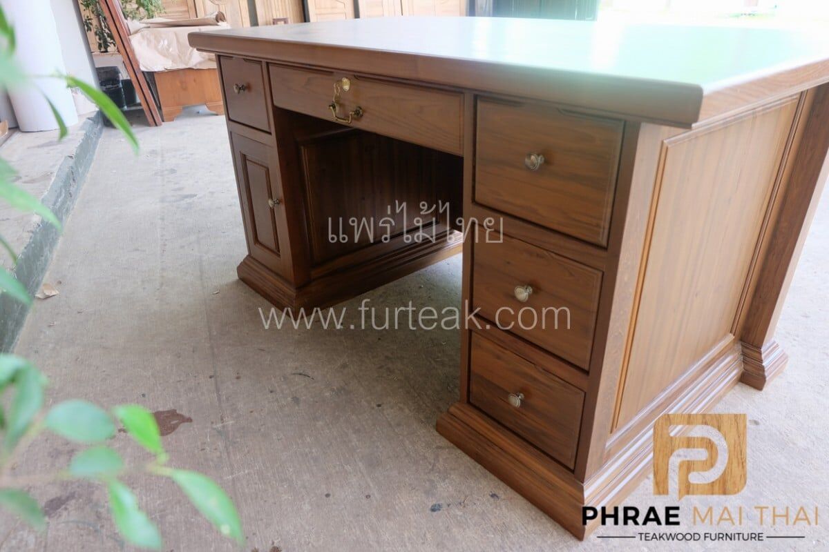 โต๊ะบัญชี ขนาด 150 ซม. ประกอบไปด้วย 5 ลิ้นชัก และ 1 บานปิด-เปิด เป็นไม้สักทองอบแห้ง ซึ่งคุณสมบัติของไม้เป็นไม้เนื้อแข็งอายุตั้งแต่ 30 ปีขึ้นไป เราเลือกใช้ไม้สักที่มีคุณภาพและใช้กระบวนการอบไม้ จึงทำให้ไม้มีการคงสภาพ ความชื้นน้อย โอกาสไม้หด หรือ แตกงอ ก็น้อยตามไปด้วย
