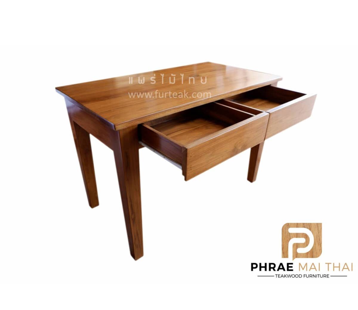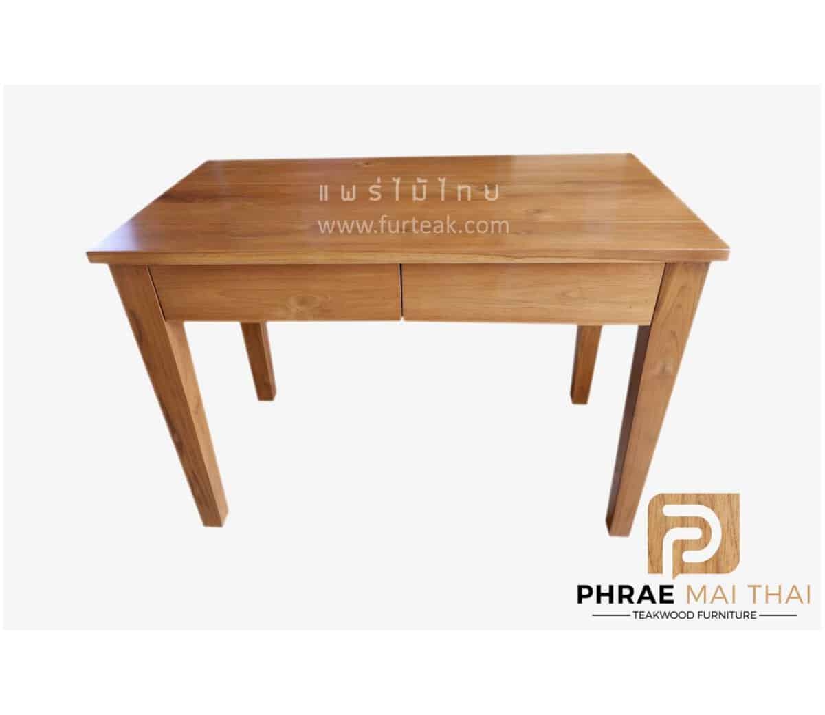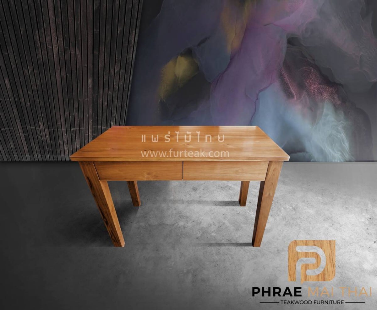 โต๊ะทำงาน 2 ลิ้นชัก เป็นไม้สักทองทั้งหมด สีสักทองเป็นไม้สักทองอบแห้ง ซึ่งคุณสมบัติของไม้เป็นไม้เนื้อแข็งอายุตั้งแต่ 30 ปีขึ้นไป เราเลือกใช้ไม้สักที่มีคุณภาพและใช้กระบวนการอบไม้ จึงทำให้ไม้มีความชื้นน้อย และโอกาสหดตัวน้อย