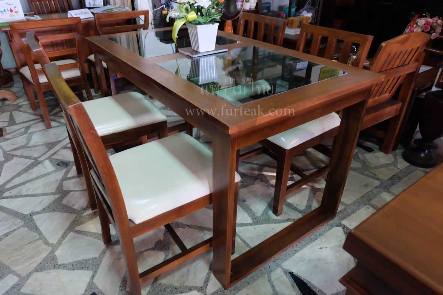 ชุดโต๊ะอาหารโมเดิร์นไม้สัก ตัว TOP เป็นกระจกหนา 10 มม. ขากล่อง พร้อมเก้าอี้เบาะสีครีม 4 ที่นั่ง สีสักเข้มเป็นไม้สักทองอบแห้ง ซึ่งคุณสมบัติของไม้เป็นไม้เนื้อแข็งอายุตั้งแต่ 30 ปีขึ้นไป เราเลือกใช้ไม้สักที่มีคุณภาพและใช้กระบวนการอบไม้ จึงทำให้ไม้มีการคงสภาพ ความชื้นน้อย และโอกาสไม้หดตัวน้อยมาก